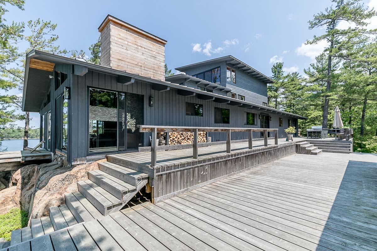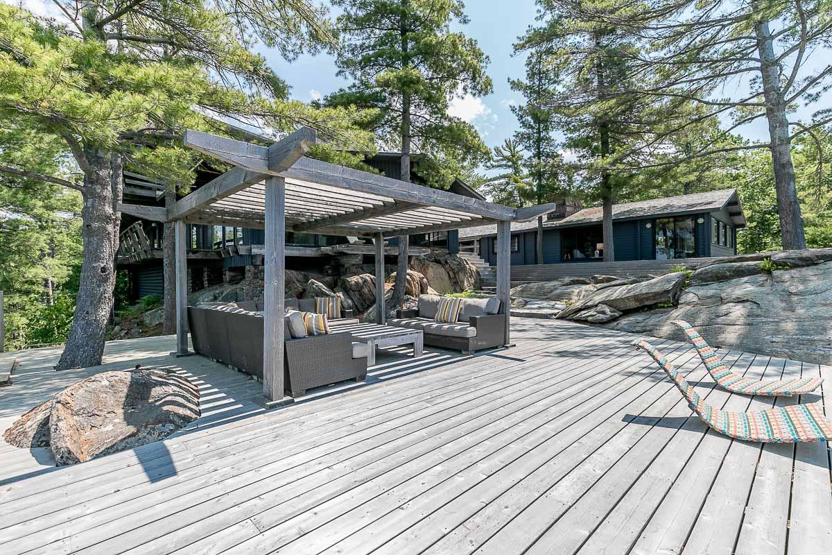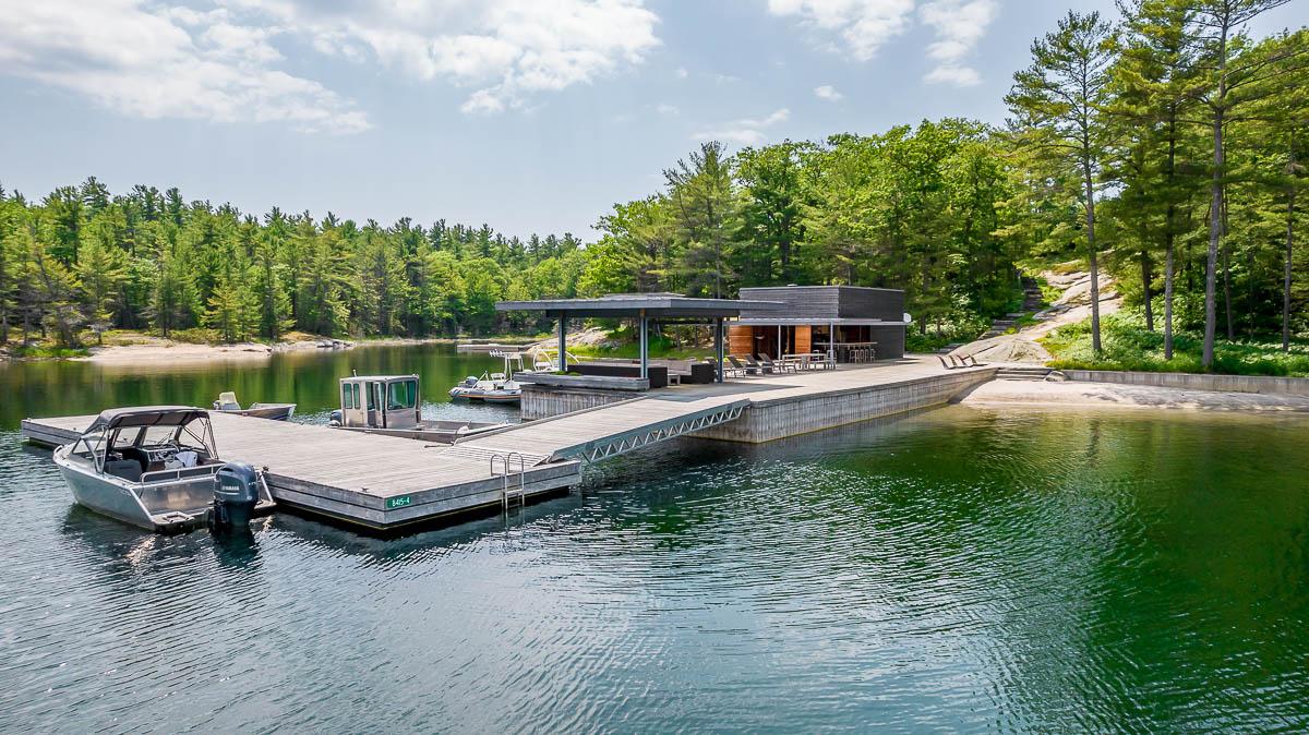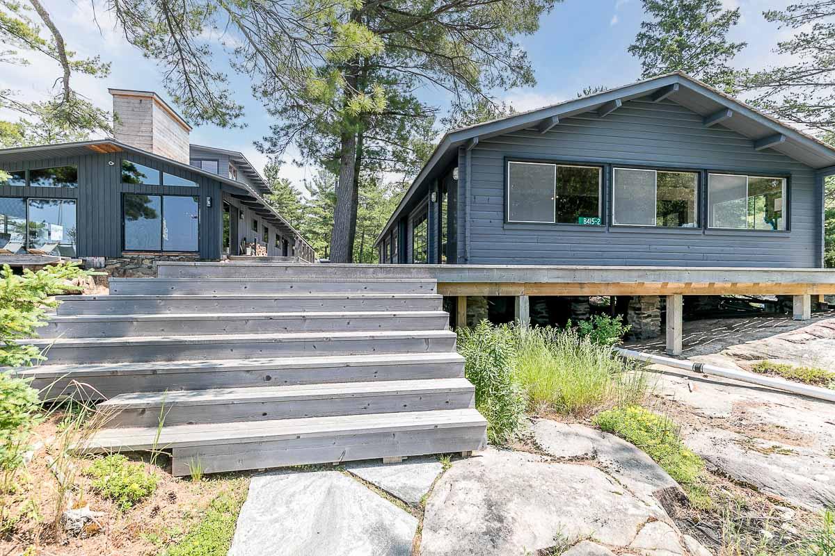 Welcome to 4-B415 Bernyk Island near the heart of Sans Souci, on the beautiful crystal blue waters of Georgian Bay. You will be in awe the moment you pull into the private protected back bay and view, for the first time, the modern (2011) architecturally designed (Kevin Weiss of Weissbau Inc.) boathouse with covered deck seating & lounging area & a fully operating open-air concept kitchen that has bar height seating. You won't want to leave this amazing spot but there is much more to explore. The granite stairs & walkway lead you to the six-bedroom, five-bath main cottage with stunning views from all three storeys to the west & north. You may have a difficult time choosing an area to sit & enjoy the scenery, taking it all in. The guesthouse has three bedrooms, one bath, open concept living space that also has views to the west & north, is self sufficient with a kitchenette, surrounded by cedar decks providing easy access to the main cottage & main deck area with more breathtaking views. The granite walkway now leads you down to the architecturally designed (Partisans - 2014) Grotto Sauna perched on the shoreline where the stunning views continue even at this vantage point.