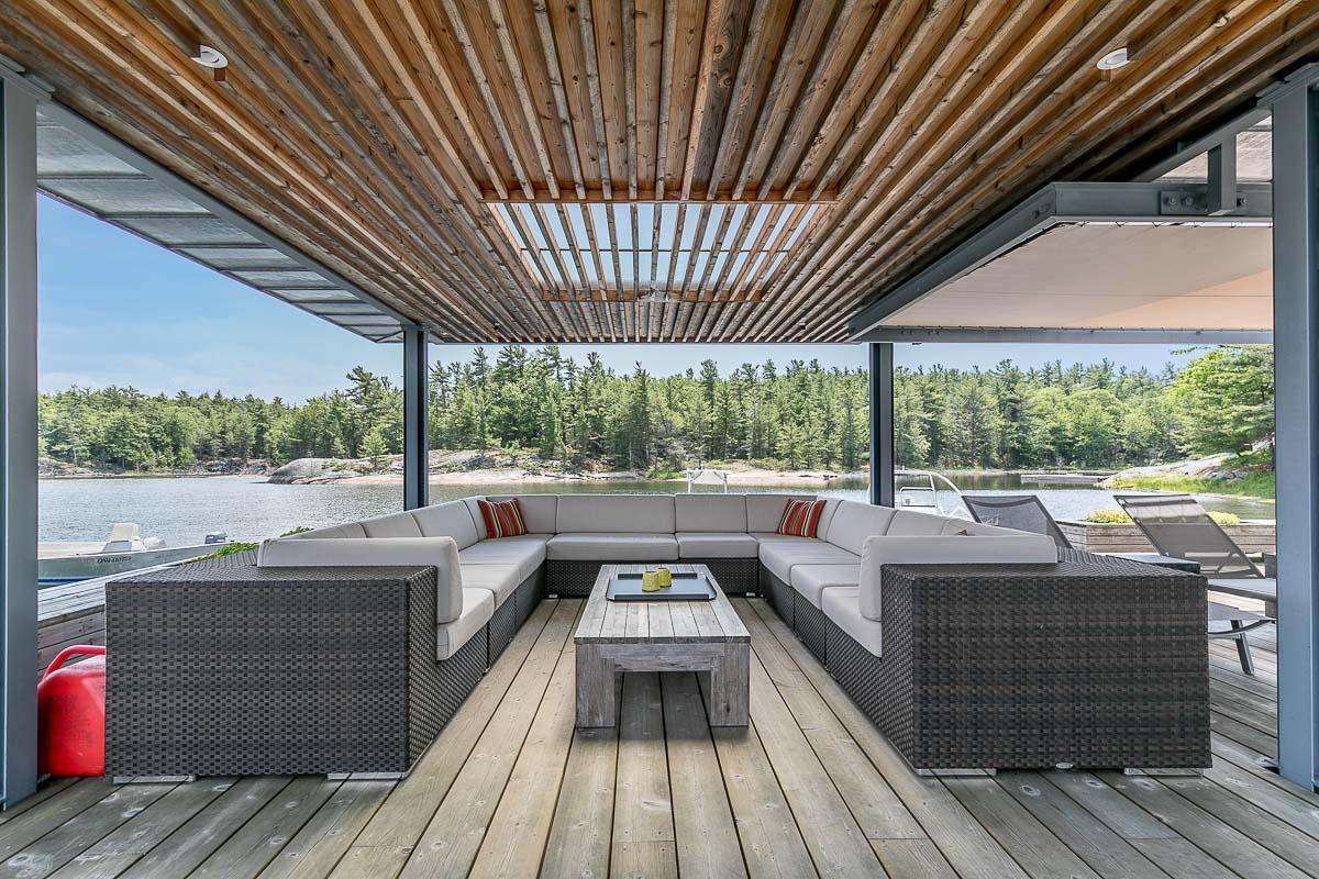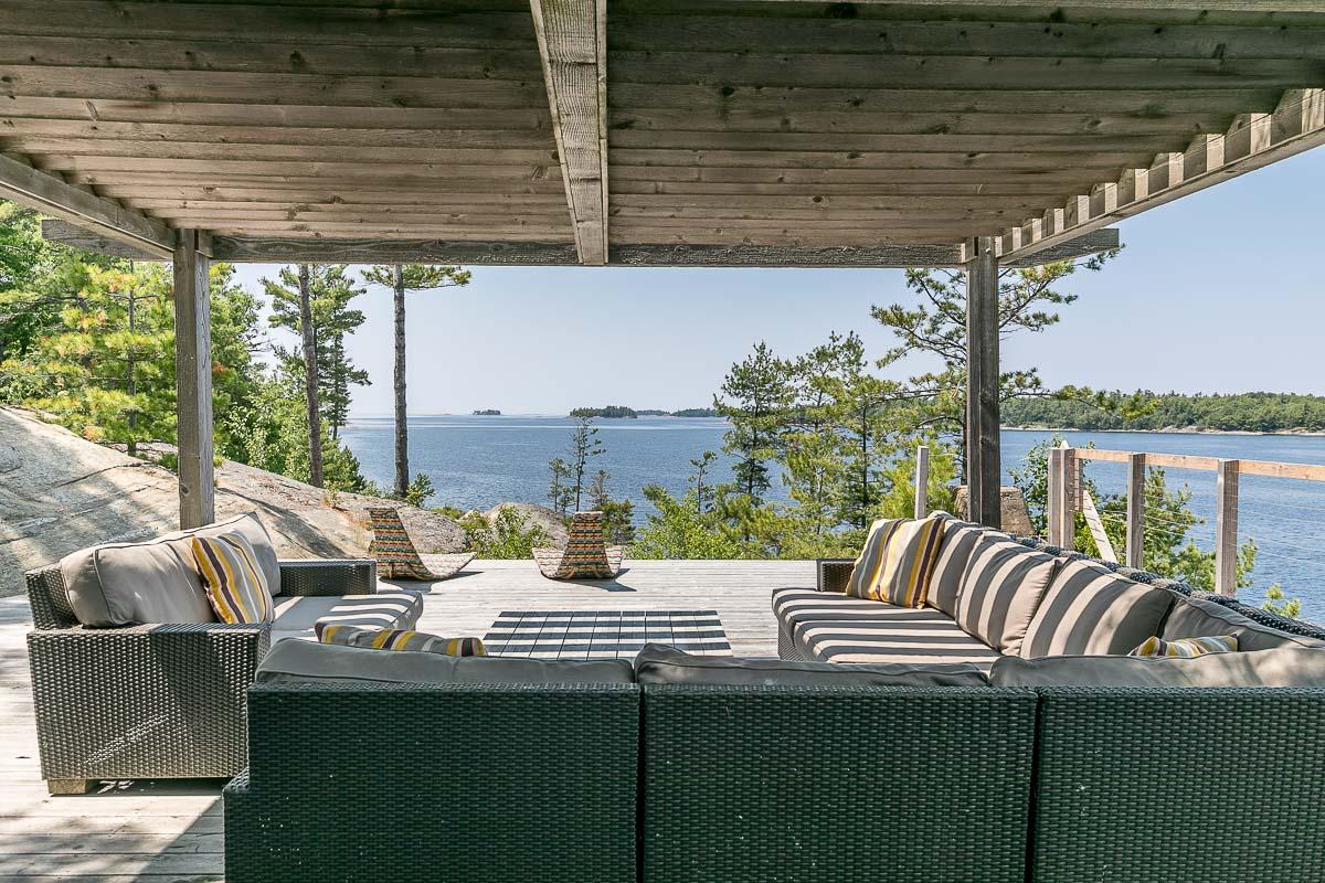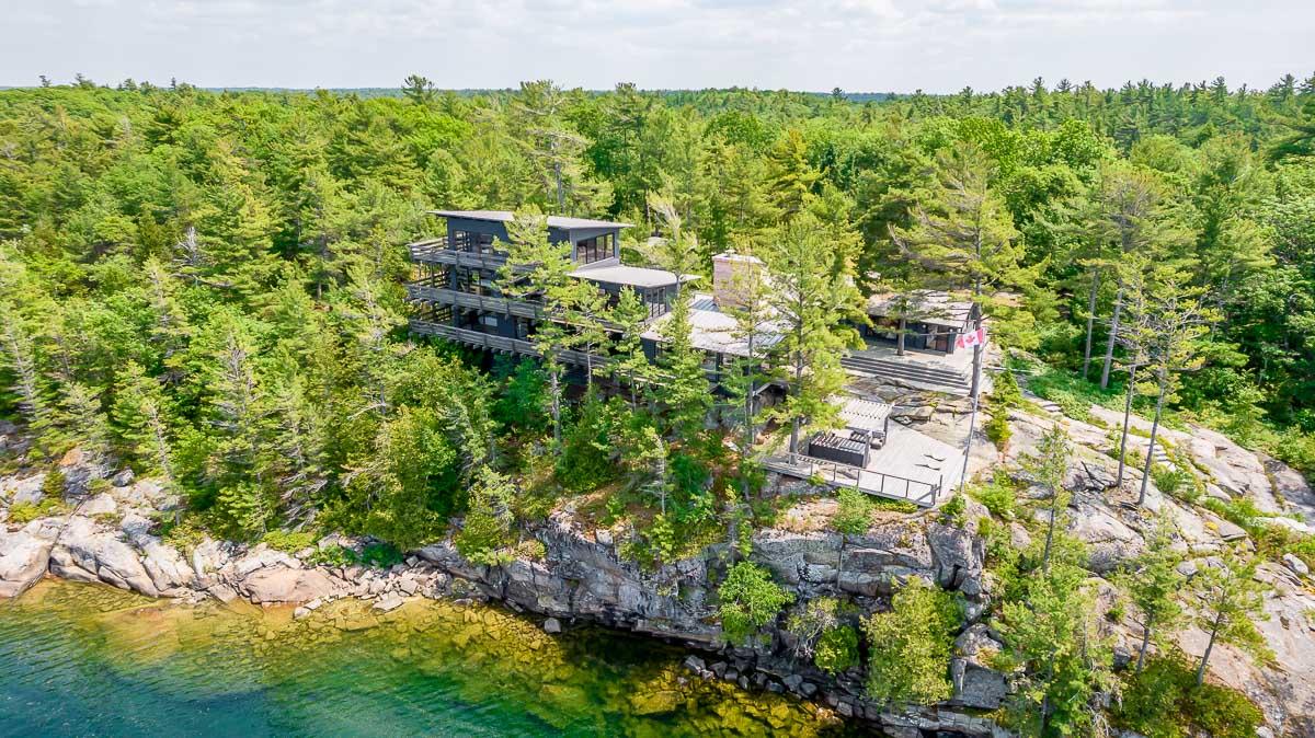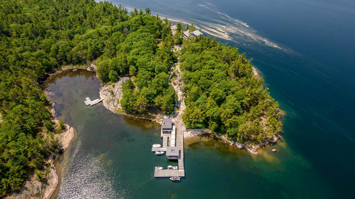 Welcome to 4-B415 Bernyk Island near the heart of Sans Souci, on the beautiful crystal blue waters of Georgian Bay. You will be in awe the moment you pull into the private protected back bay and view, for the first time, the modern (2011) architecturally designed (Kevin Weiss of Weissbau Inc.) boathouse with covered deck seating & lounging area & a fully operating open-air concept kitchen that has bar height seating. You won't want to leave this amazing spot but there is much more to explore. The granite stairs & walkway lead you to the six-bedroom, five-bath main cottage with stunning views from all three storeys to the west & north. You may have a difficult time choosing an area to sit & enjoy the scenery, taking it all in. The guesthouse has three bedrooms, one bath, open concept living space that also has views to the west & north, is self sufficient with a kitchenette, surrounded by cedar decks providing easy access to the main cottage & main deck area with more breathtaking views. The granite walkway now leads you down to the architecturally designed (Partisans - 2014) Grotto Sauna perched on the shoreline where the stunning views continue even at this vantage point.