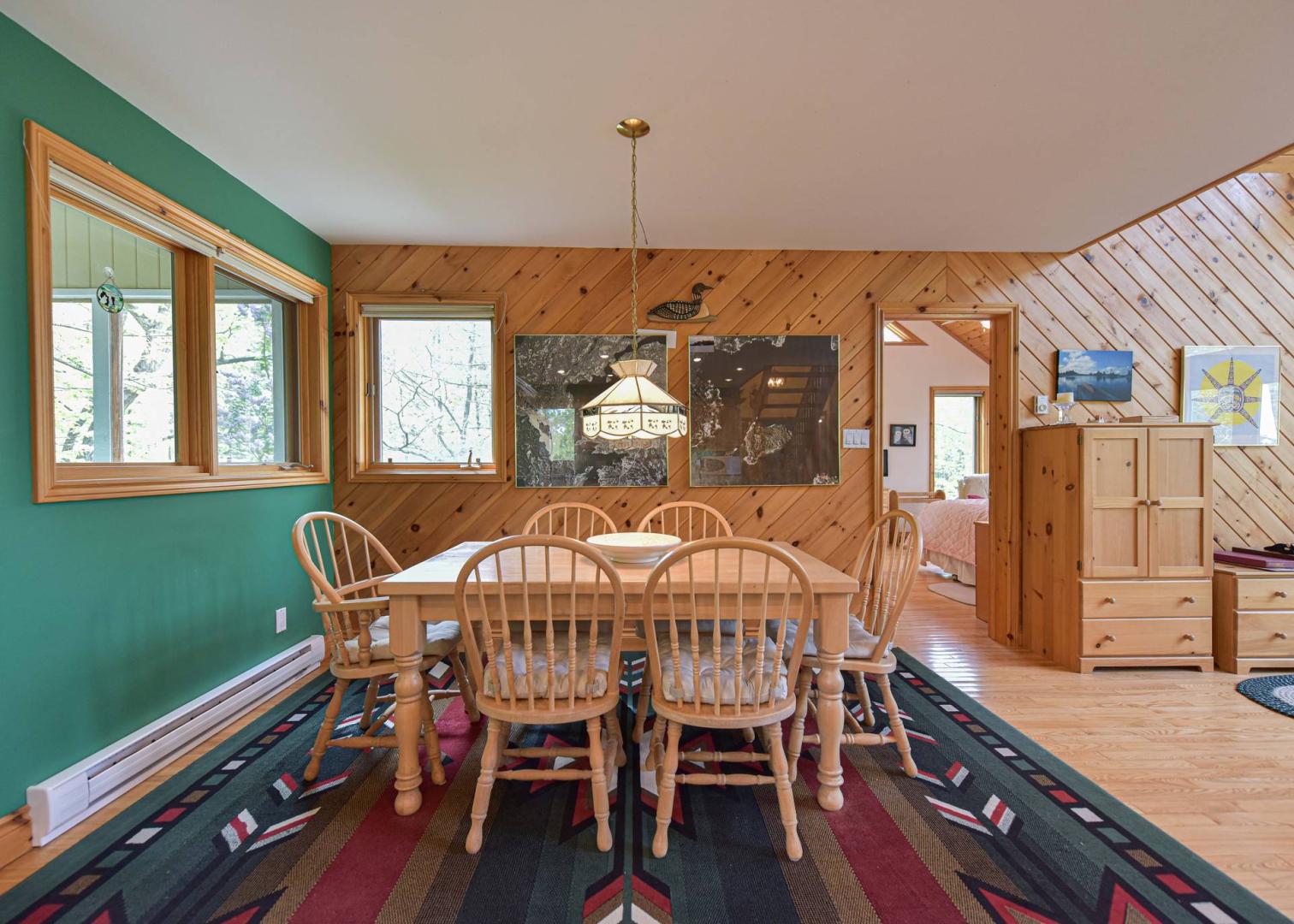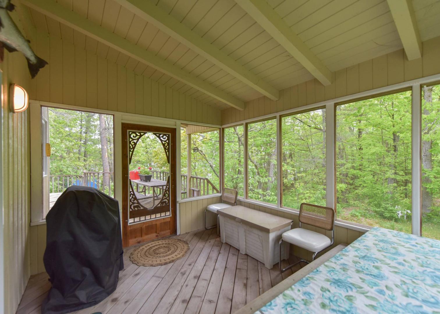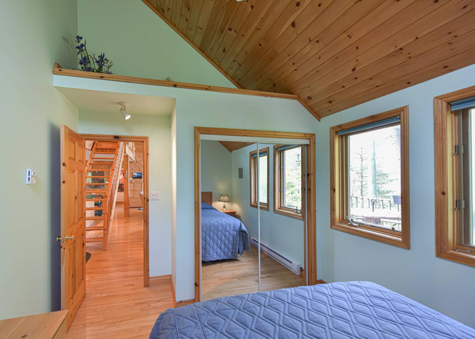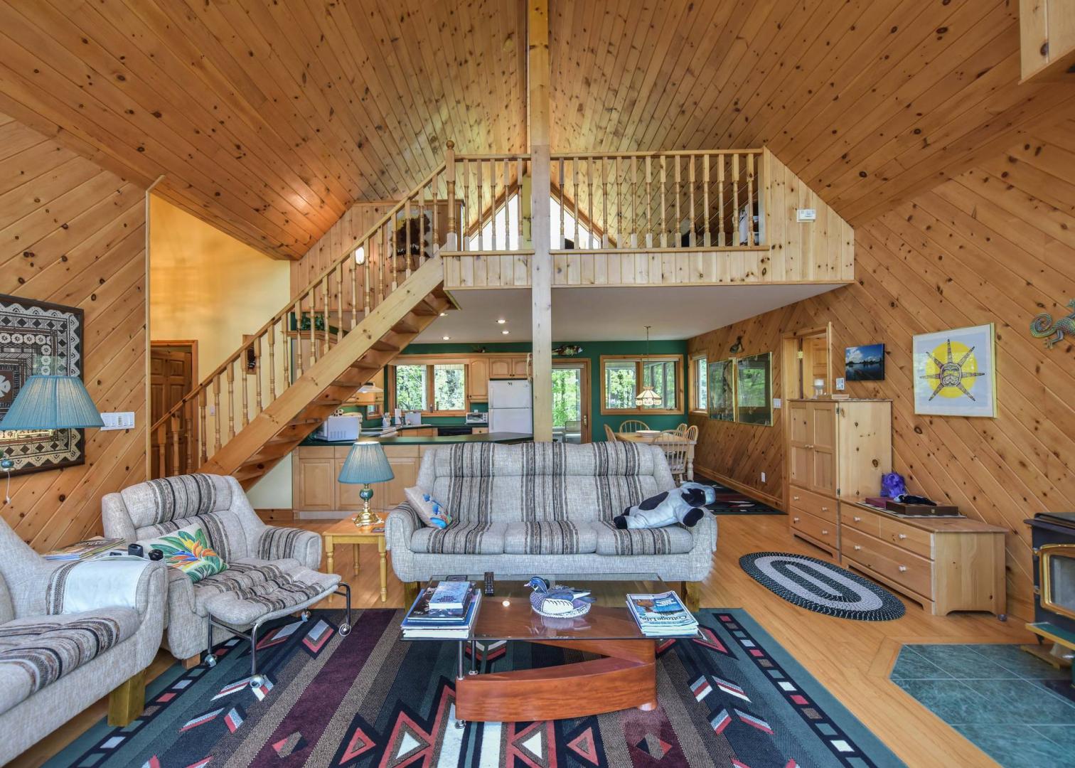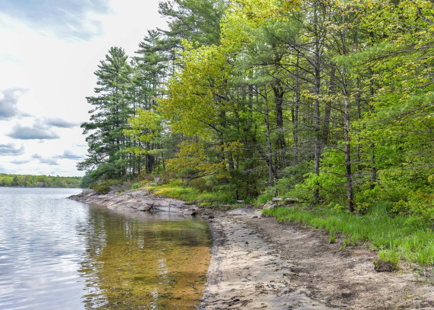 South Bay’s calm, clear waters surround “Cow Island” (2 Island 880), a soothing companion to its 6.2 acres cloaked in evergreen and hardwood forest. Nestled within the trees, a three-bedroom cottage delivers views over the island’s western shoreline and deep-water harbor. The sleeping quarters comfortably accommodate eight in a master suite on the south side, a two-bedroom guest wing to the north, and a second-floor loft. Light floods the open central floorplan courtesy of a glass-walled great room, with a roof soaring 1.5 stories. Curvilinear decking wraps the front and back facades, accentuating the bond between living space and nature. Built for year-round use, it’s a perfect perch for barbecuing, sunning, and watching the seasons change. The property also includes a large, dry boathouse/workshop that connects to a U-shaped dock and several outbuildings. With Township approval, one or two additional guest cabins are a likely possibility due to the island’s size.