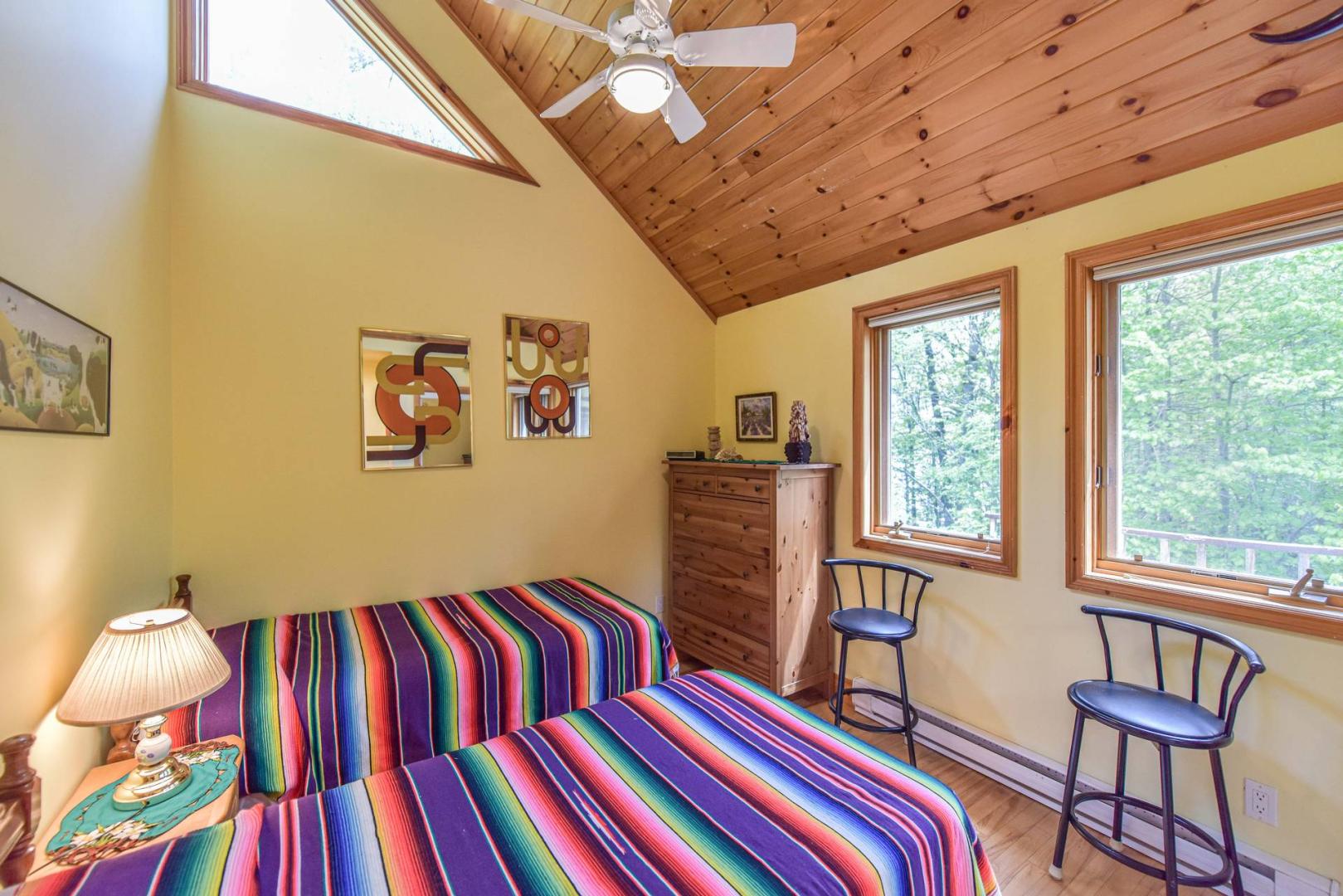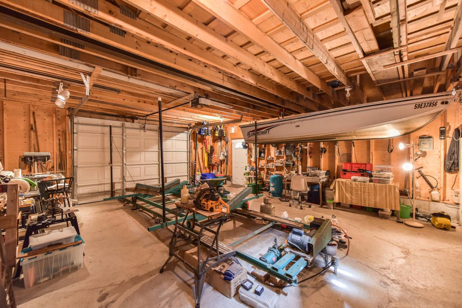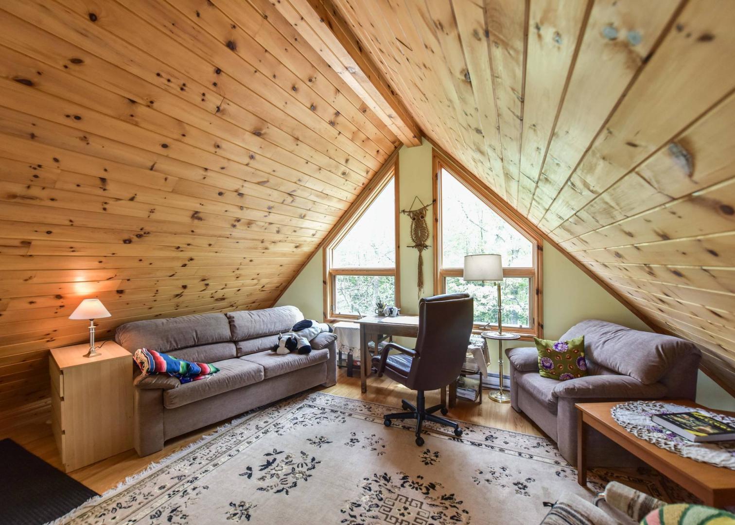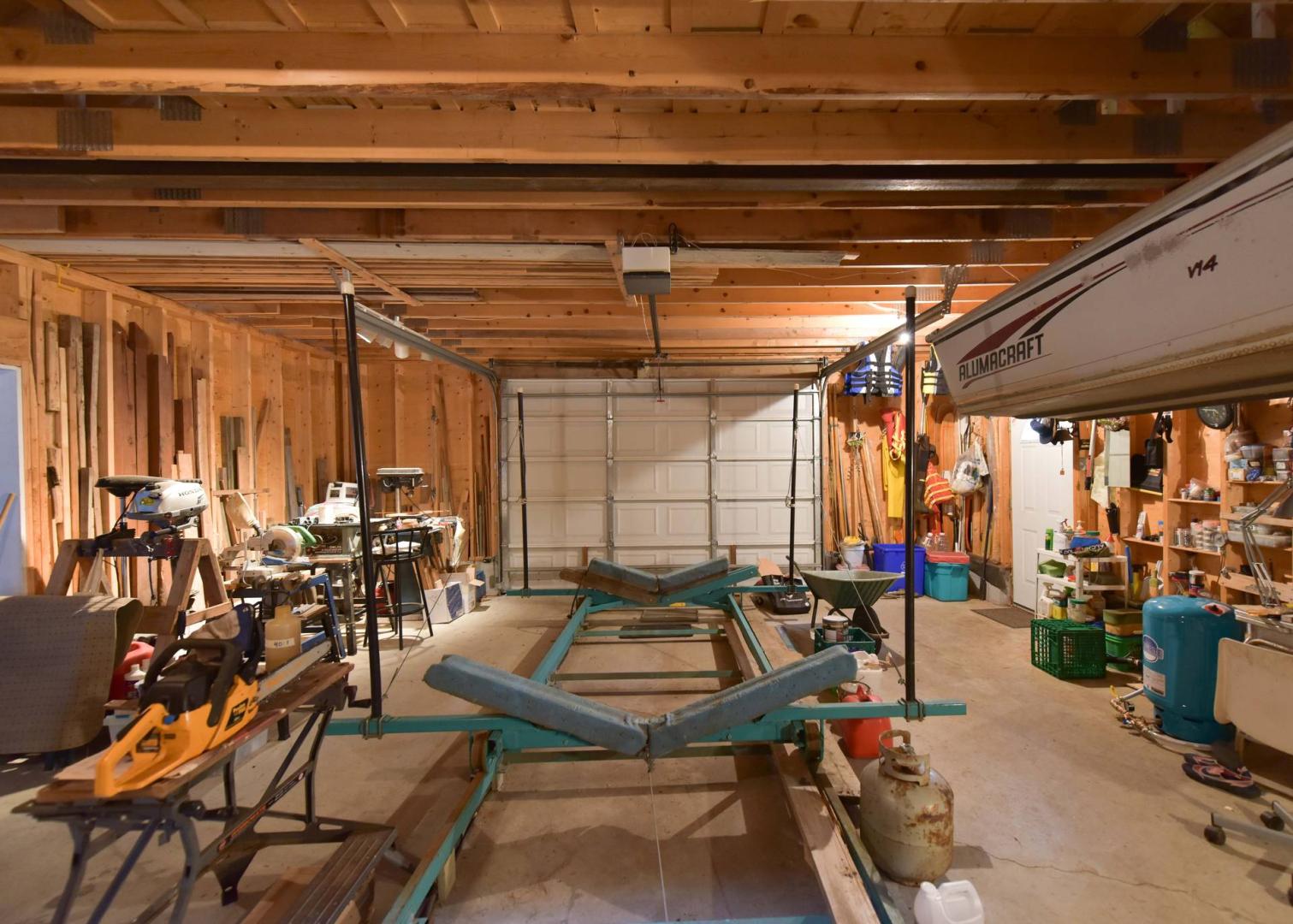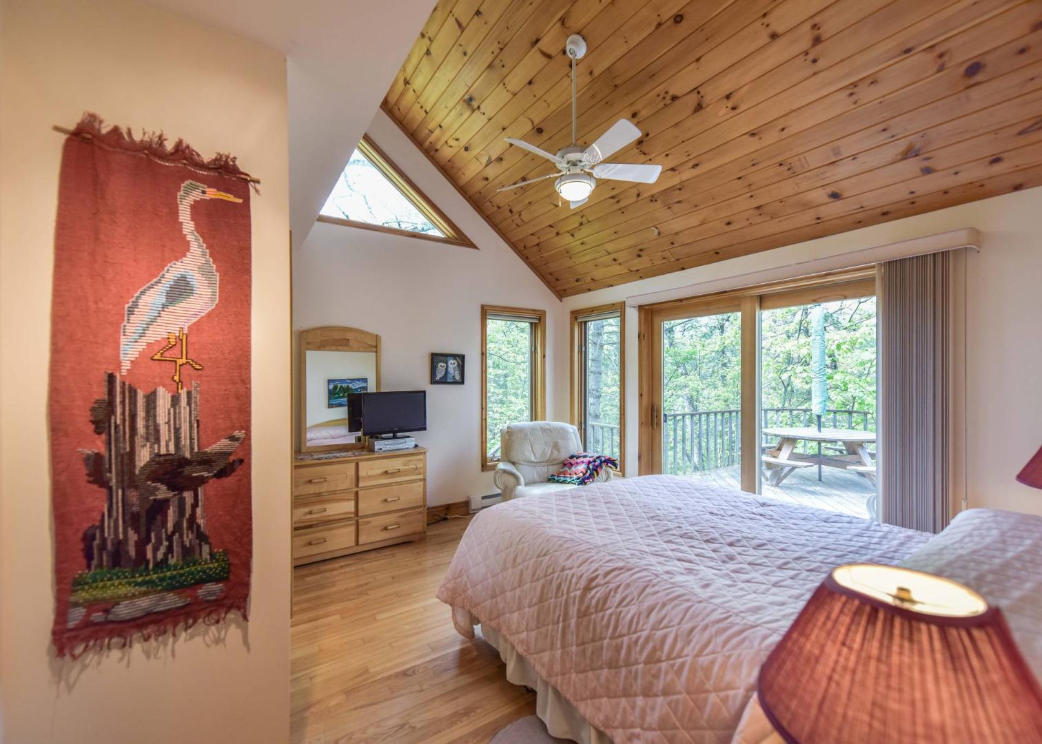 South Bay’s calm, clear waters surround “Cow Island” (2 Island 880), a soothing companion to its 6.2 acres cloaked in evergreen and hardwood forest. Nestled within the trees, a three-bedroom cottage delivers views over the island’s western shoreline and deep-water harbor. The sleeping quarters comfortably accommodate eight in a master suite on the south side, a two-bedroom guest wing to the north, and a second-floor loft. Light floods the open central floorplan courtesy of a glass-walled great room, with a roof soaring 1.5 stories. Curvilinear decking wraps the front and back facades, accentuating the bond between living space and nature. Built for year-round use, it’s a perfect perch for barbecuing, sunning, and watching the seasons change. The property also includes a large, dry boathouse/workshop that connects to a U-shaped dock and several outbuildings. With Township approval, one or two additional guest cabins are a likely possibility due to the island’s size.