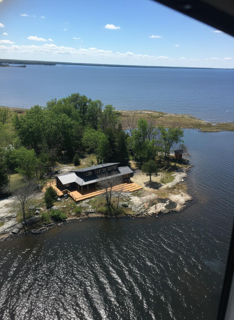 The island is located just a 3-hour and 45-minute drive from Toronto, with Sturgeon Falls, North Bay, and Sudbury nearby, offering access to regional shopping, amenities, and world-class medical facilities. The island is equipped with a solar system, propane heaters, and a lake water pumping system, ensuring a comfortable and sustainable stay. Access to the island is via a 10-minute boat ride from the Sturgeon River.