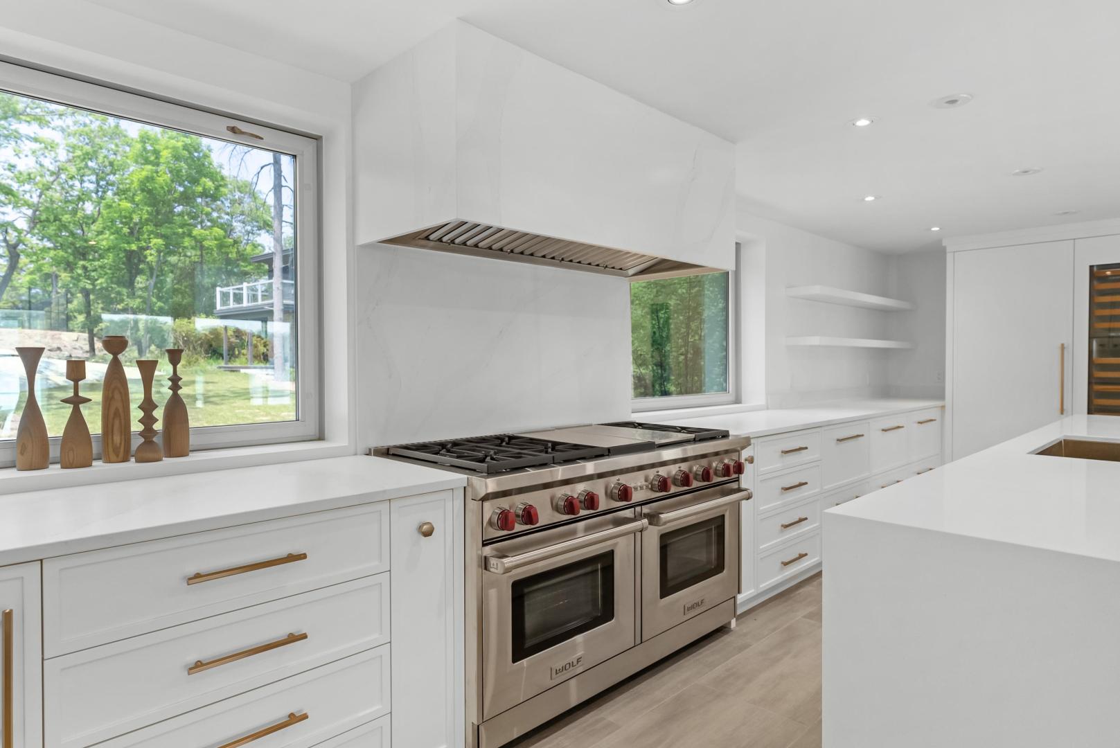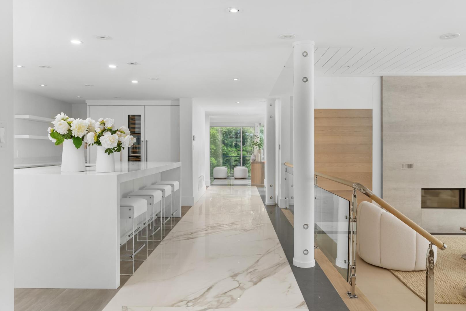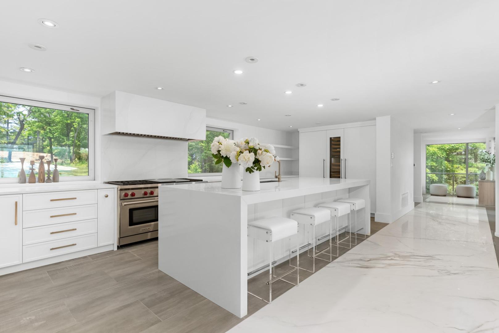 The custom kitchen is a culinary enthusiast's dream, featuring top-of-the-line appliances, brand name countertops, and exquisite marble tiles. The sunken living room is an inviting space, while the Stuv wood-burning custom fireplaces create a warm ambiance. Additionally, a full spa awaits, complete with a pool equipped with swim jets, a hot tub, cold plunge pool, sauna, steam room, and a massage shower.