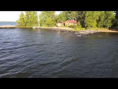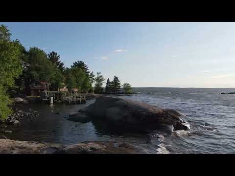 The island has a diesel generator but has been meticulously wired for solar/battery power for most needs and lighting. Propane is used for stove and fridge. The island is uniquely shaped to provide a protected mini harbor for two boat docks each having a boat lift. The shoreline is varied with large granite Canadian Shield surface, rocky shores, a pebble beach and even a natural occurring sandy beach. Large trees, coniferous and evergreen are found throughout the island and a walking trail that circumnavigates the island is maintained by the owner. The center of the island is cleared and grassy but has also been the location of a large garden since the soil is quite fertile. A single separate storage building acts as a wood shed and a small wood shop with table saw and storage for mill work. The island has unobstructed views of the Manitou islands and the city of North Bay - especially at night. Sunsets are spectacular from everywhere on the island. A Kubota front end loader tractor is kept in the island boat house and could also convey.