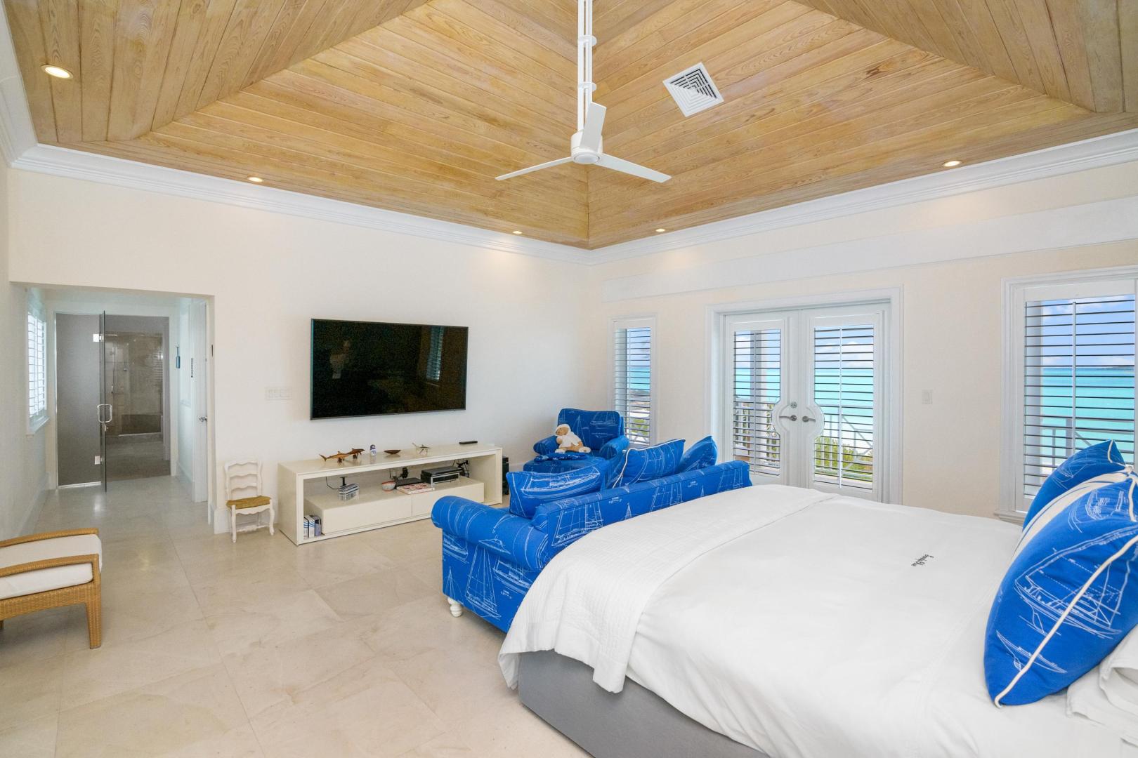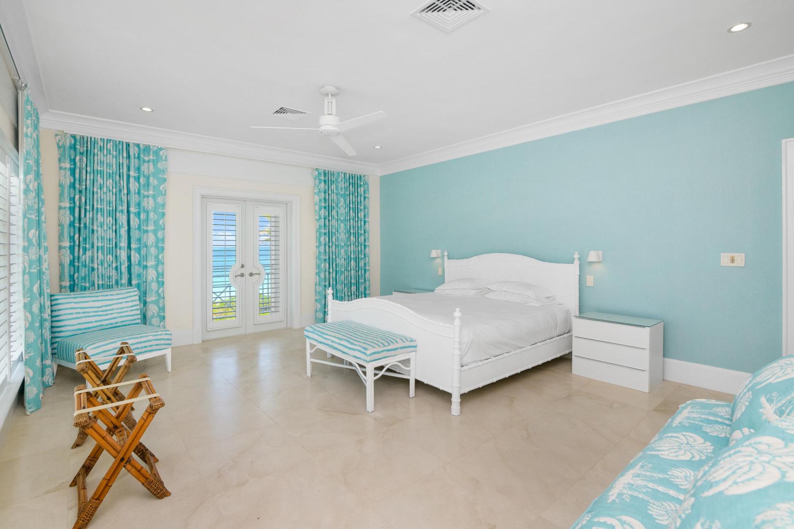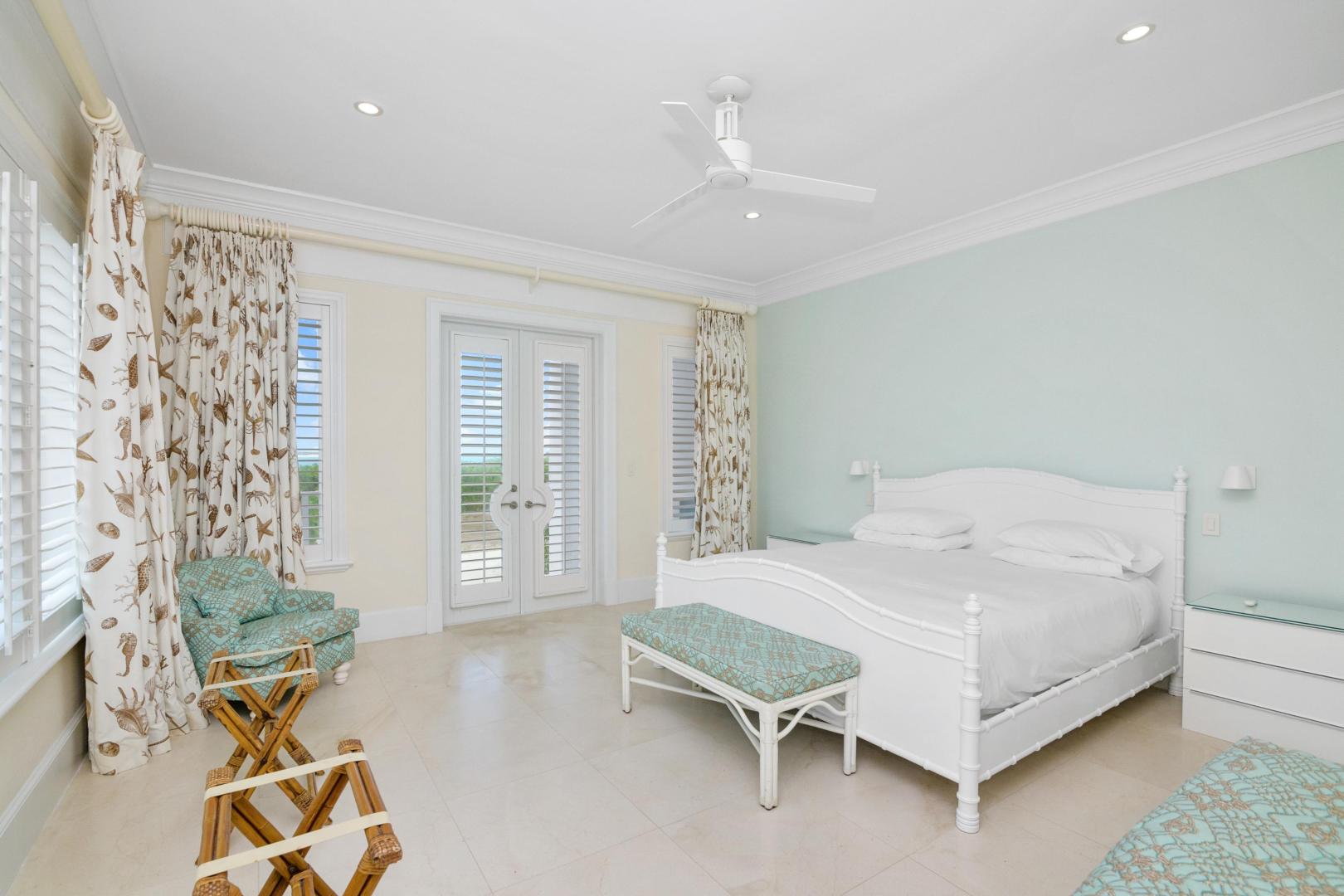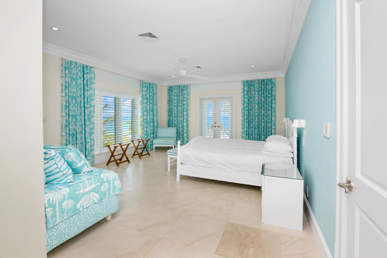 From the moment you enter Sandy Blue, you’re embraced with serene views of the breathtaking waters that lie just beyond the home’s sparkling swimming pool and generously sized 4,166 sq. ft terrace. Decorated to reflect the stunning beauty of the Bahamian waters, the home’s décor mirrors the colors of the vibrant blues and powder-white sands for which Exuma is famous. Open beam ceilings and an abundance of windows augment Sandy Blue’s peaceful ambiance, along with thoughtful touches like cool ceramic tiling throughout and the soft lull of ceiling fans in every room.