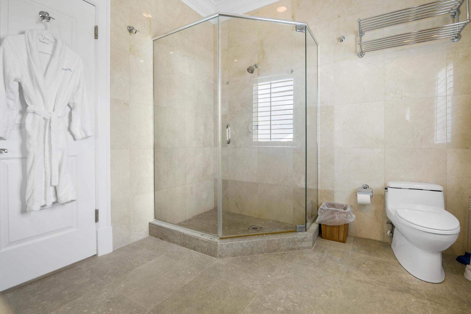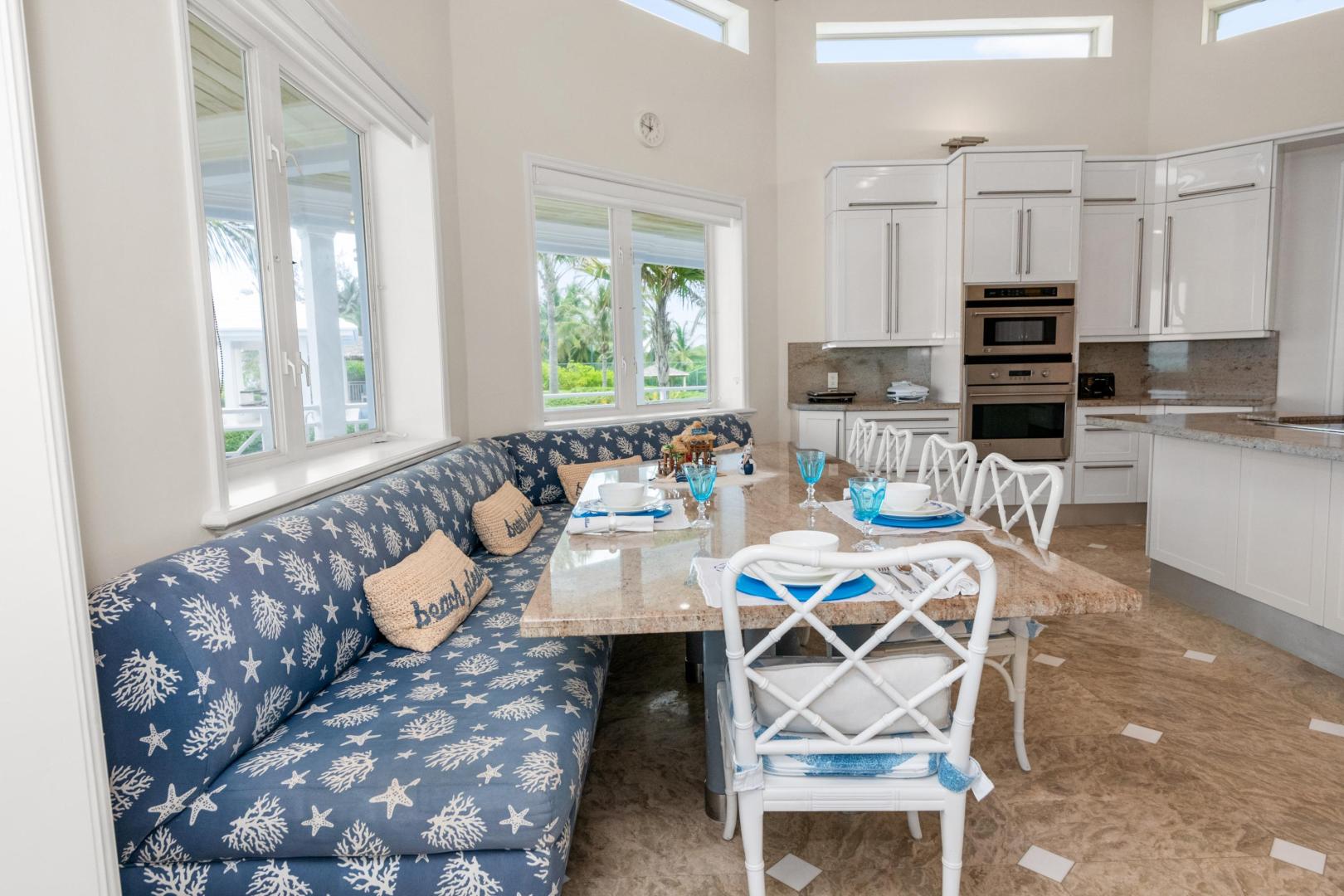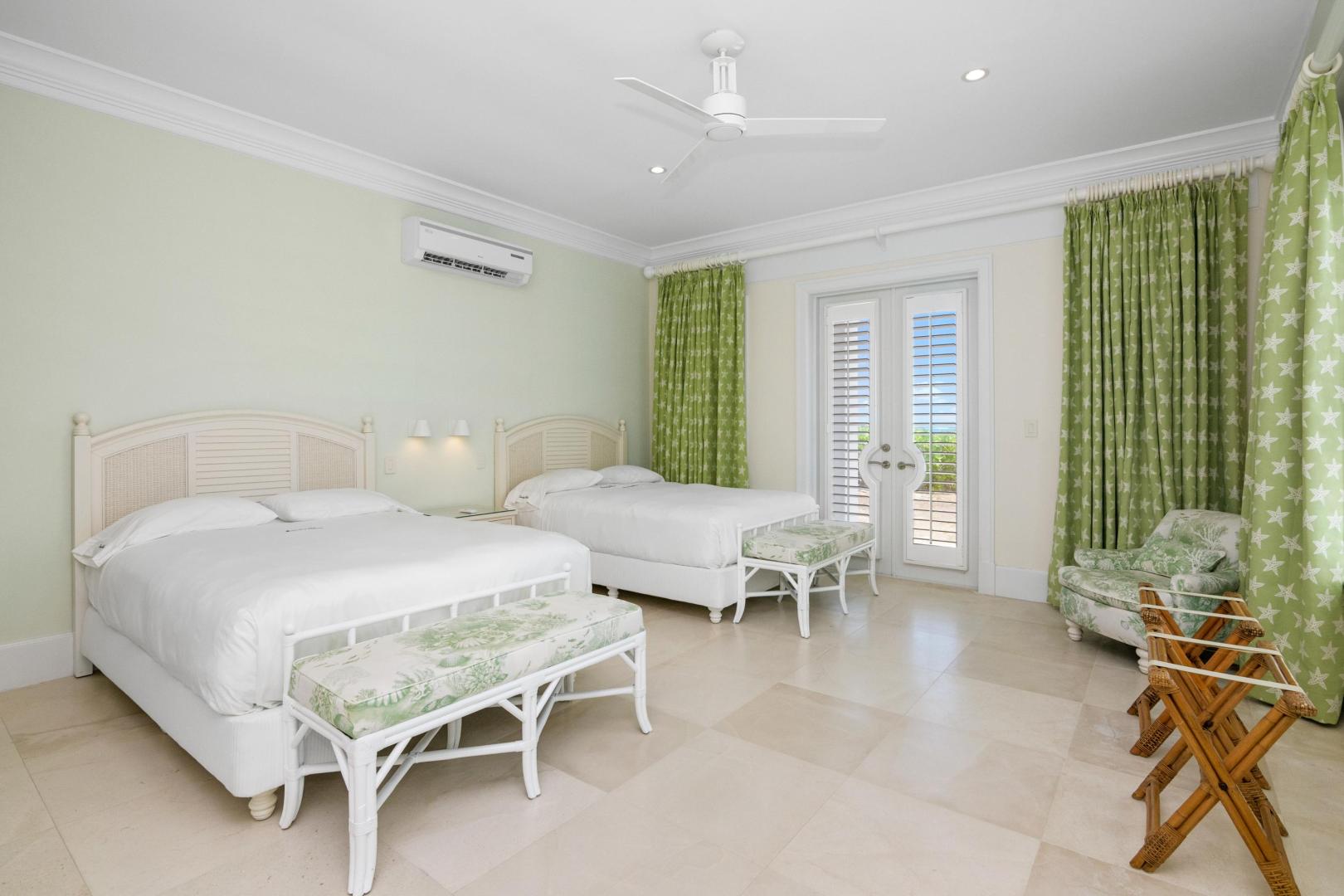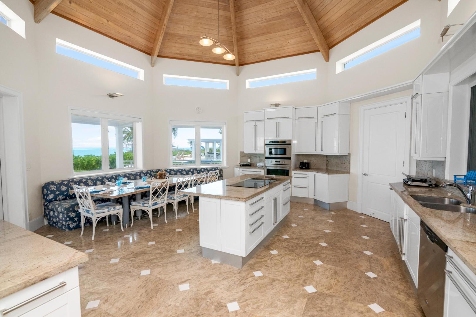 From the moment you enter Sandy Blue, you’re embraced with serene views of the breathtaking waters that lie just beyond the home’s sparkling swimming pool and generously sized 4,166 sq. ft terrace. Decorated to reflect the stunning beauty of the Bahamian waters, the home’s décor mirrors the colors of the vibrant blues and powder-white sands for which Exuma is famous. Open beam ceilings and an abundance of windows augment Sandy Blue’s peaceful ambiance, along with thoughtful touches like cool ceramic tiling throughout and the soft lull of ceiling fans in every room.