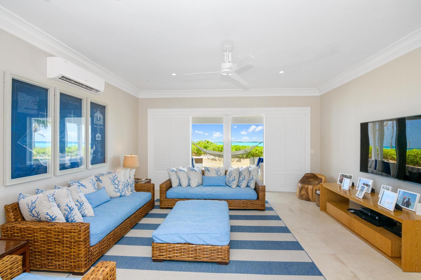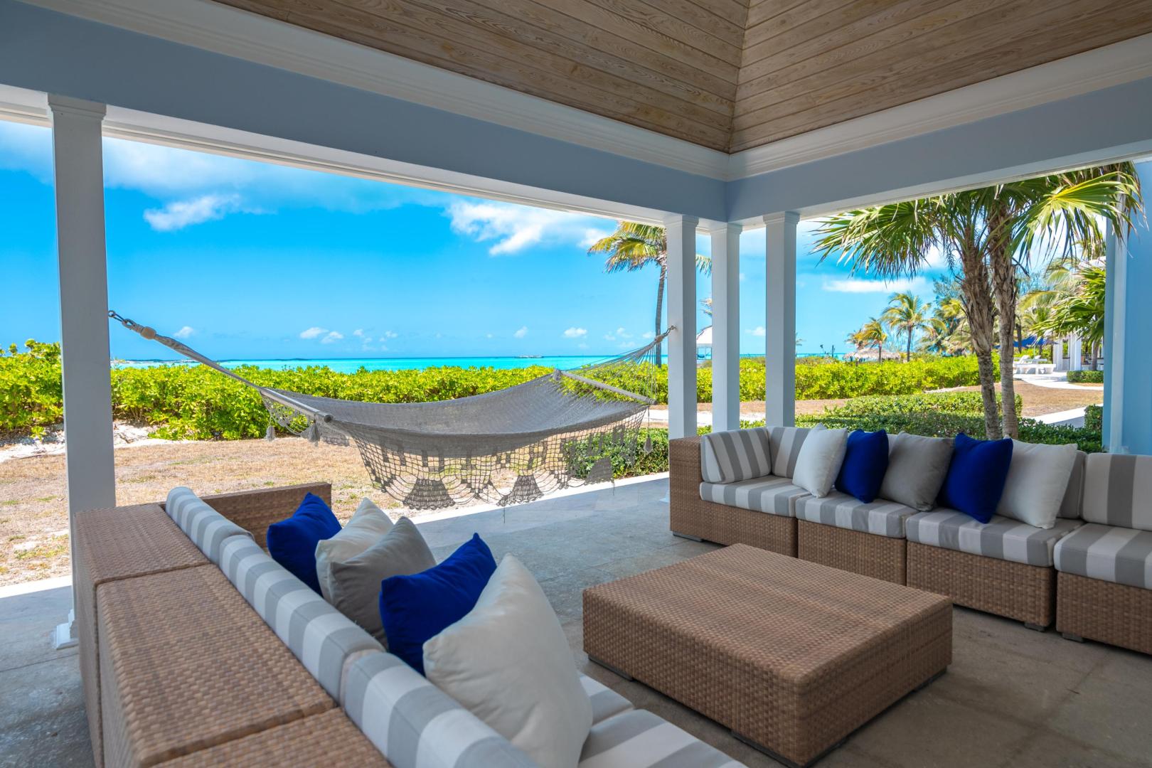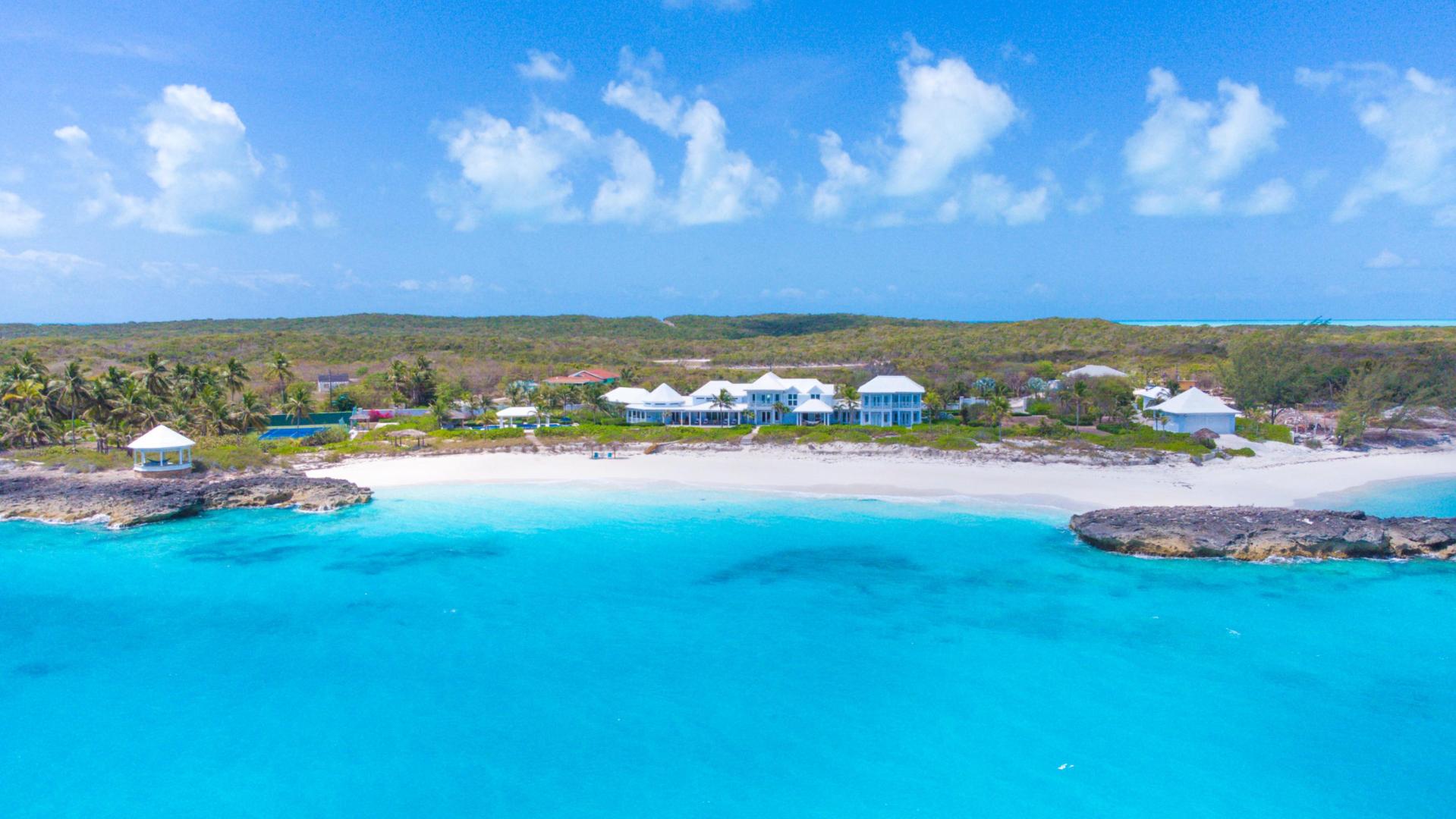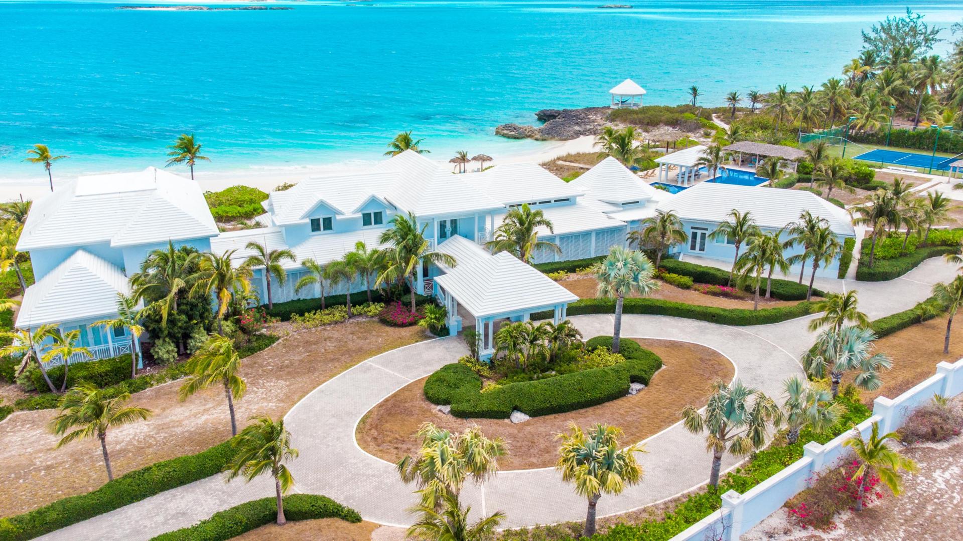 Welcome to Sandy Blue, your private oasis in the Exumas. Set on a spacious 4.4-acre lot that overlooks two of the most incredible private beach coves, this 9,208-sq.ft. home has everything you need to relax, unwind, and enjoy a dream-come-true escape without ever having to leave the comfort of your vacation home.