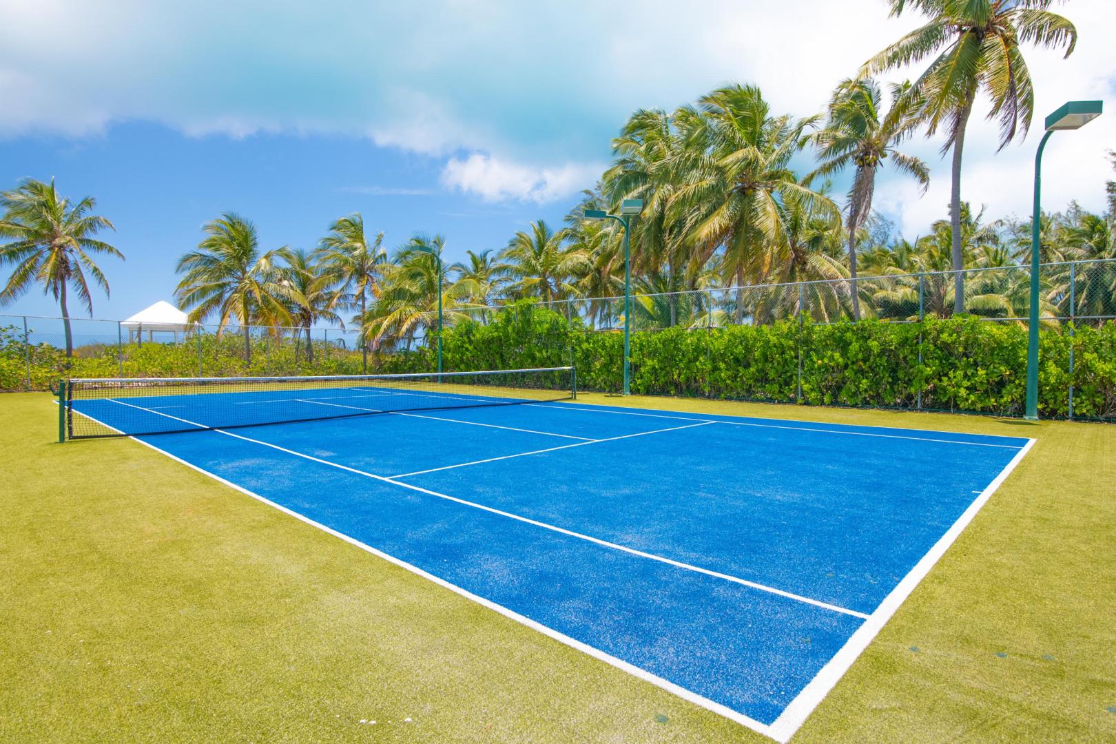 Additional standout features include private beach access with space enough to moor your boat off-shore; impeccably groomed lush tropical foliage; a lighted grass tennis court; a backup generator; on-site staff, including a private chef and housekeeping; and, a concierge-style property manager to ensure all of your needs are met during your stay.