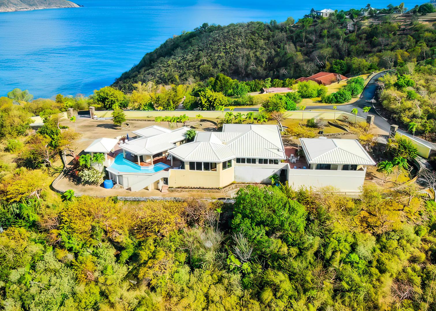 Situated on the exclusive Great Camanoe Island near Tortola is a wonderfully secluded hilltop retreat known as Indigo Breeze Estate. Built to withstand just about anything nature may throw in its direction, this elegant and sophisticated home will meet the expectations of anyone wanting a higher level of distinction in an outer island home. Indigo Breeze Estate is a sprawling one level home with over 4000 square feet of enclosed living spaces, over 1200 square feet of covered porches and terraces, 1600 square feet of uncovered patios, and to top that off, a two car garage and workshop.