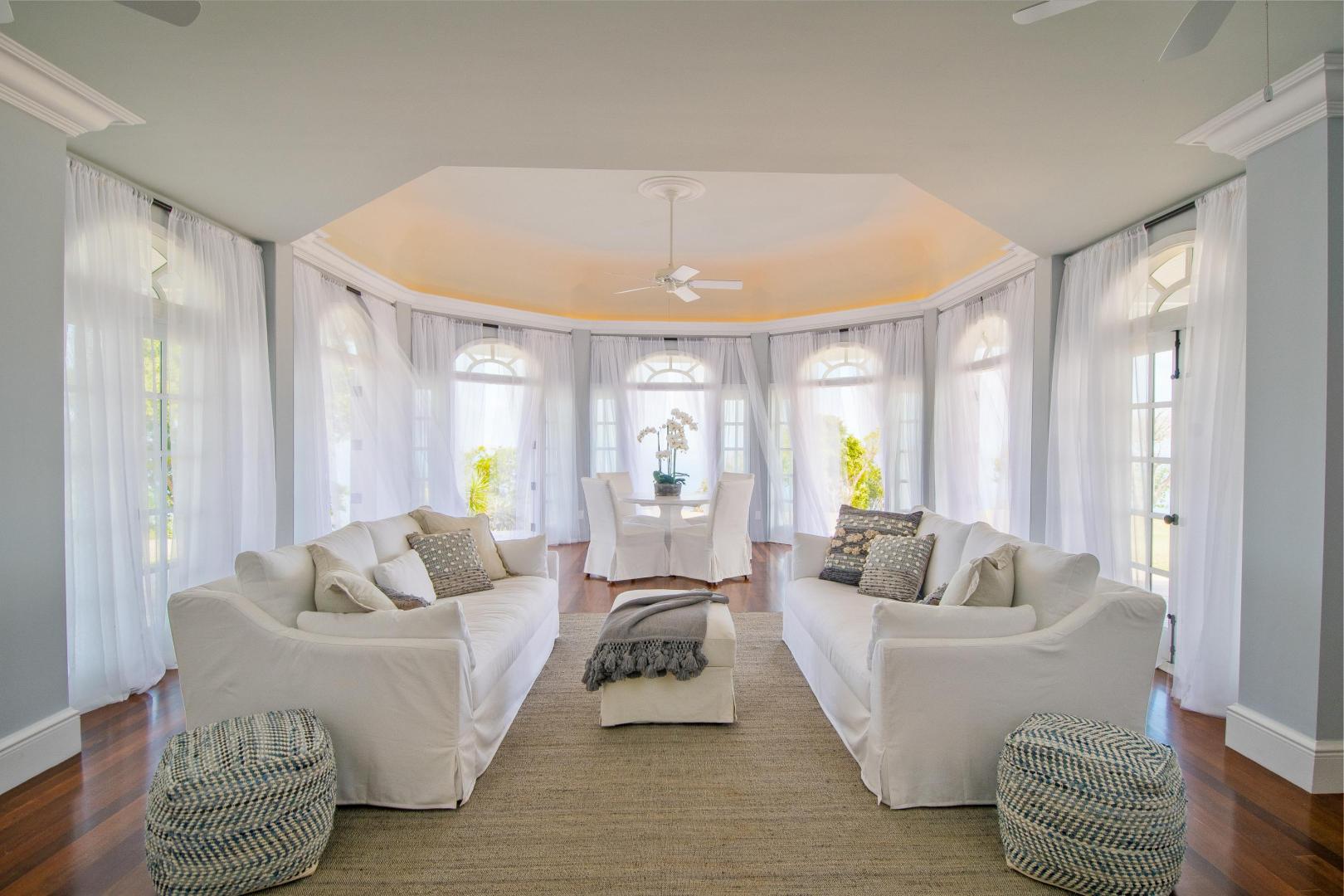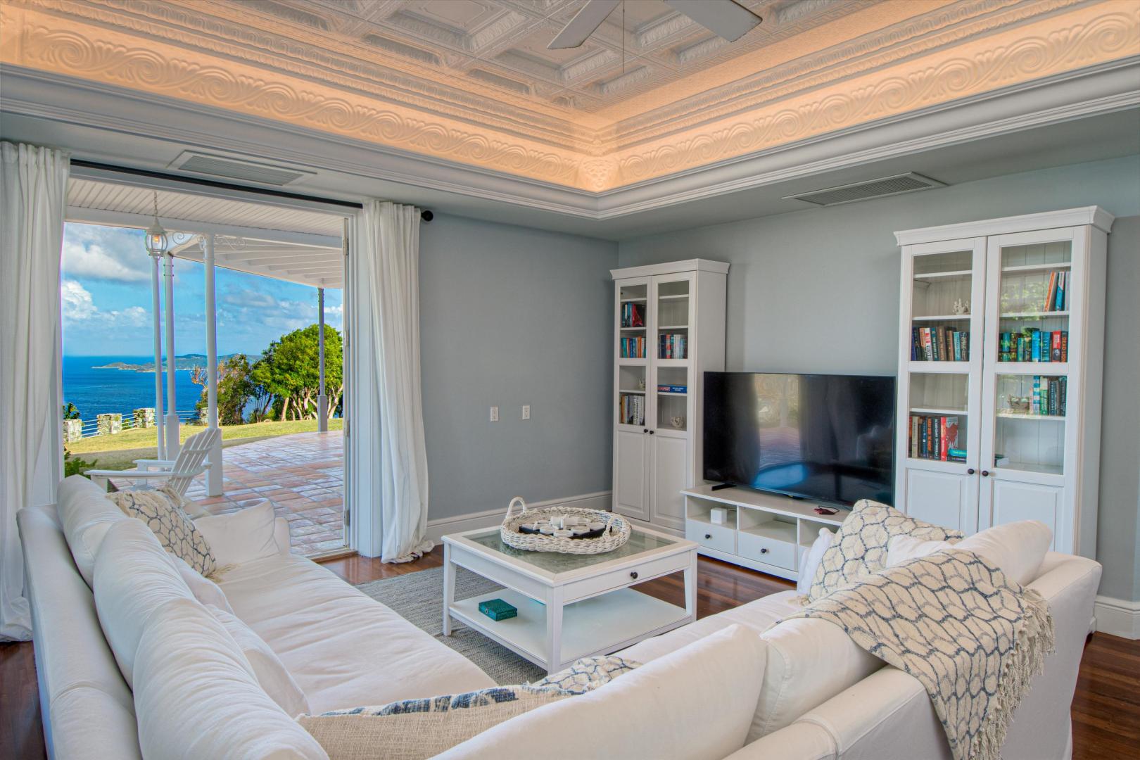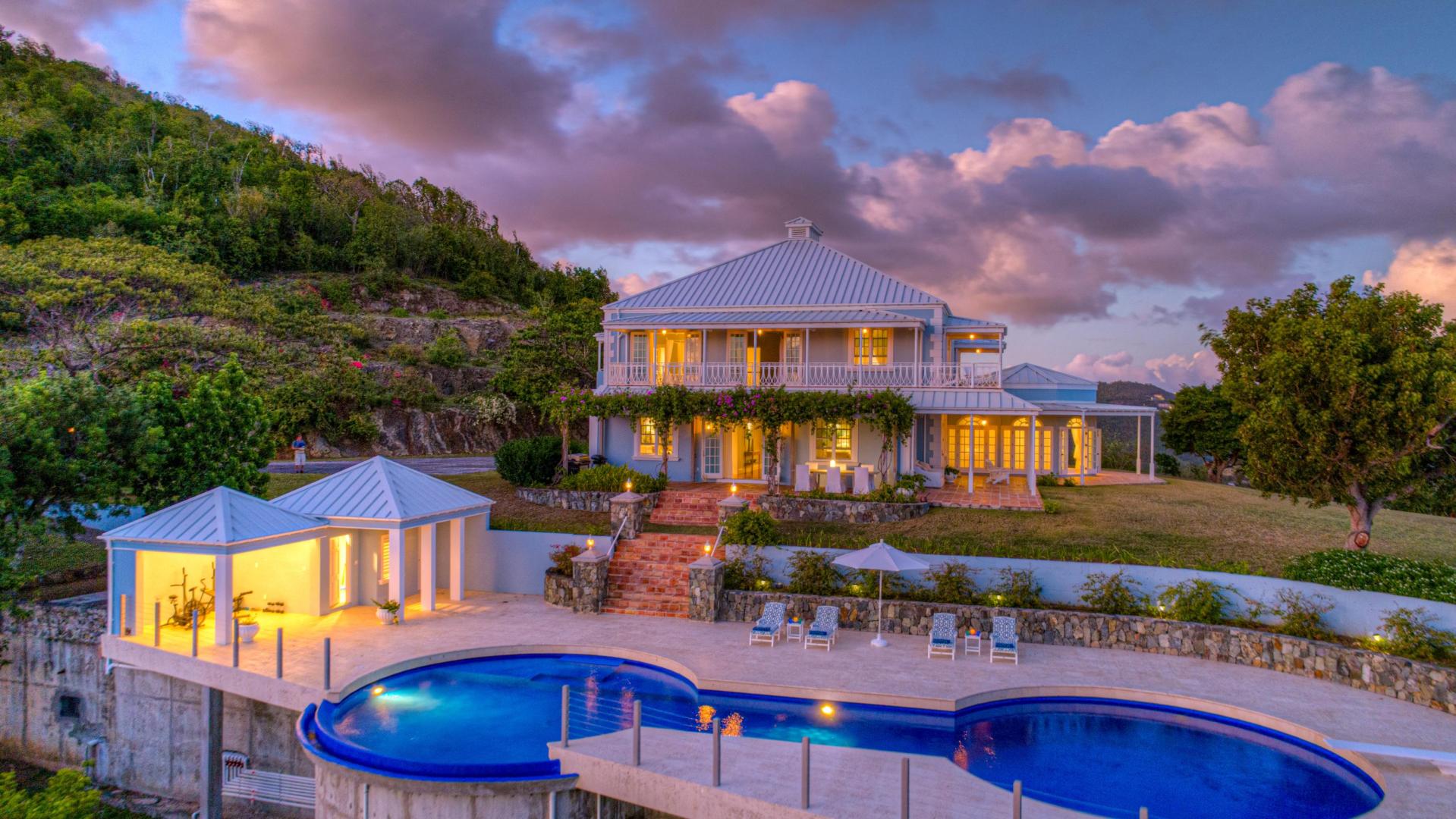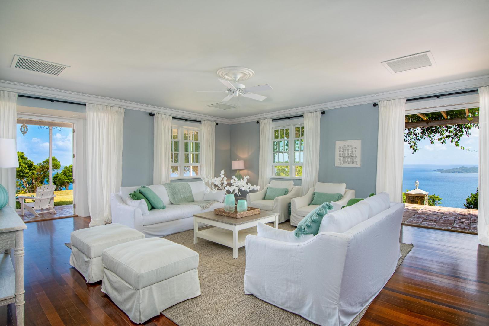 Splendor begins at the entrance to the estate with a long driveway winding through mature gardens that lead to this spectacular home. Once inside, you are greeted by an expansive entrance hall with a double-height ceiling and a sweeping staircase, from which all rooms within the property are accessed. The home has four generous reception rooms—a formal dining room, library, drawing room and sunroom—along with a vast, hand-built kitchen with further dining space. On the second floor, a quartet of generous bedrooms awaits, each with French doors to the stunning wrap-around veranda offering 270-degree views of the Caribbean. All bedrooms have either an ensuite or are adjacent to a bathroom, while the sumptuous primary bedroom has a large separate dressing room and an ensuite with bath and separate shower. Rare, almost entirely flat lawns surround the home, with shady verandas providing abundant space for entertaining and relaxation. The property also features a 60-foot-long, 60,000-gallon salt pool and separate pool house. Further outbuildings house storage space, a backup generator, and a hurricane room.