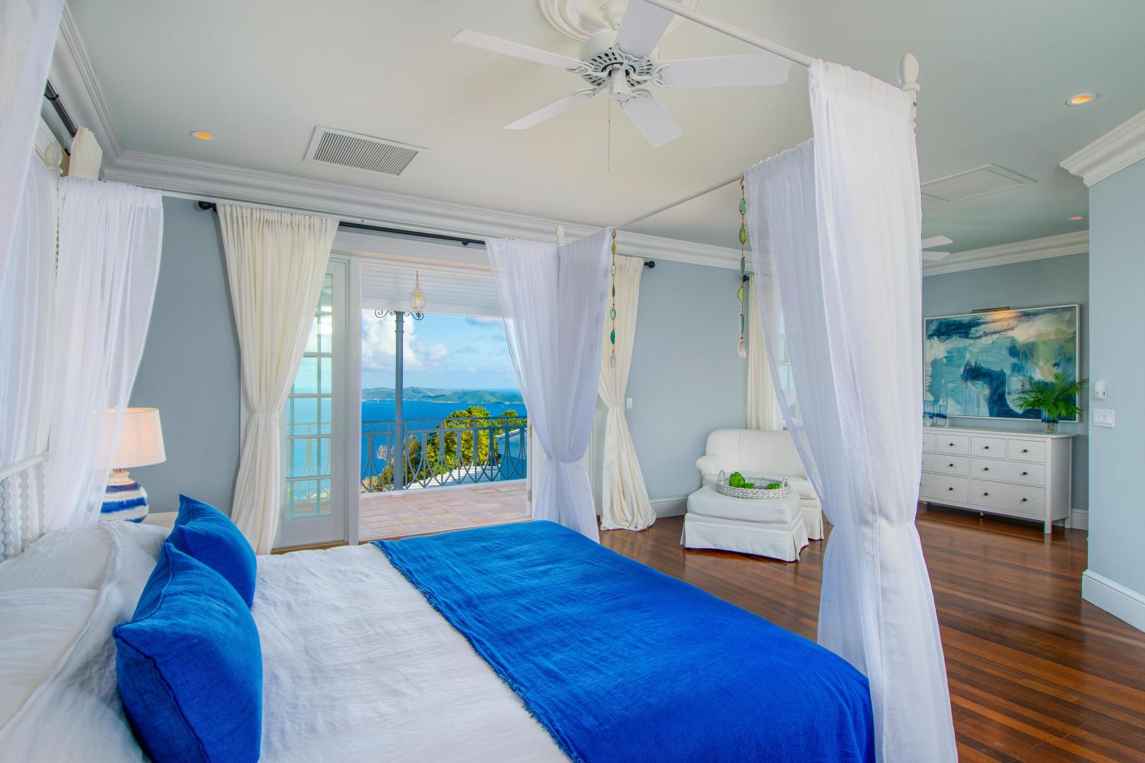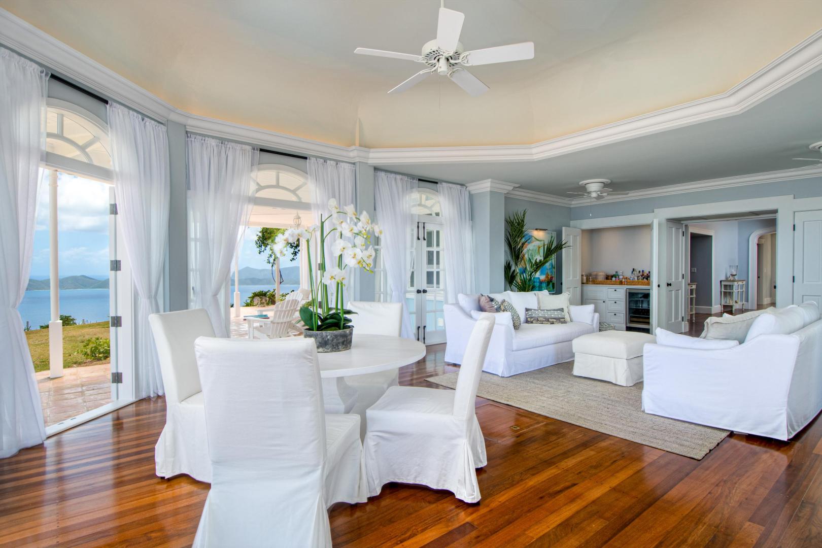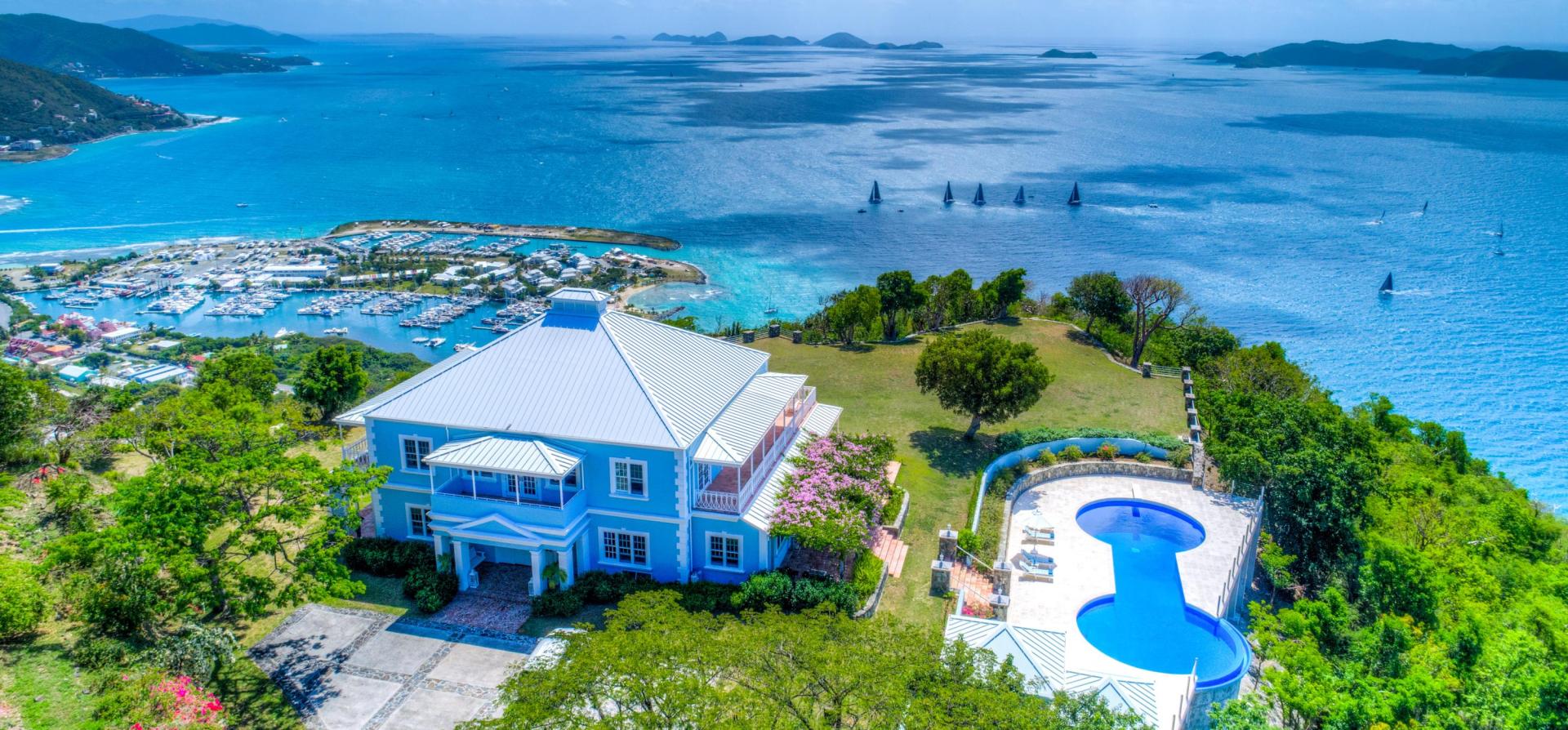 In the quest for the perfect island property, Loblolly has few equals. This elegant and thoroughly modern estate is one of the finest in the British Virgin Islands, its seven acres on Tortola’s south shore showcased by this breathtaking home. The property recently underwent a full renovation, transforming it into an ultra-contemporary retreat that still retains its original architectural designs and features. The powder-blue exterior with white railings and stonework gives this comfortable turnkey property a European feel with a Caribbean sensibility.
