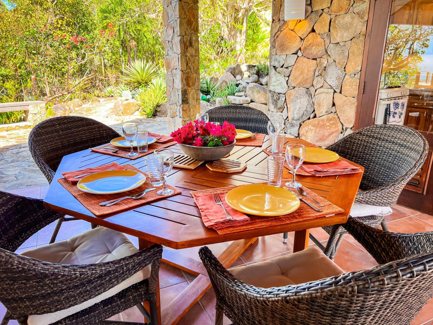 Access to Great Camanoe is by boat, so living at Stargazer is sublimely remote. A communal library and mailing post on the beachfront provide a reading room and message center for residents—essential pre-telephone, but still serving their purpose today. The island has cars for transport, but a boat is necessary to cross to neighboring islands. From Terrance B. Lettsome International Airport on nearby Beef Island, you'll arrive at your hilltop retreat and its unmatchable vistas within 15 minutes of landing.