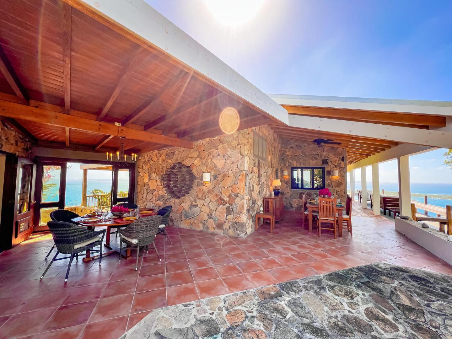 Surrounded by beautiful cacti, orchids, and loblolly trees, Whipple House was built to last of stone and timber, and consists of three original master suites that have since been united and opened up to let in the light. A full renovation in 2008 enhanced the features of the original home, and the results are stunning. Some of the walls of this reinforced steel and concrete block home have been faced with stone, adding a dramatic, earthy architectural sophistication that complements the timbered cathedral wooden rafters and beams. The roof structures are secured with steel and concrete columns all the way to the foundations, and the floors are covered in Mexican Saltillo tiles. Large farmhouse doors open up the main suite. A barbeque area joins the master bedroom and living area with the second bedroom, while the third unit remains isolated. Each bedroom features stone arch windows to look onto the new wooden decks overhanging the hillside.