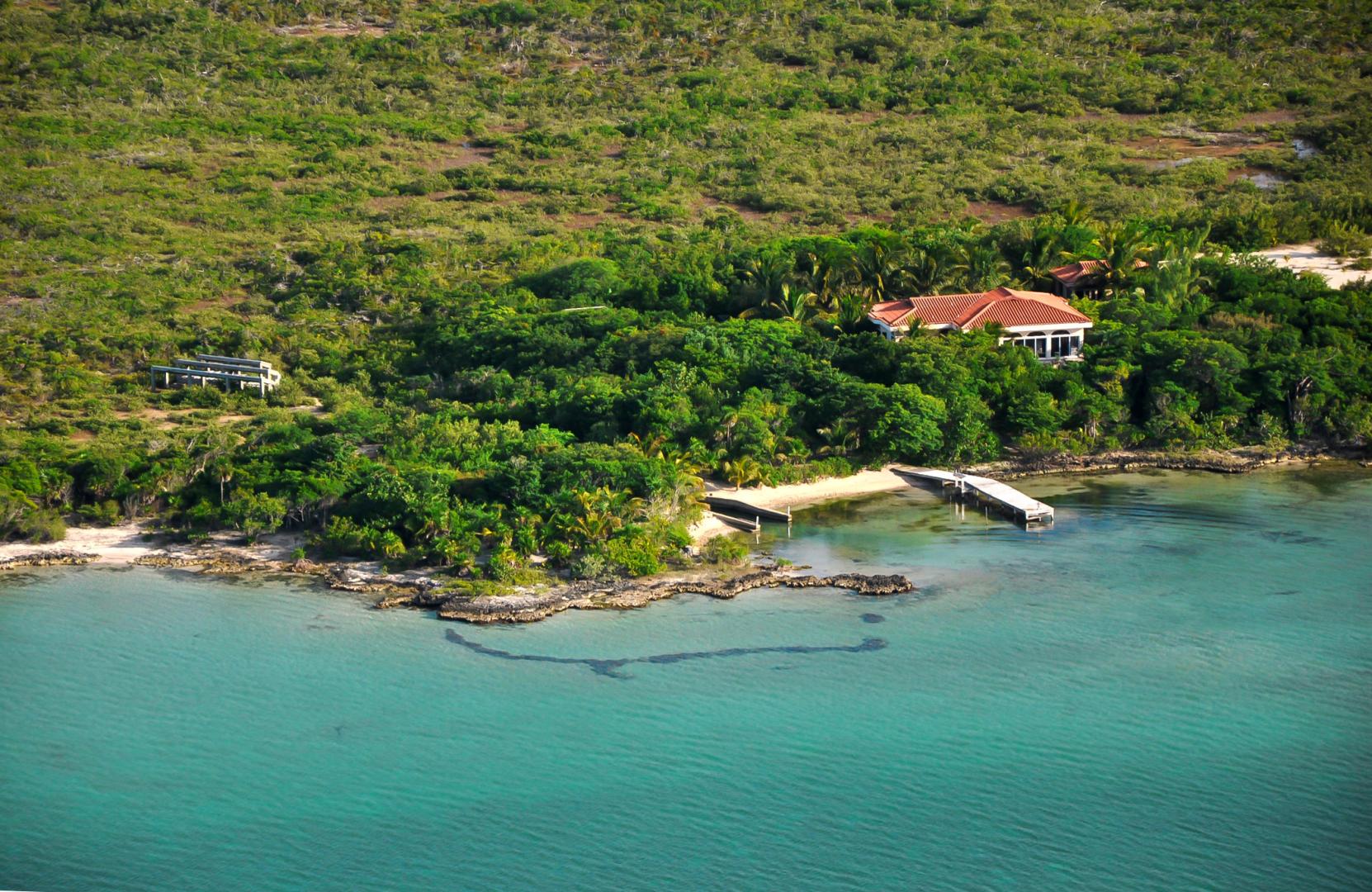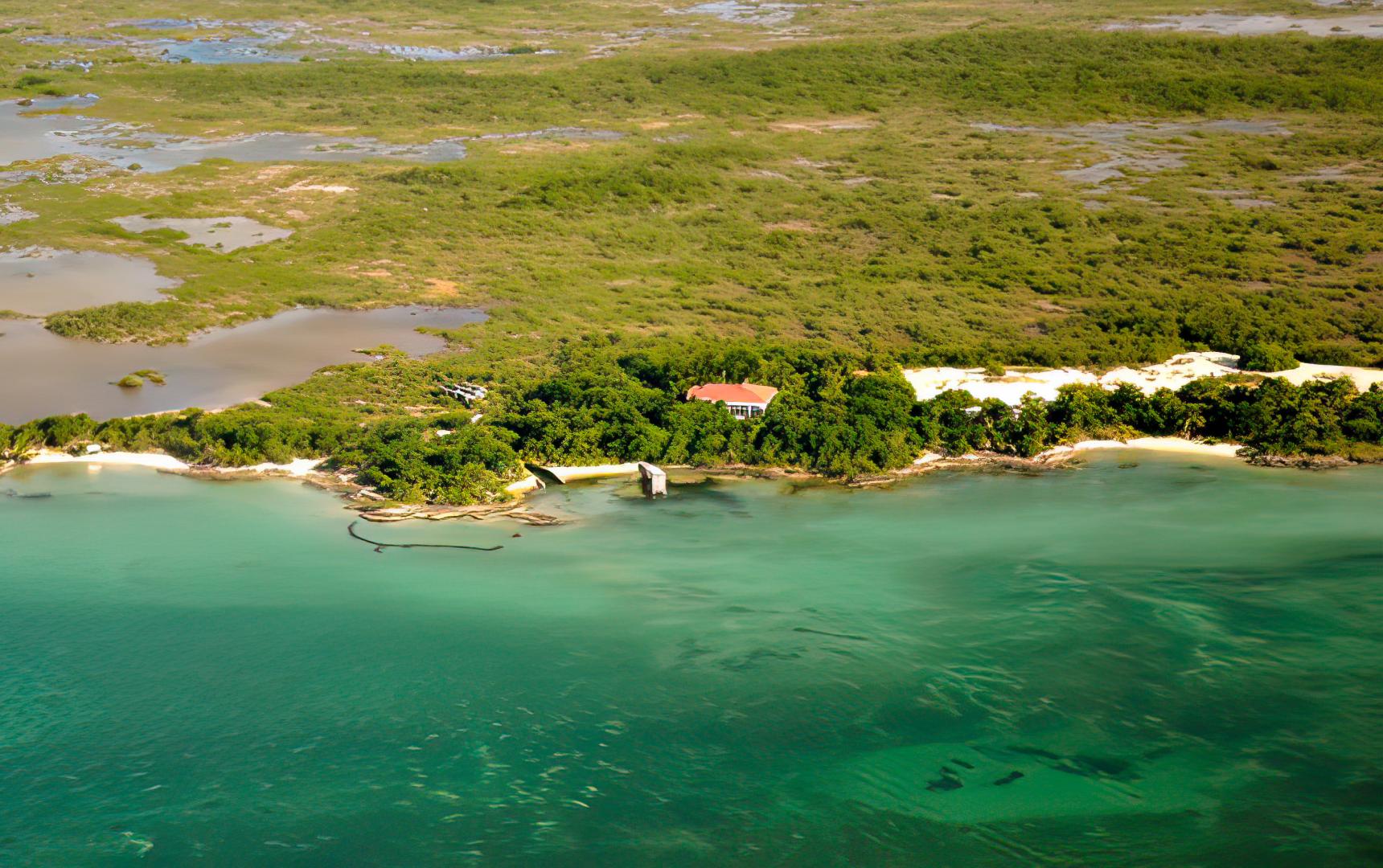 Secluded, off the grid, self-contained compound on the tropical Caribbean island of Ambergris Caye, Belize. 2.95 acres with 400 feet of beachfront. 2 houses: main house and caretaker/guest house. The main house is 76 feet from the beach, has 3920 square feet upstairs and downstairs with sea, lagoons and vegetation views from all rooms; 2 bedrooms, 3 baths. The second house can be used as a caretaker house or guest cottage; 3 bedrooms, 2 baths. Property is totally green and self-contained with sophisticated solar electrical system (new inverter/charger & battery bank installed March 2013; new solar panels, controller, back-up auxiliary chargers installed April 2015), back-up generator, 60,000 gallons of water storage, reverse osmosis system, solar water heaters, in-line/tankless gas hot water heaters, commercial quality water filtration/water purification system, energy efficient air conditioner (SEER 19) in a bedroom in each home (new April 2015), 3 8-ft. satellite dishes for TV, 60" plasma HD television, wireless Internet (streaming US channels, Netflix, Amazon Prime, Hulu, ESPN, etc.), private marina with 2 boats, new pier (March 2015), satellite TV with DVR installed. The mature landscaping includes over 200 hibiscus bushes, over 50 orchid plants, over 50 palm trees (including coconut bearing palms) and multiple varieties of indigenous trees and plants with mangrove, gumbo limbo, poison wood, ziricote; all on "high" ground.