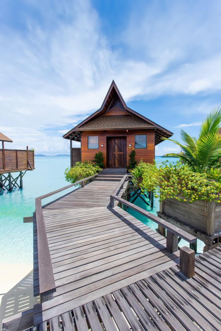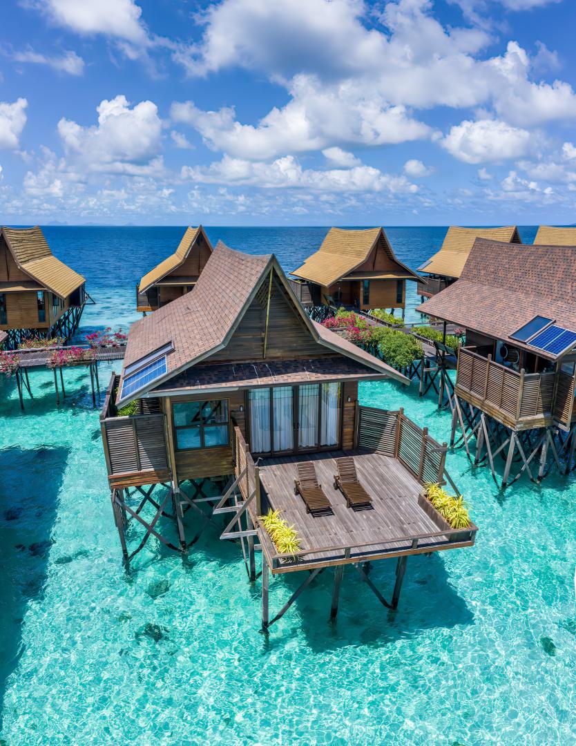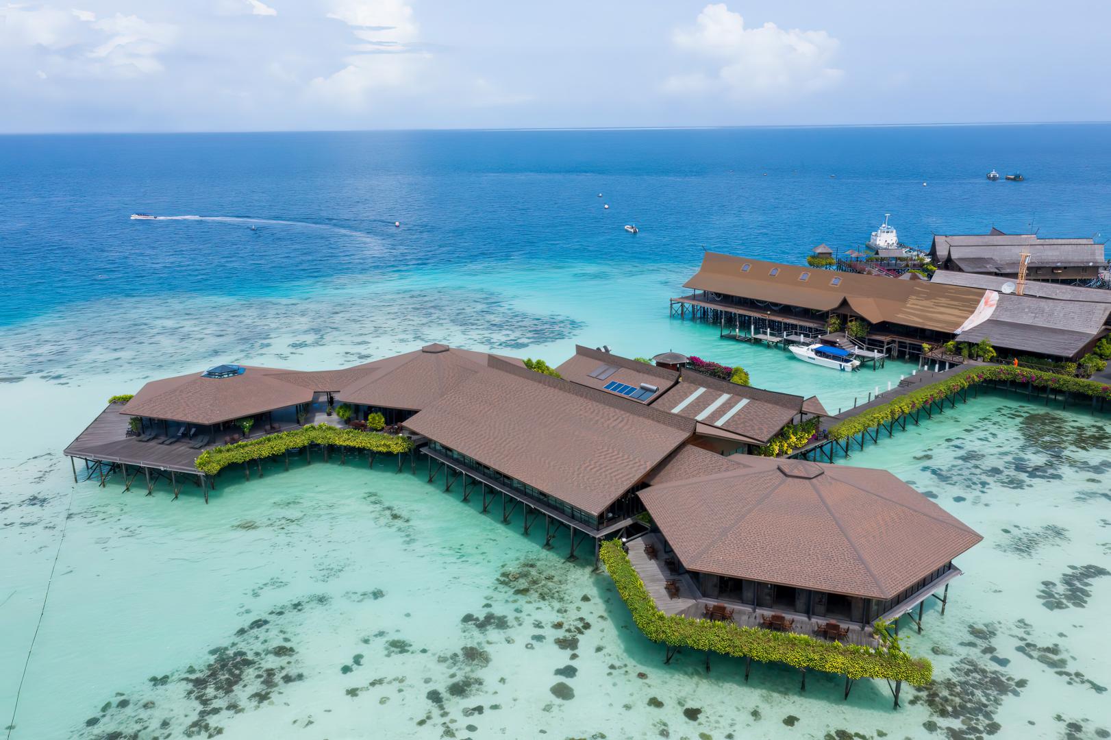 A few minutes by boat from the islands of Sipadan and Mabul but a full world away from them lies the exhilarating Sipadan-Kapalai Dive Resort, sitting on its sturdy stilts on the shallow sandbanks of the Ligitan Reefs. Planned and built in full style as an airy, comfortable, sunny water village with no land in sight, it boasts a mile-long sandbank of powdery white sand where one can suntan at complete leisure while gazing out to the miles of brilliant turquoise stretching into the horizon offering the purest image of natural serenity.