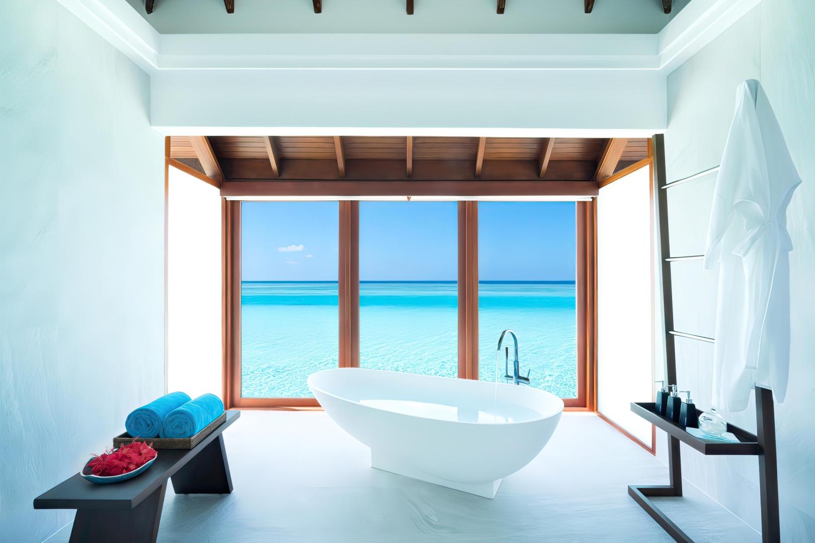 Wake up to soothing views of the endless deep blue Indian Ocean. Take a morning plunge in the gentle waters of a turquoise lagoon directly from your overwater villa.