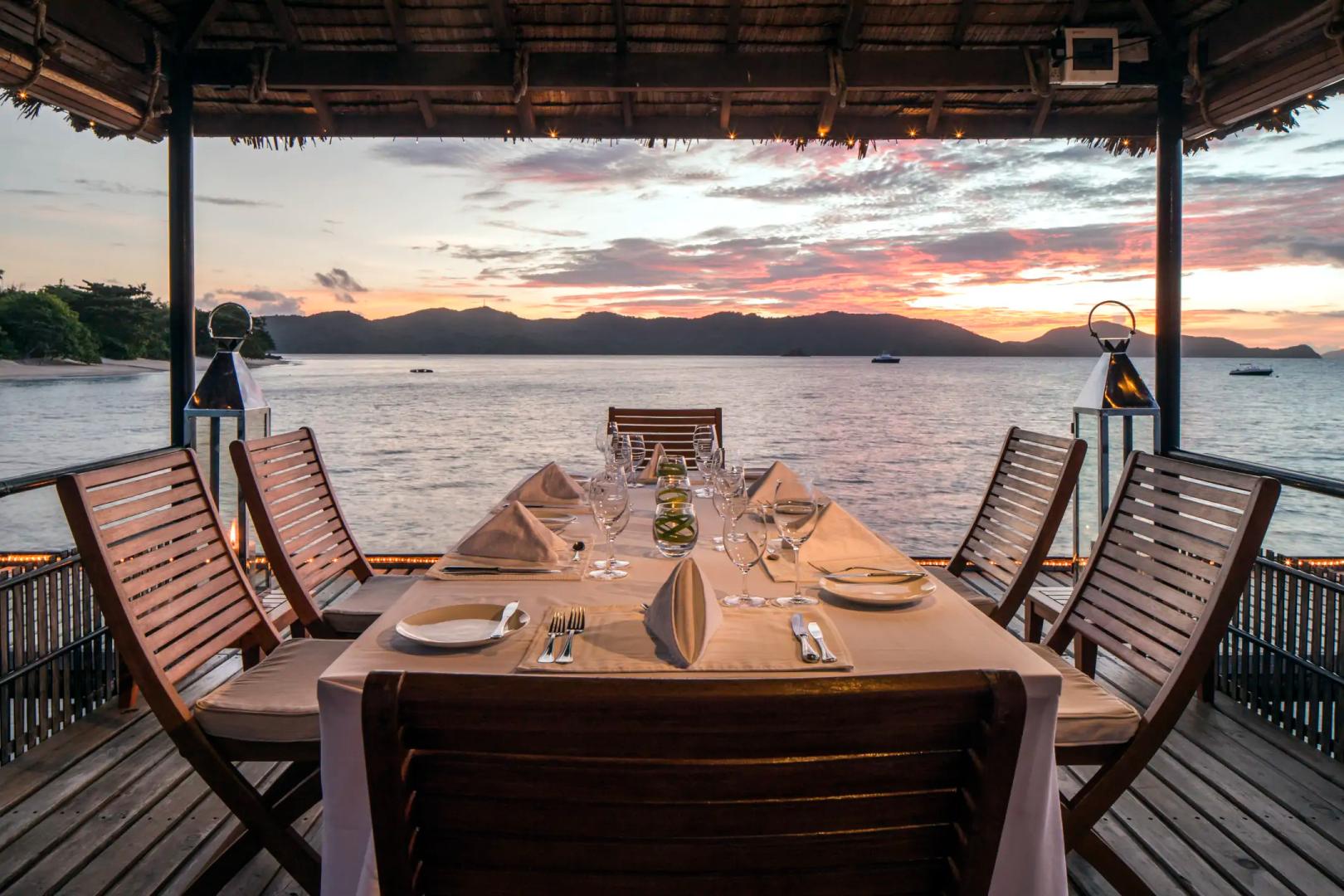 A crewed yacht with air-conditioned cabins is at the guests' disposal for island hopping and expeditions (fuel charged according to usage)