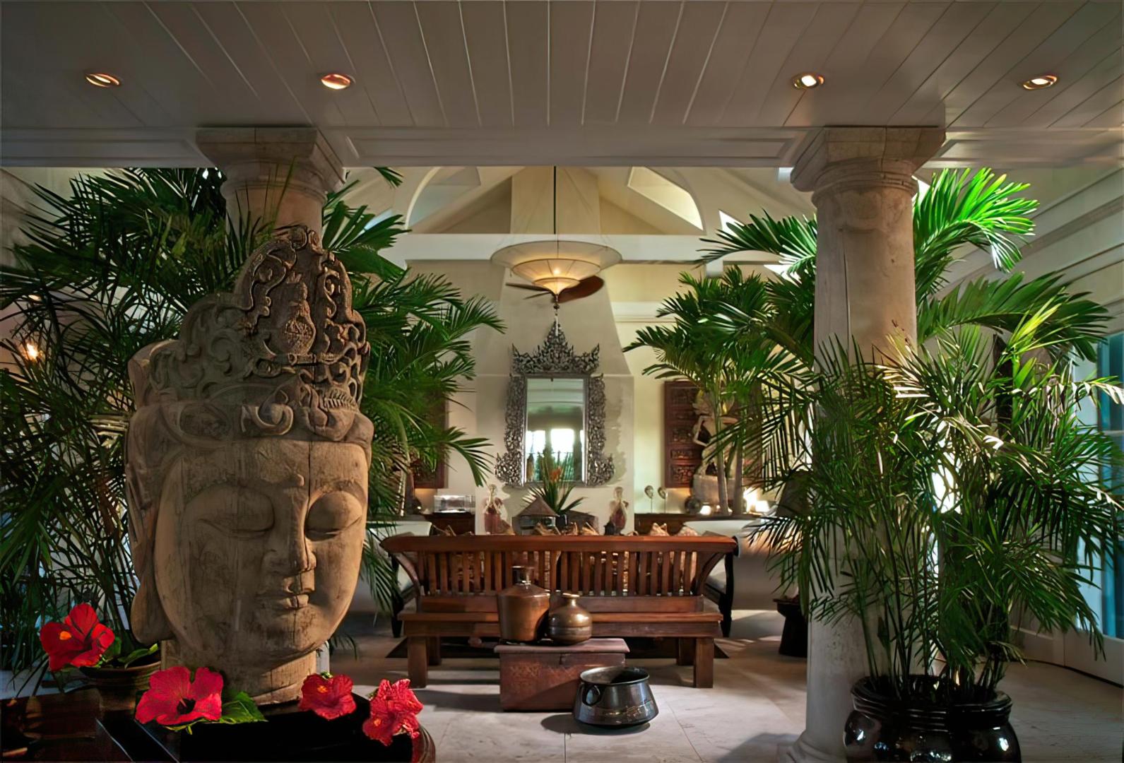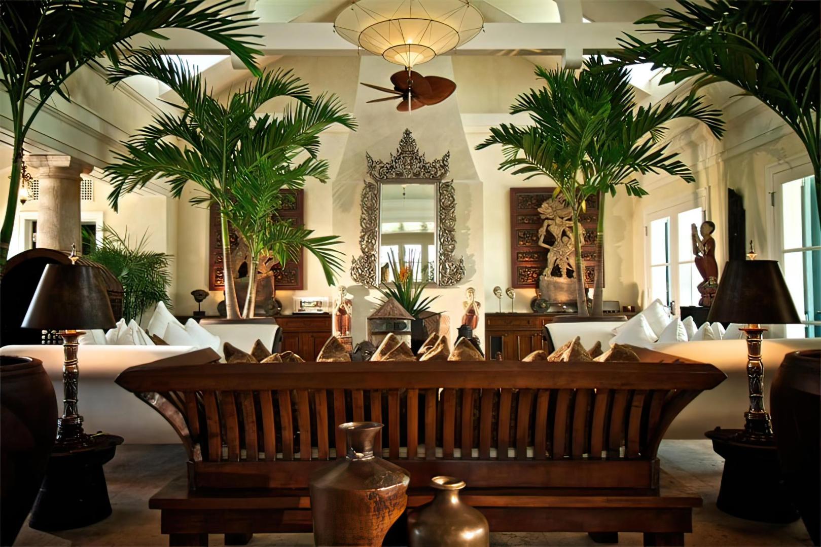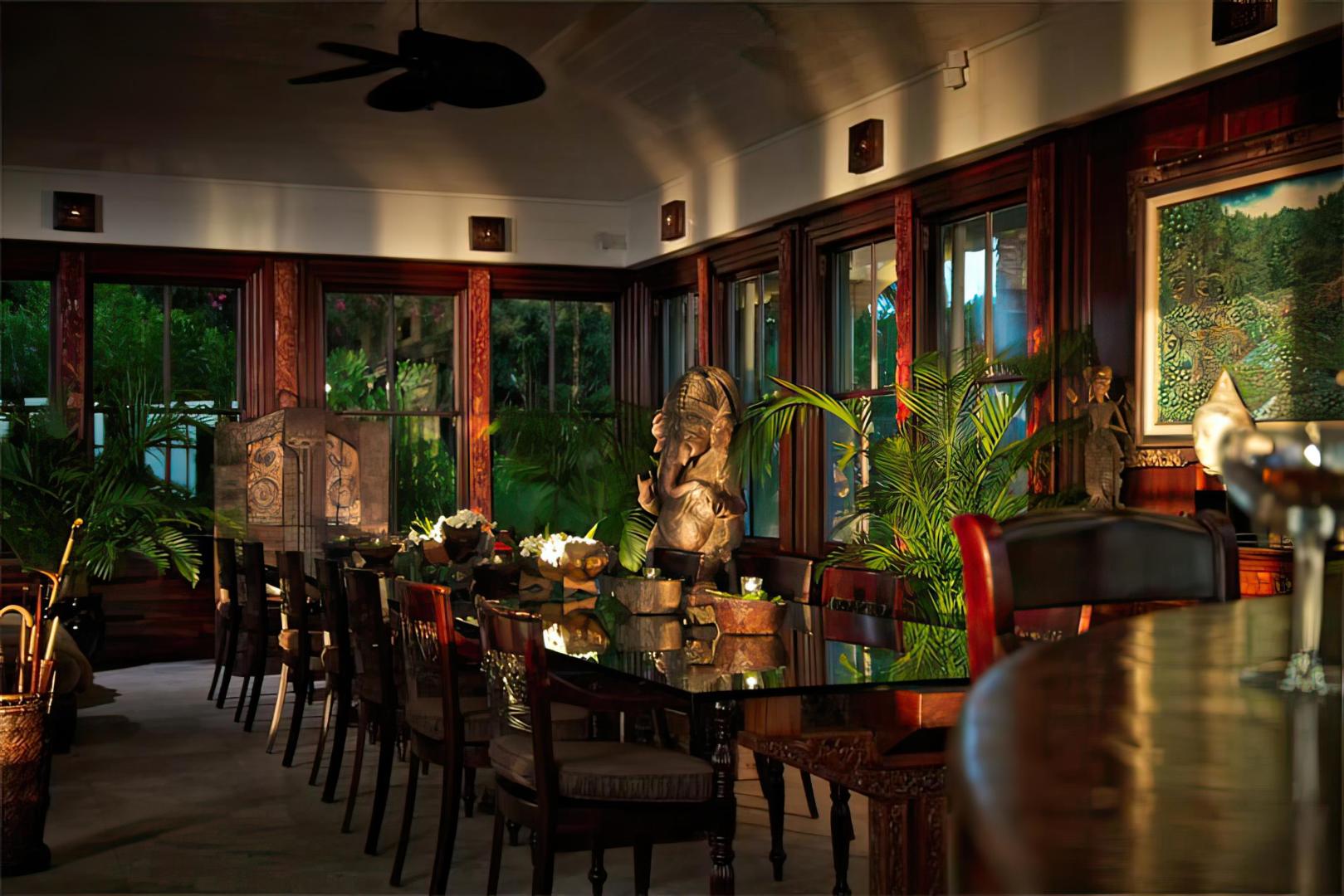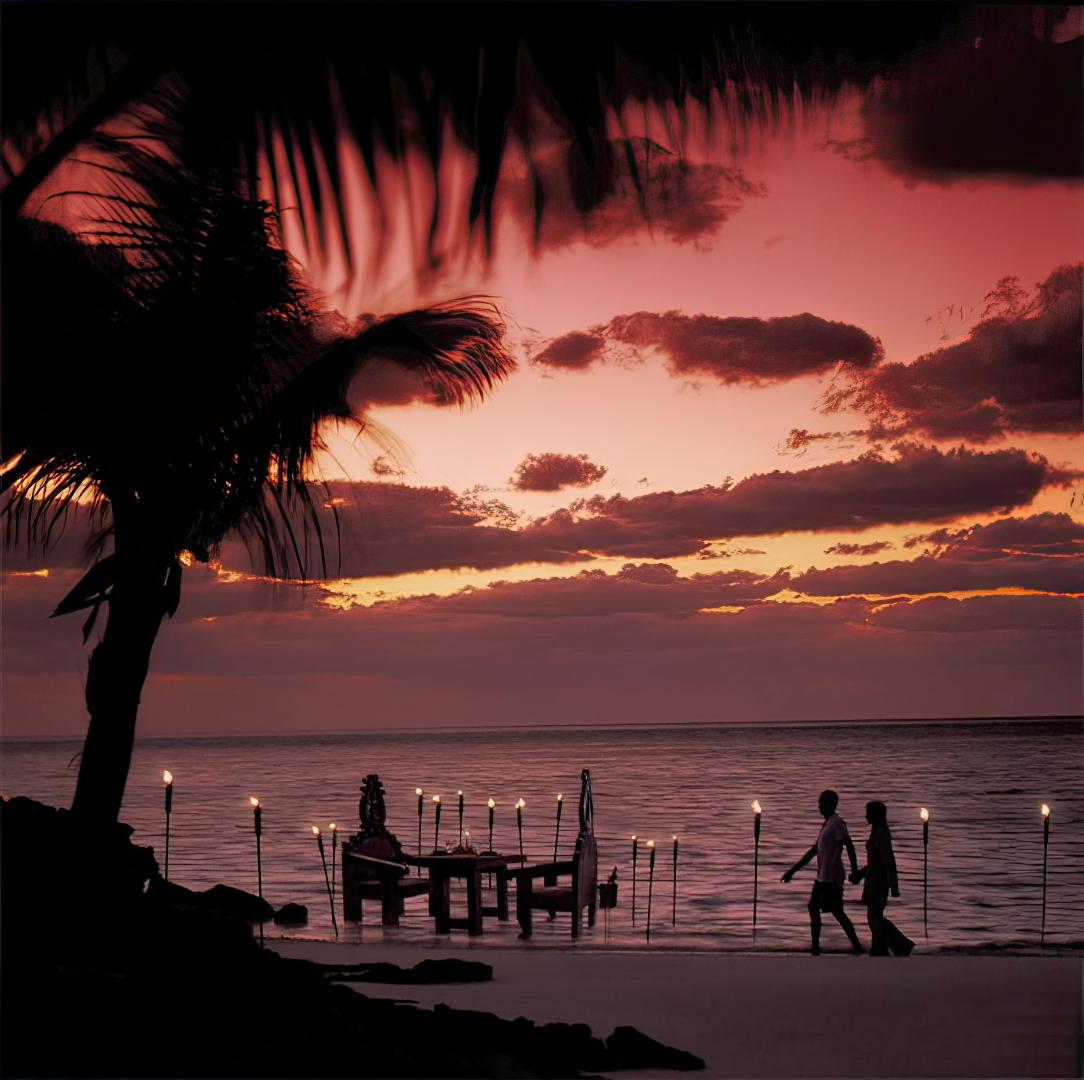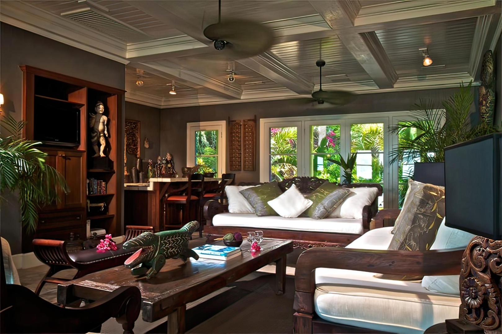 The island features palm trees, exotic flowers and tropical vegetation, and its white sand beaches border on the crystal clear turquoise waters of the Caribbean. A live-in staff of 30, including a world-class chef, look after the needs of up to 20 guests, with accommodations provided in 5 unique English Colonial-style villas. Each villa has large mahogany decks, 4-poster beds in the master bedrooms, and access to its own private beach.
