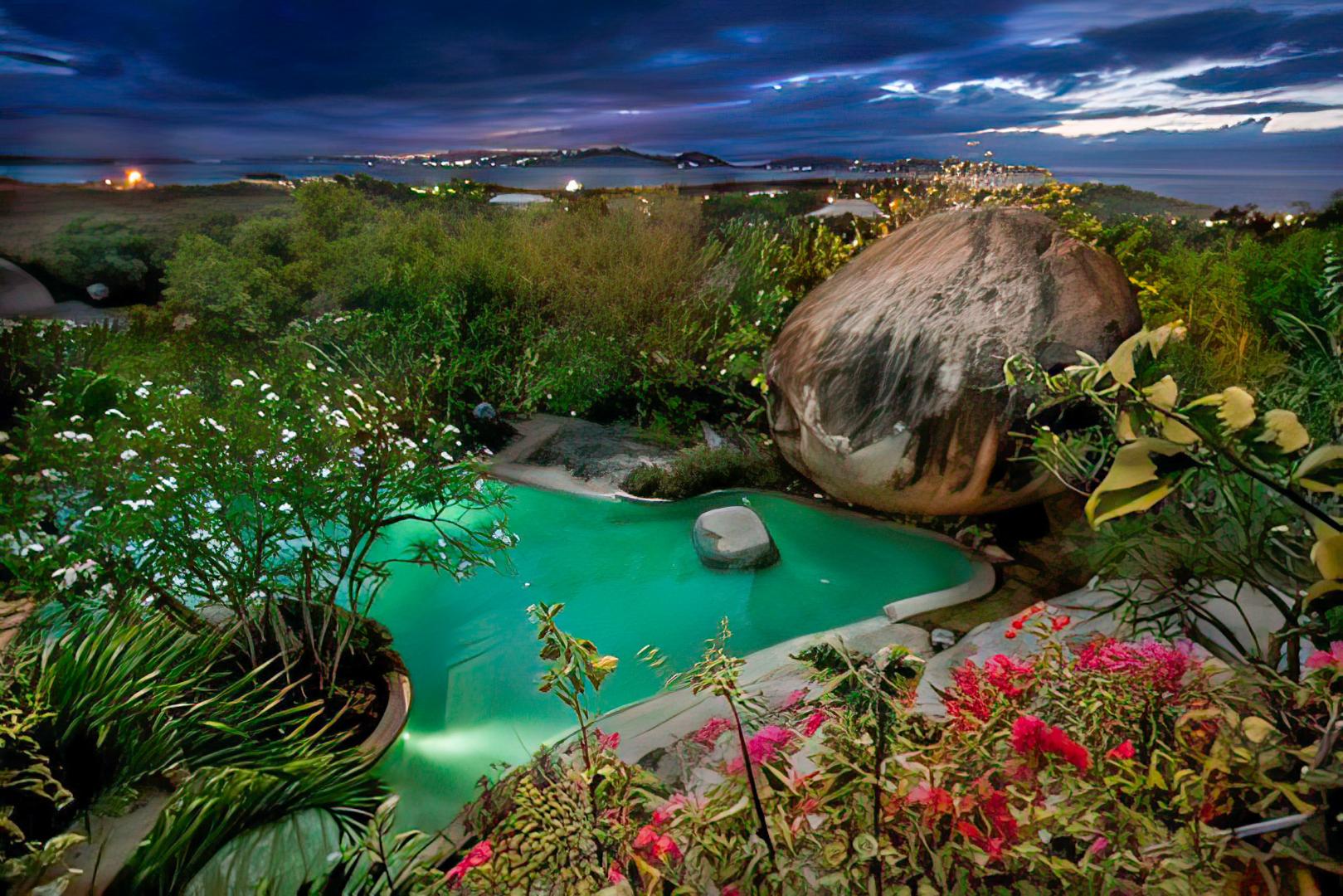 Symbio was designed to co-exist in perfect symbiotic harmony with the natural elements of Virgin Gorda. The gigantic granite boulders, characteristic of The Baths, surround this Virgin Gorda villa, its tropical gardens and salt water pool allowing for seclusion and privacy.