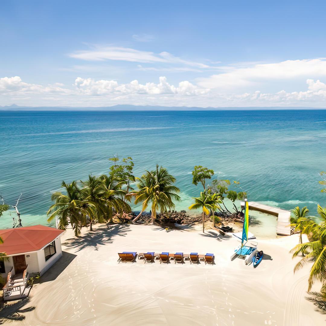 Complete with a full staff including a manager, concierge and cook, you will enjoy paradise with your closest friends and family, or just you and someone very special. Spend your days relaxing or stay busy with beach games, sea kayaks, snorkeling, scuba, sailing and fishing. If you care to venture off of the island, your concierge can arrange a variety of activities including zip lining, waterfall hiking, helicopter tours, cave tubing and excursions to the Mayan ruins.