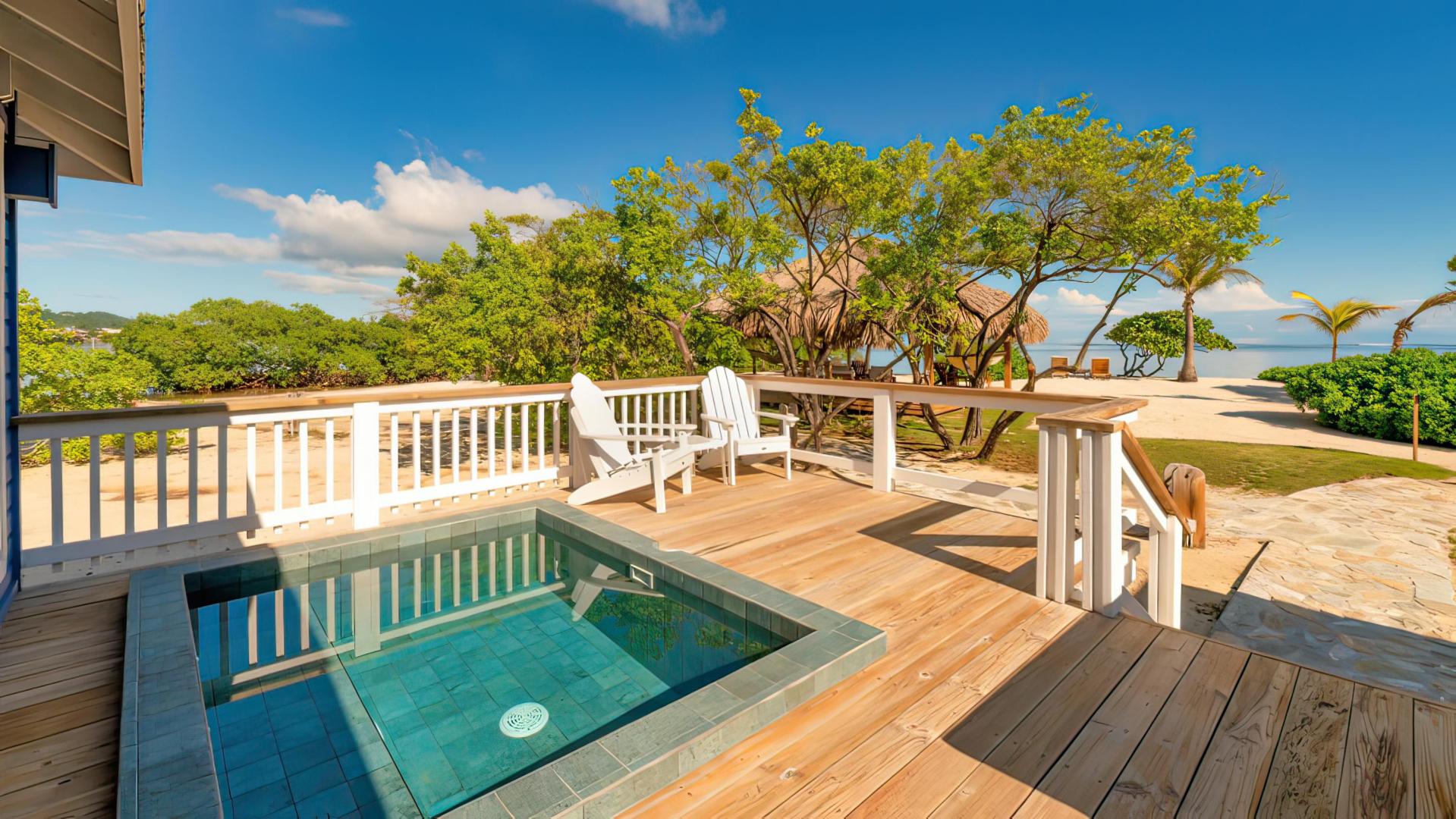The 260-foot-long swimming dock with 30-foot-diameter thatched roof palapa at the end is a great place to get out of the sun. The 8-foot-wide dock takes you out to deep water swimming that is the incredible turquoise color of the Caribbean Sea. The palapa has a lowered platform for easy access to the water to snorkel, dive, or kayak. Just a short distance from the palapa is Barefoot Cay’s own sunken boat wreck, a small wooden sailboat that is attracting sea life into its hidey-holes.