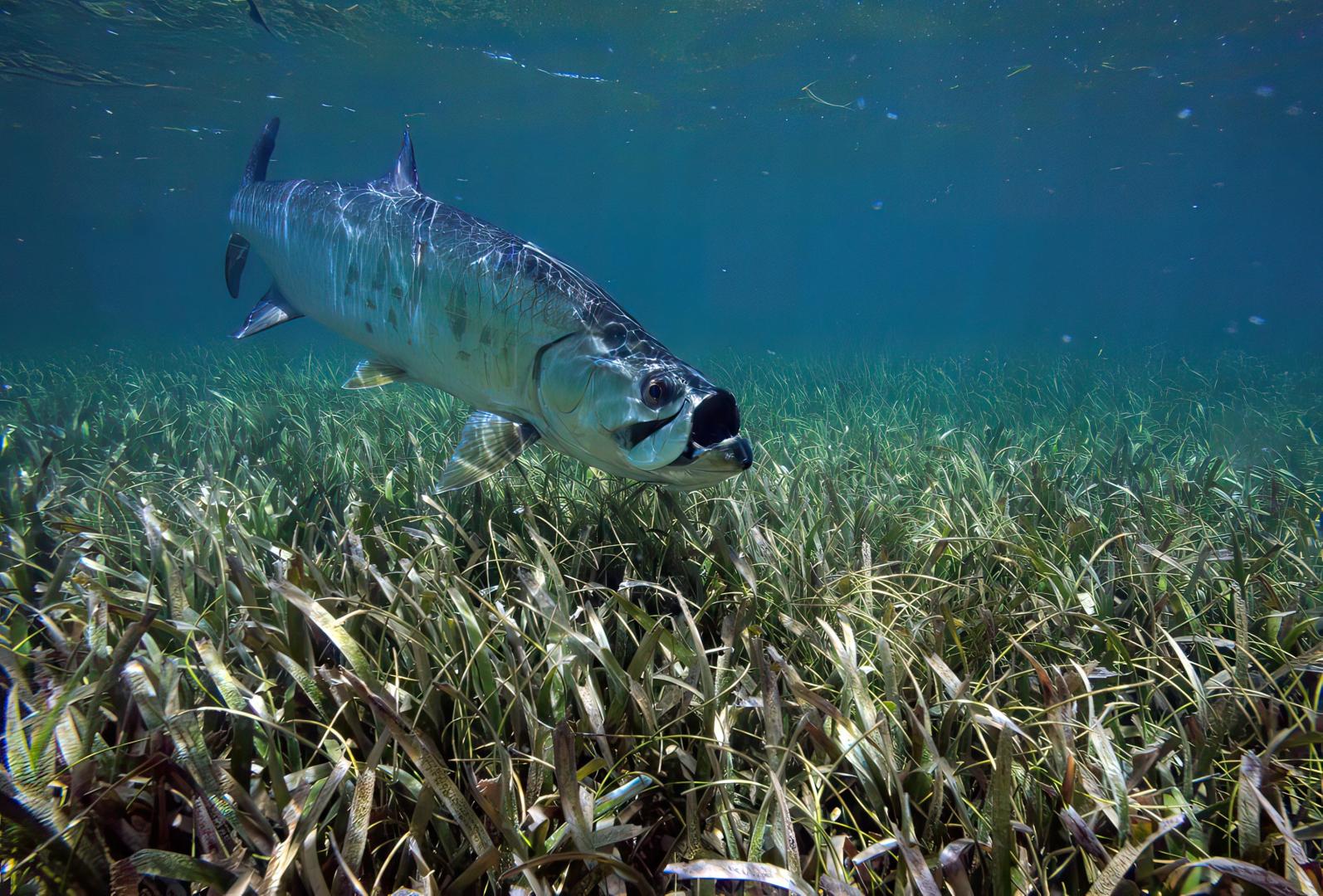 We catch baby tarpon and snook where the rivers meet the flats. Our baby tarpon range from 5-40 pounds and we sight-cast to them on the moving tide. We also have big resident tarpon reaching over 100 pounds. We often get into large schools of snook and land over 20 in a session. We use 8-10 weight rods for the baby tarpon and 12 weights for the giants.
