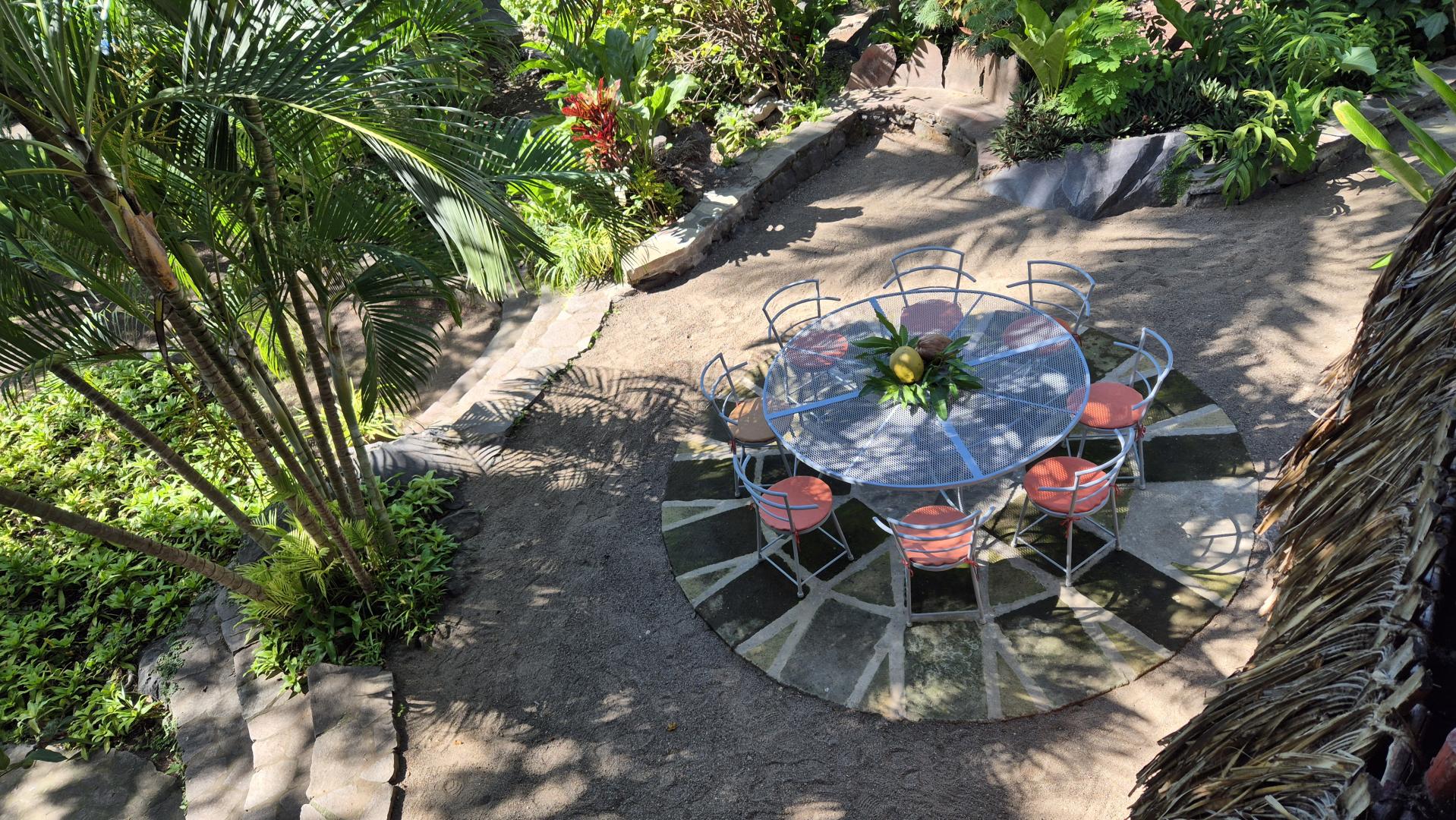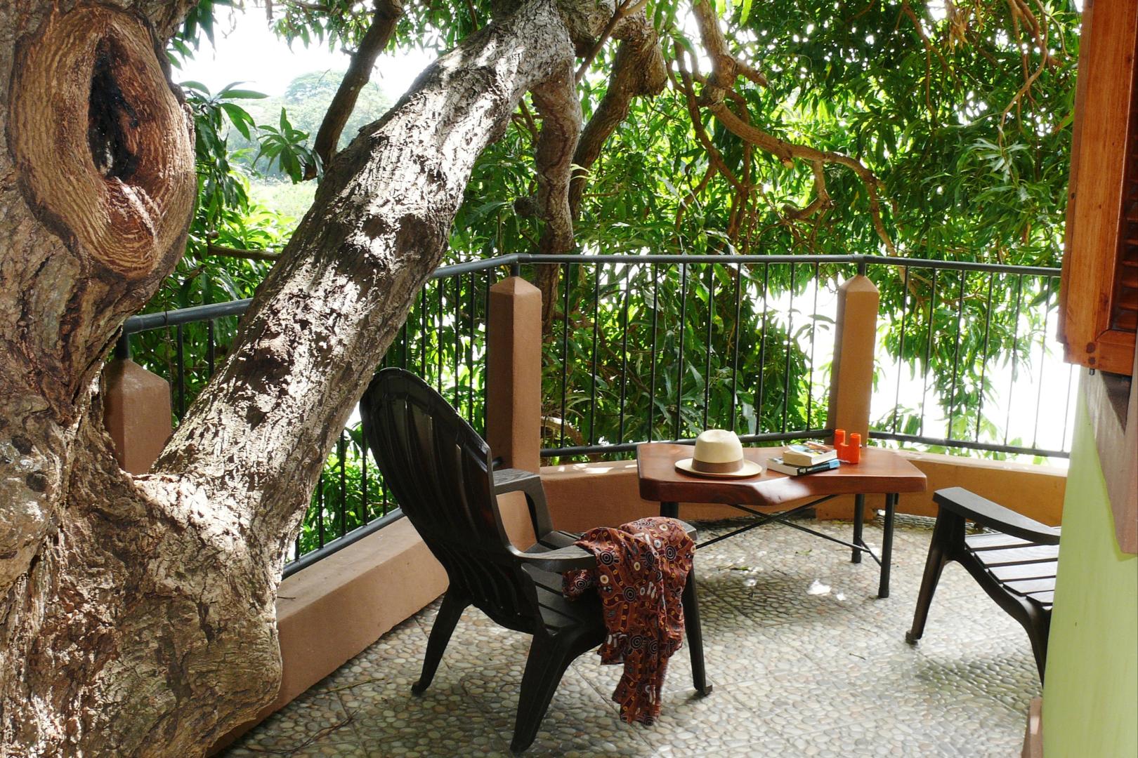 Wide panoramic terrace partly shaded by a mango tree