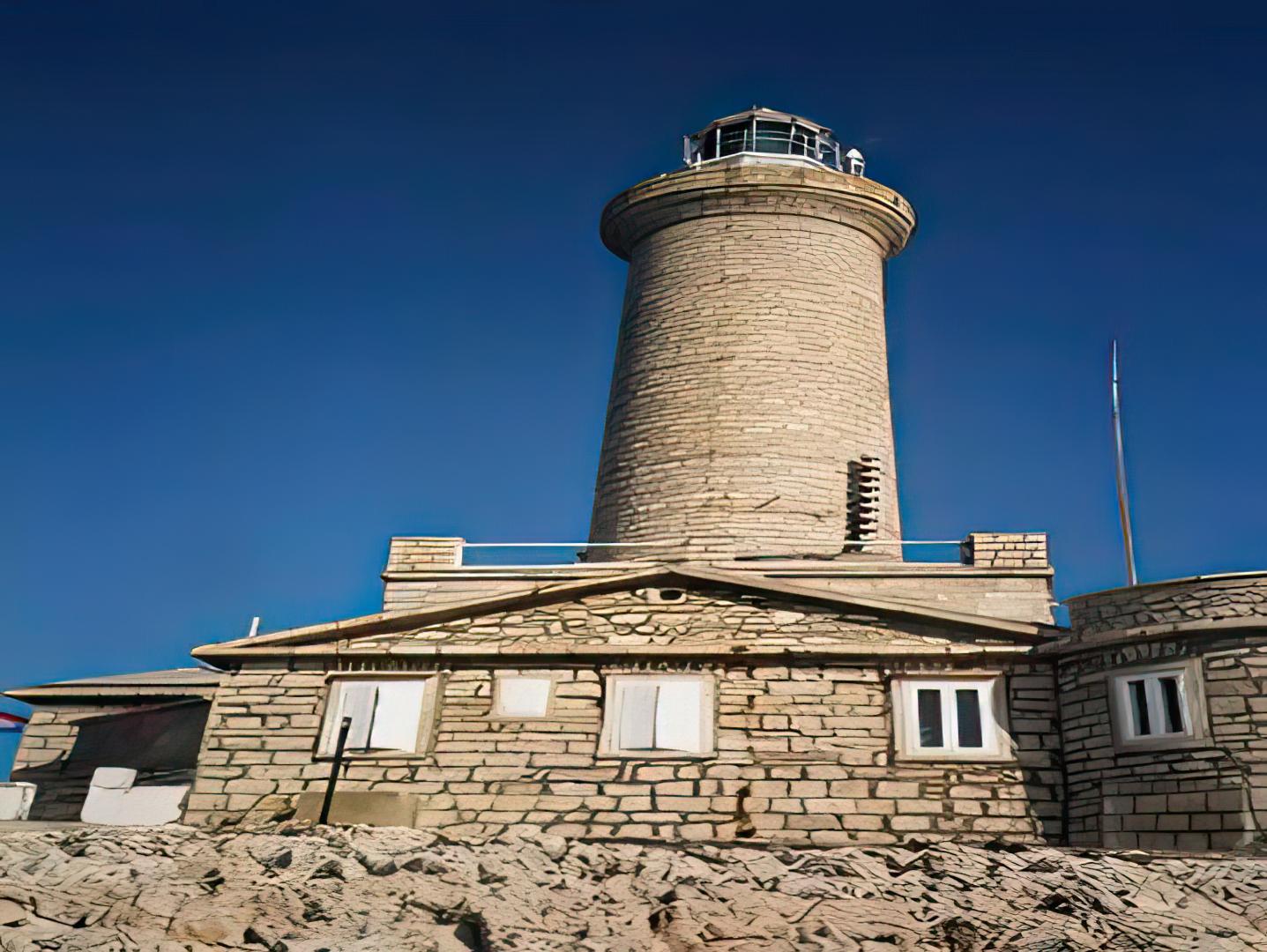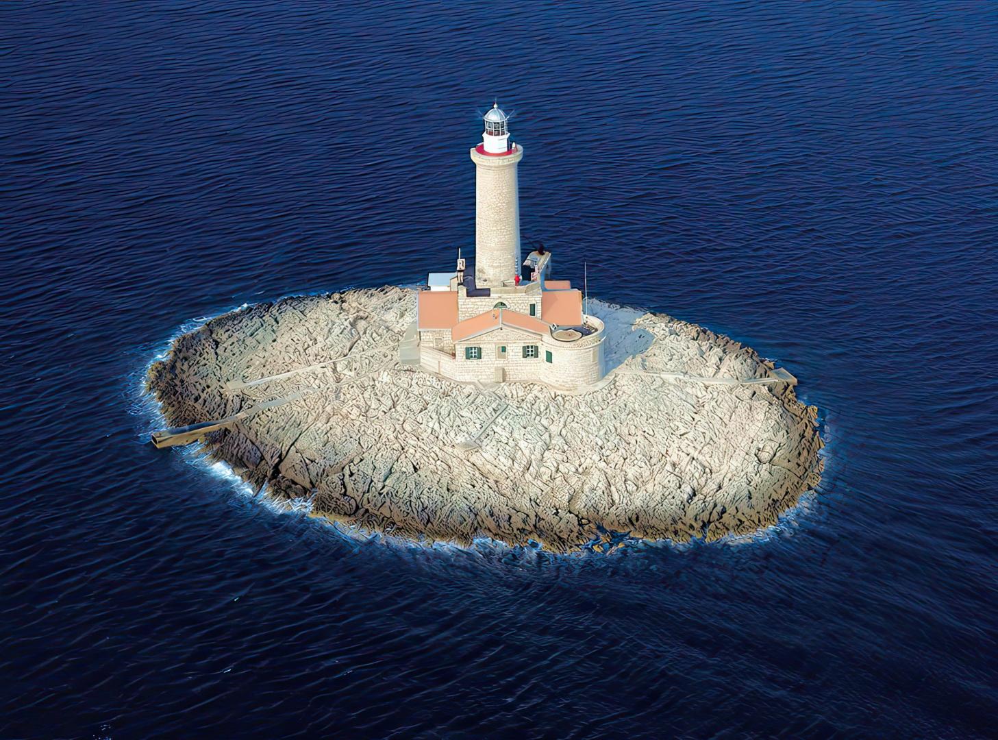 Porer lighthouse was built in 1833 on the islet of the same name, southwest of Istria's southernmost cape. The islet is an 80 m cliff, 2.5 km from the mainland and the small town of Premantura.