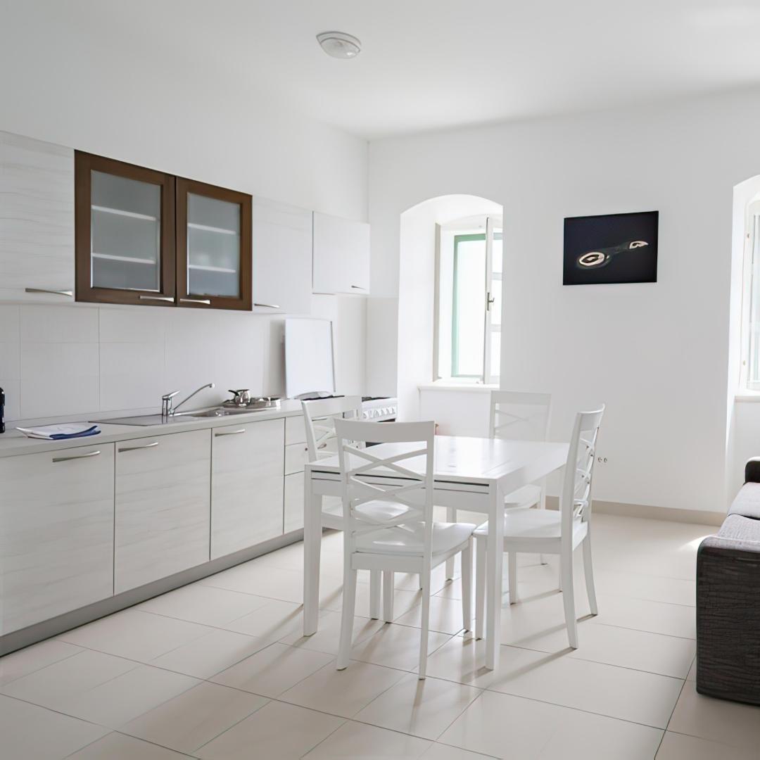 The Tajer lighthouse was built in 1876, and is actually one fairly large stone building connected with a monumental iron tower by a 200 foot long corridor. The building yard is very spacious, around 1200 square feet. Both apartments offer splendid panoramic view of Kornati islands, Long Island and immense ope sea.