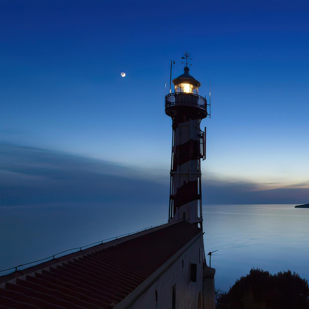 The lighthouse tower was made in France and is the only iron tower in the Adriatic Sea. It took builders several months to bolt and weld it together before the light could be lit. The master bedroom offers incredible view of the revolving light as You lie down.