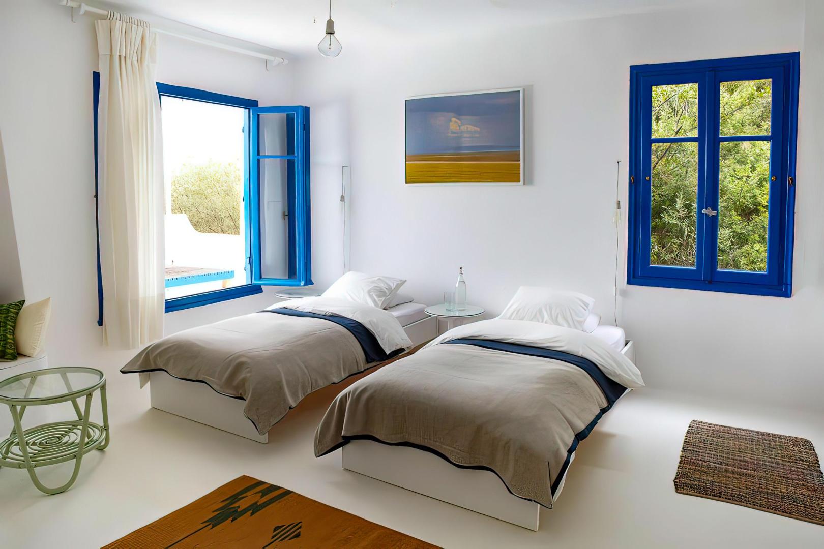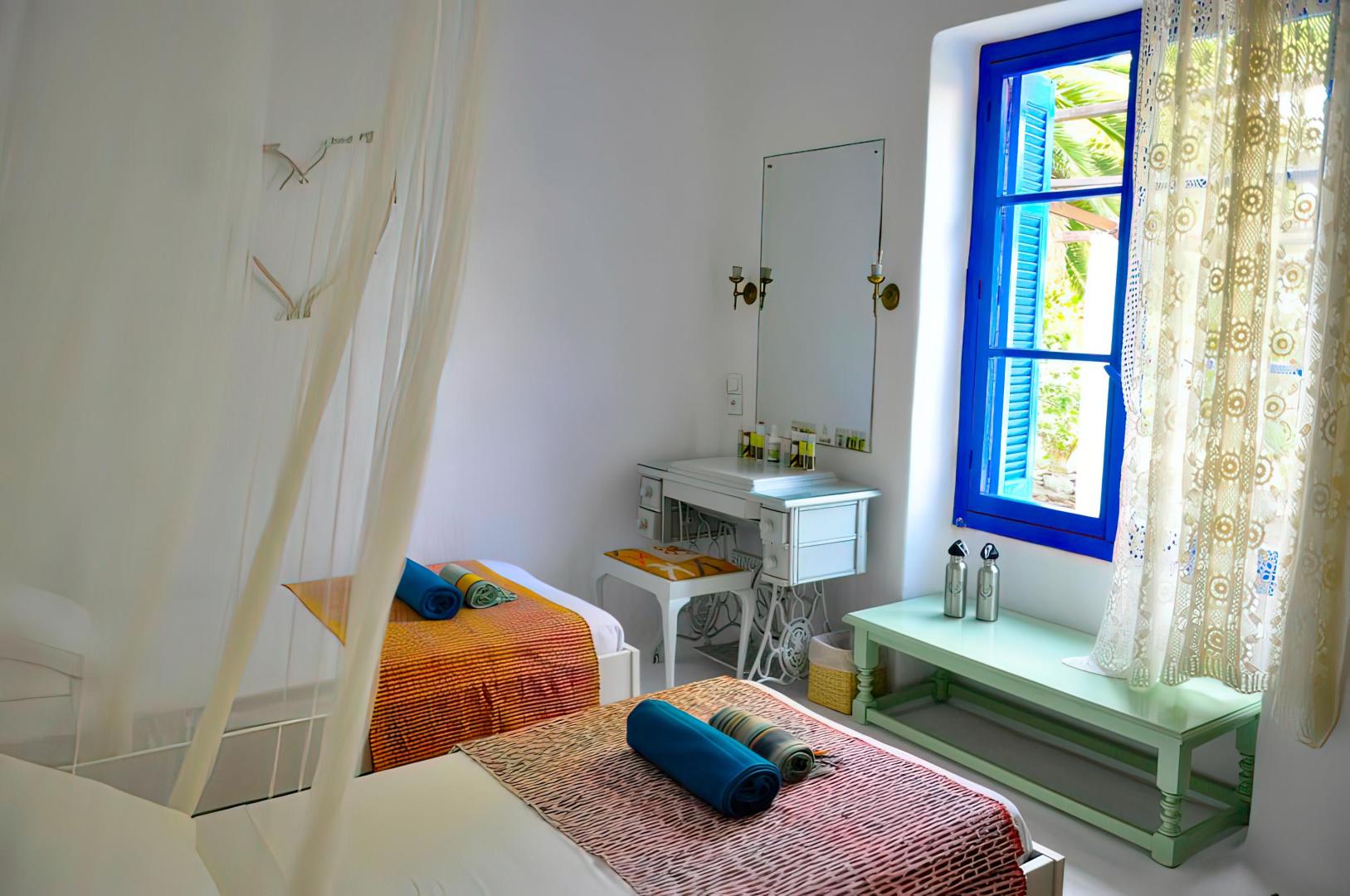 The island's accommodation consists of two beautifully renovated, traditional white washed, blue shuttered houses - the Main house, and the Villa. 5 twin rooms, with only space for 10 guests per retreat, making this an intimate and very personal experience.