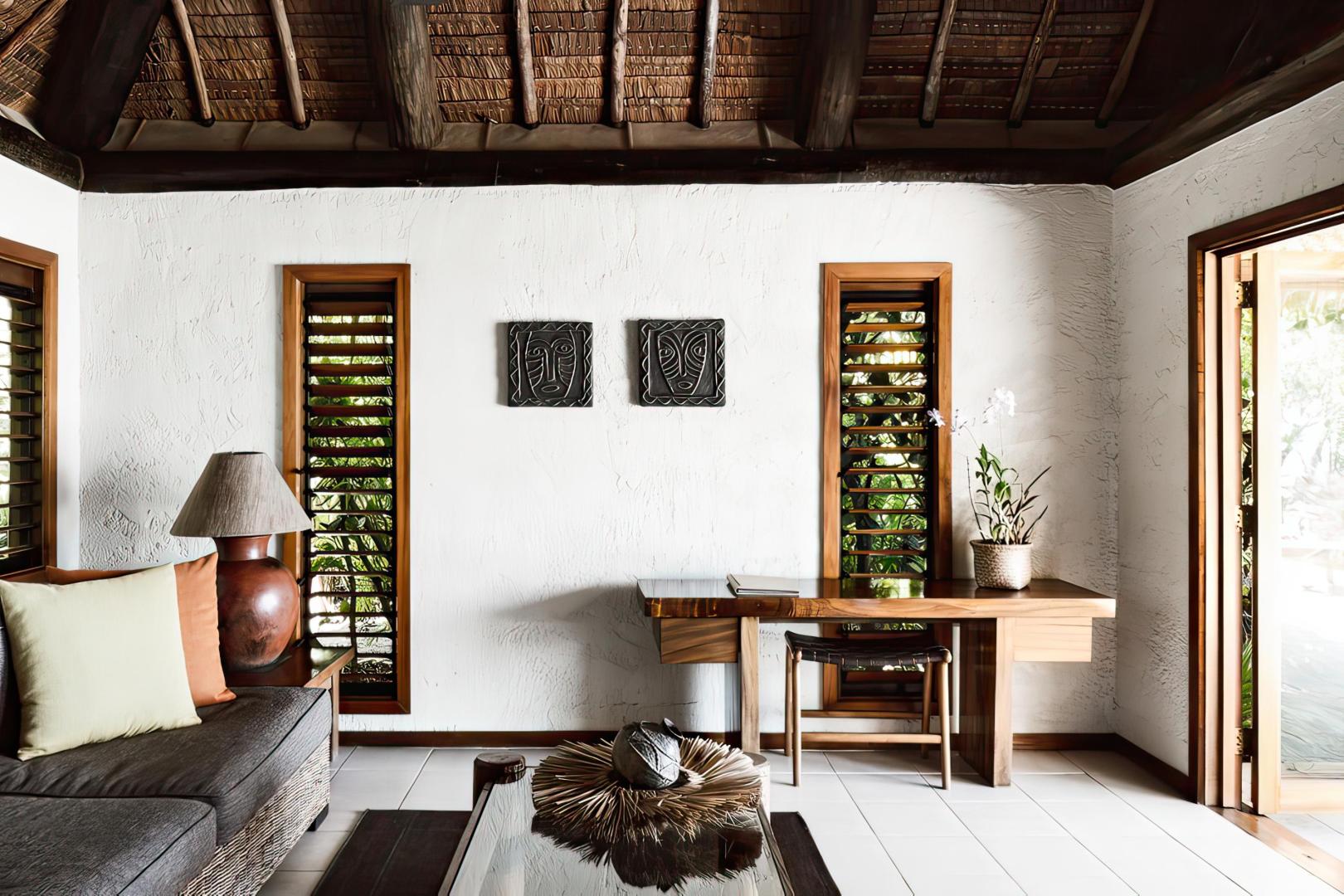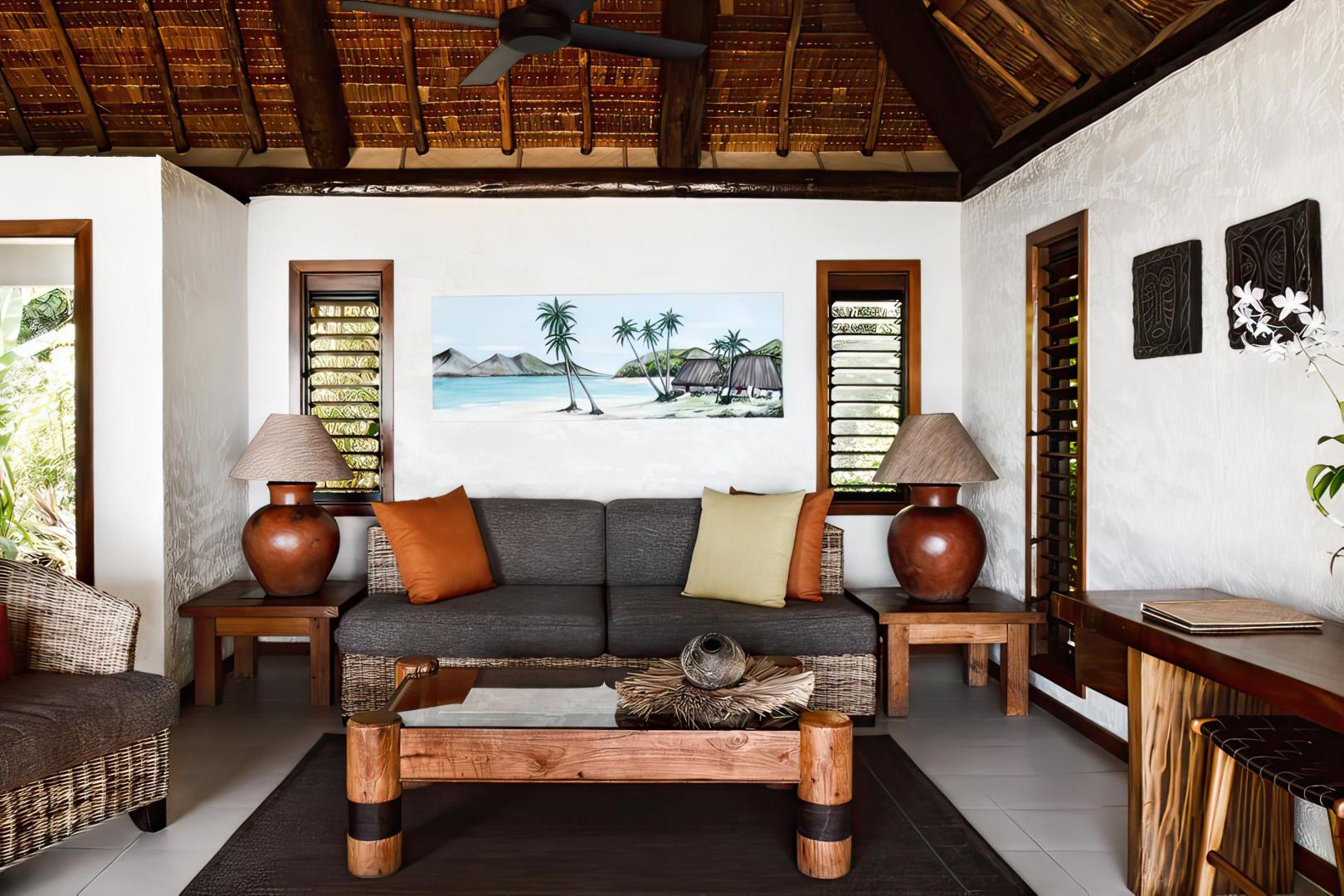 The thirty four bures and villas at Tokoriki are a magical combination of Fijian architecture and detailing with all of the modern luxuries and amenities expected in an upmarket experience. Your bure or villa is spacious, freestanding, air conditioned, and has its own private outdoor shower. All bures and villas are also equipped with coffee and tea making facilities, mini fridges, hairdryers, robes, iron & ironing boards, beach mats, ceiling fans and in-room safes.