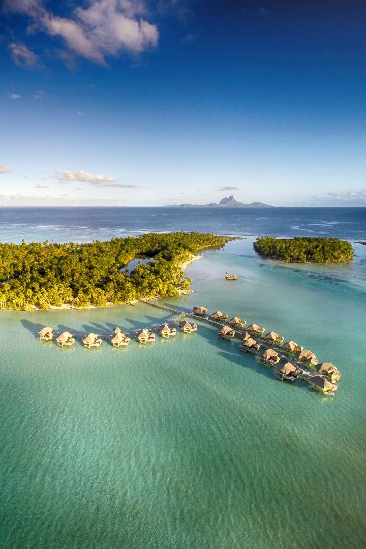 Located on the secluded Motu Tautau, facing the island of Taha'a on one side and the most perfect view of Bora Bora on the other side, the resort inspired by Polynesian architecture and style hosts 57stunning suites and villas, 3 restaurants, a spa and well-being haven, a Fitness center, a tennis court, an open air swimming pool, and a helipad.