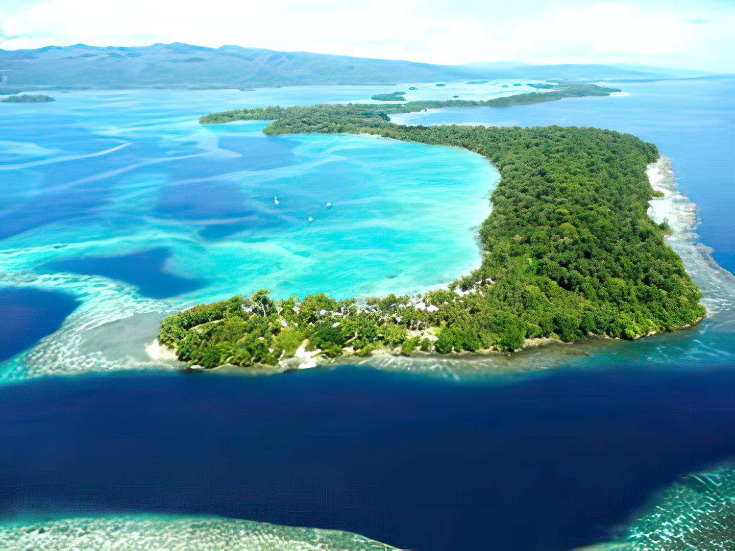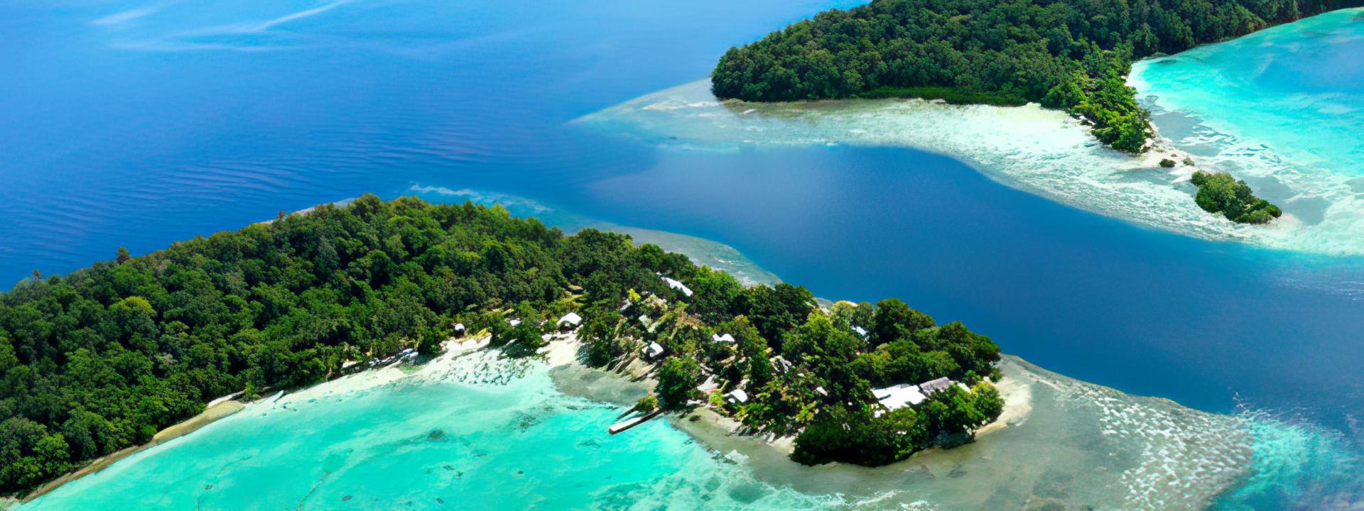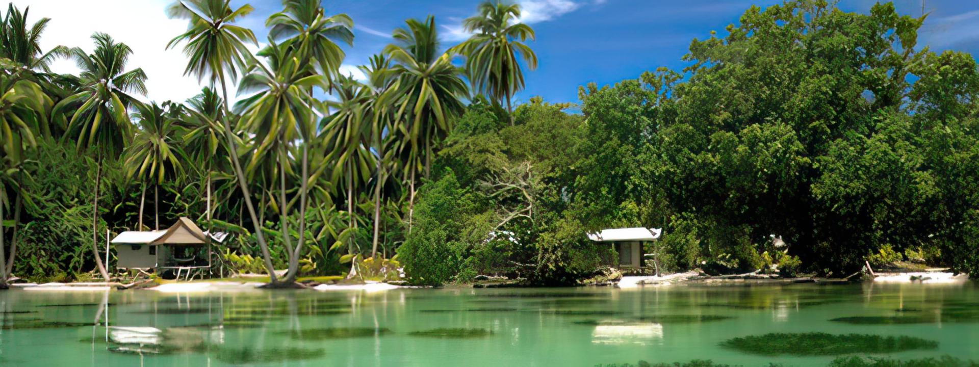 Uepi island is a barrier reef island, covered in a lush tropical rainforest, defined by fringing reef and sandy beach; flanked by the warm waters of the lagoon on one side, and the oceanic depths on the other.