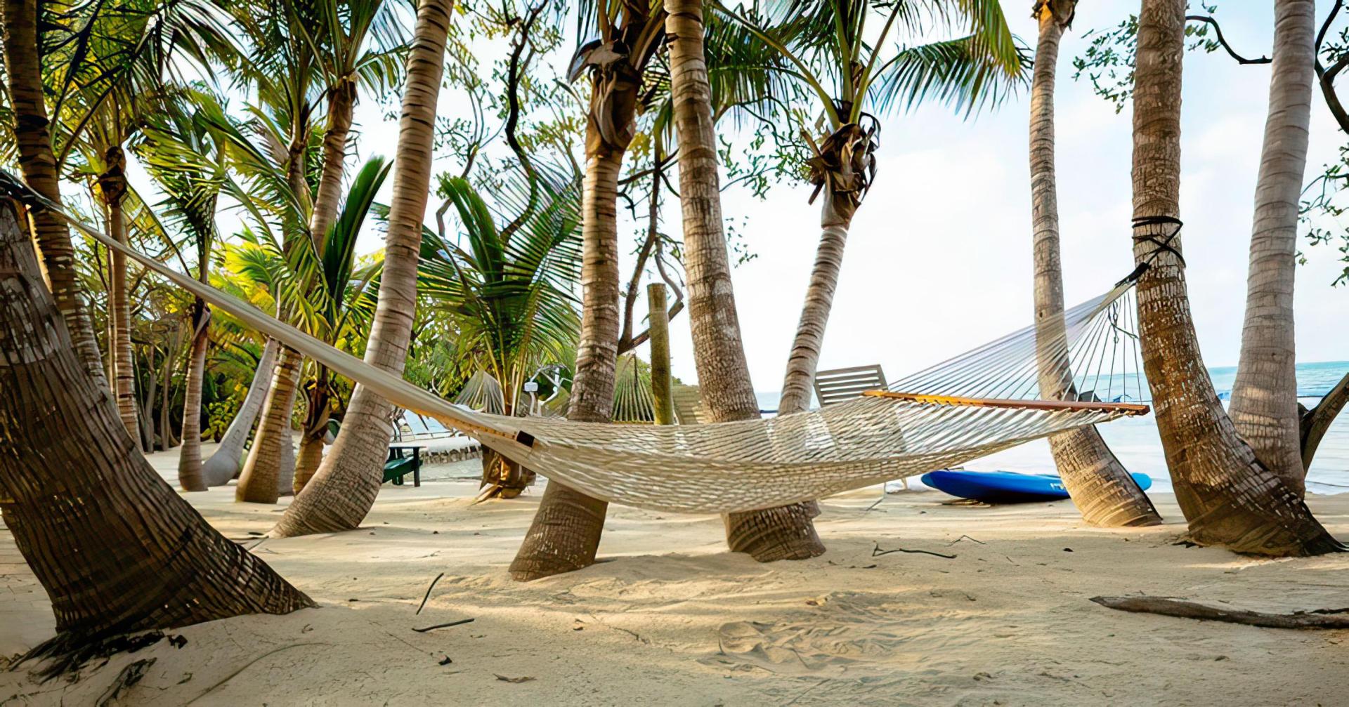 Hammocks and lounge chairs