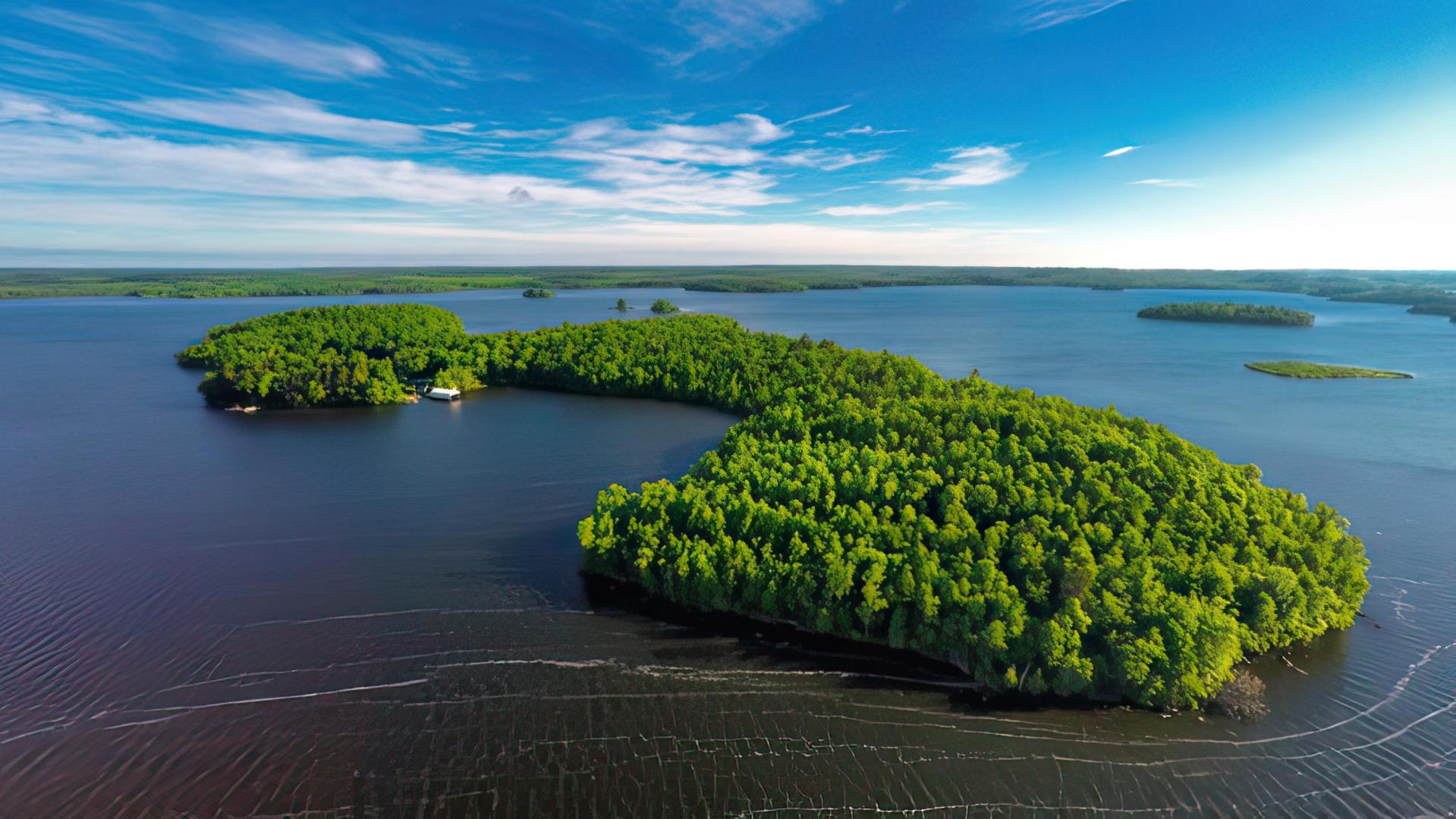 The island is 42 totally private acres, undeveloped and wild- explore the woods or cast a line off the dock. This is the only home on the island!! The 11,000 acre Pelican Lake is excellent for crappie and bass fishing, boating or water sports.