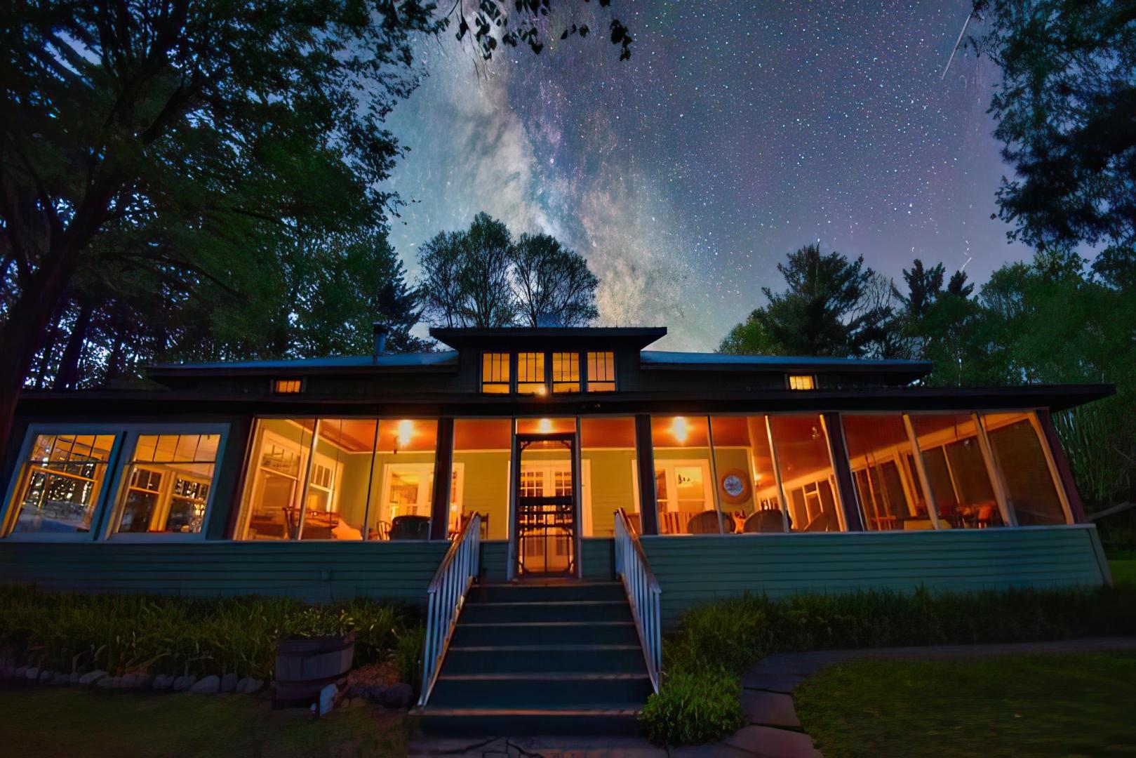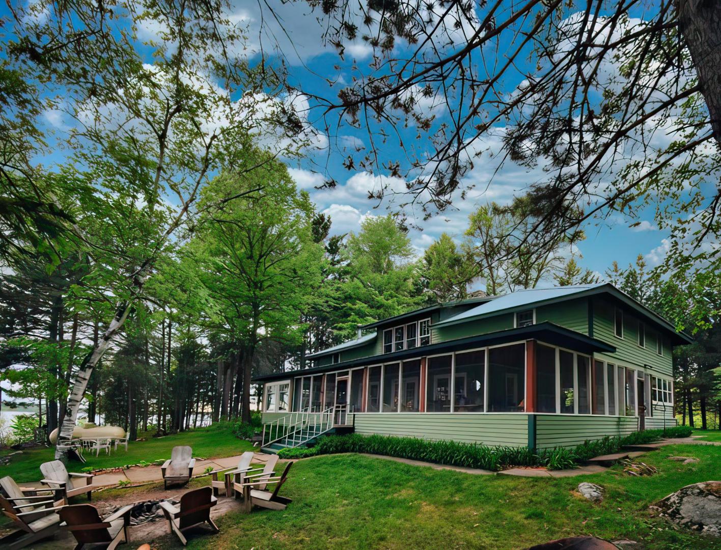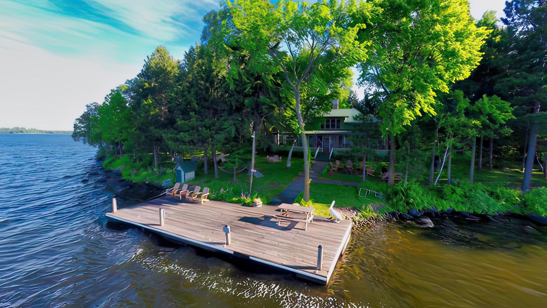 Strand Island is a private 42 acre island located on 11,000 acre Pelican Lake in Orr, Minnesota... 3 hours and 40 minutes from Minneapolis. The 108 year old fully remodeled main cabin has 8 bedrooms- each bedroom has it's own antique sink. There are 1.50 baths, a totally remodeled kitchen with two refrigerators and two freezers, a stone fireplace, a sunroom and a huge screened porch with card tables and 4 swinging beds suspended from the ceiling… There is also a sauna house with a shower, a washer and dryer and a 75 year old log cabin that sleeps four and has a card table.