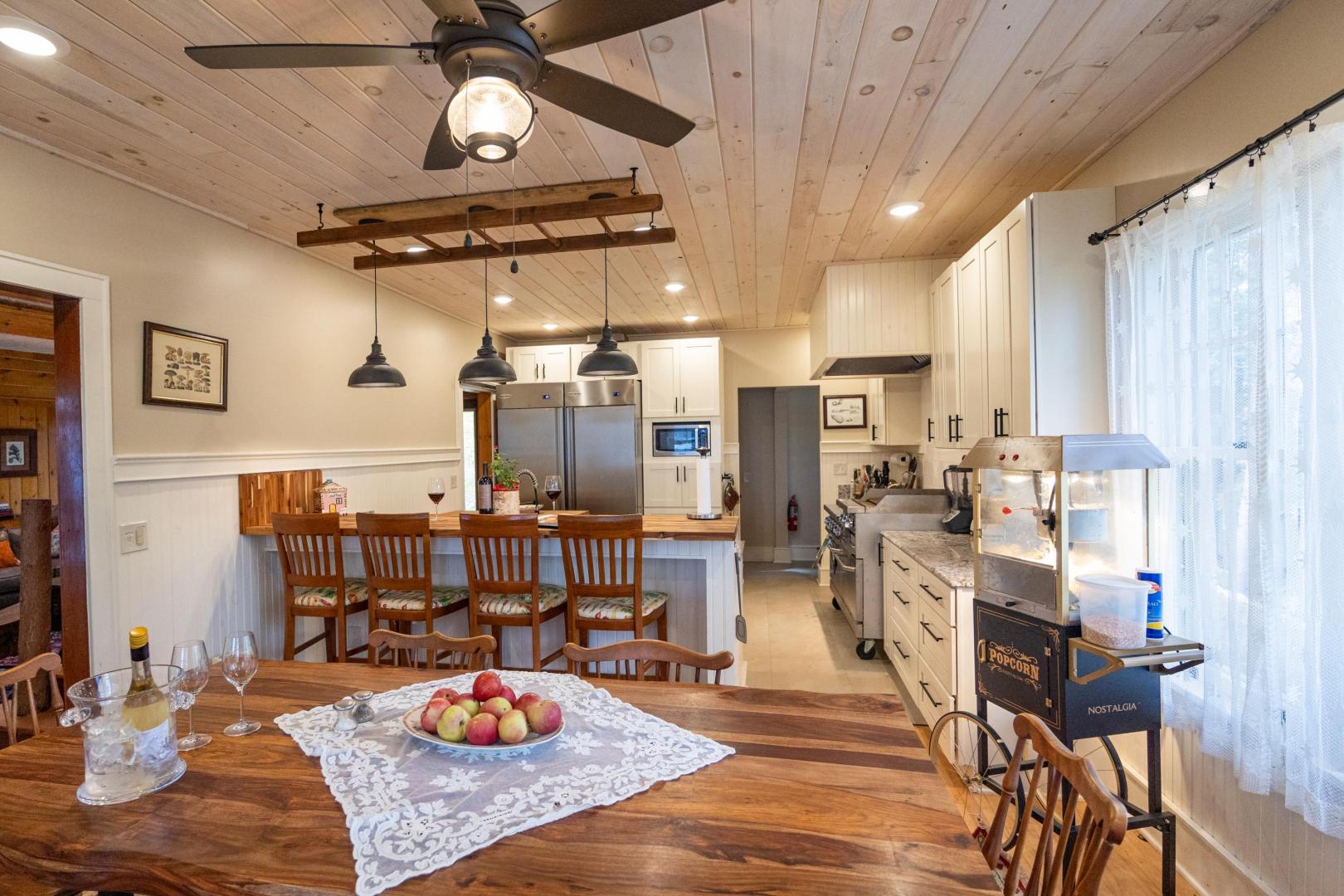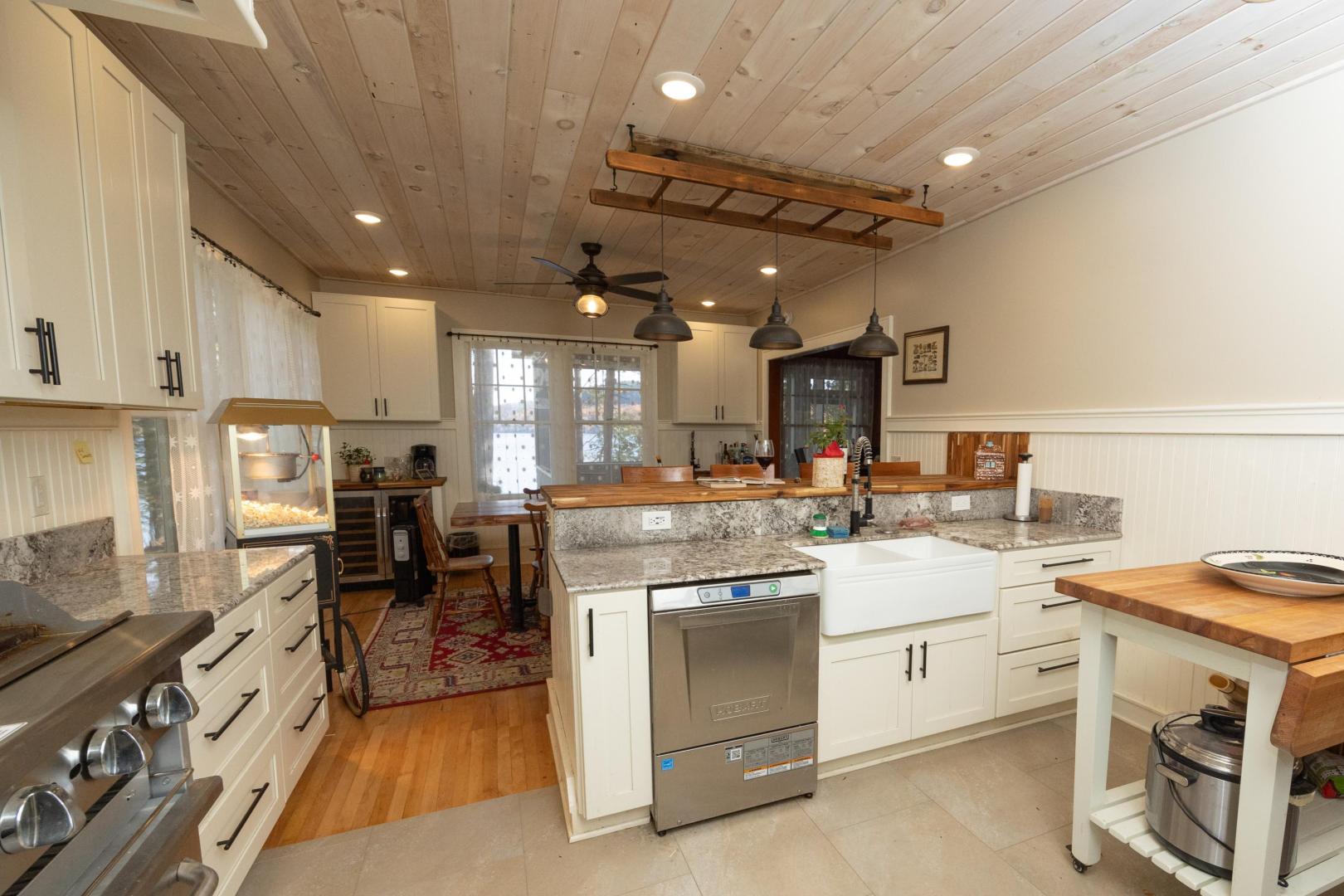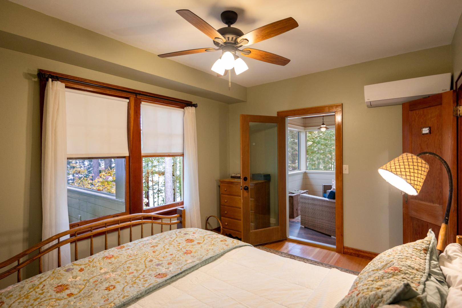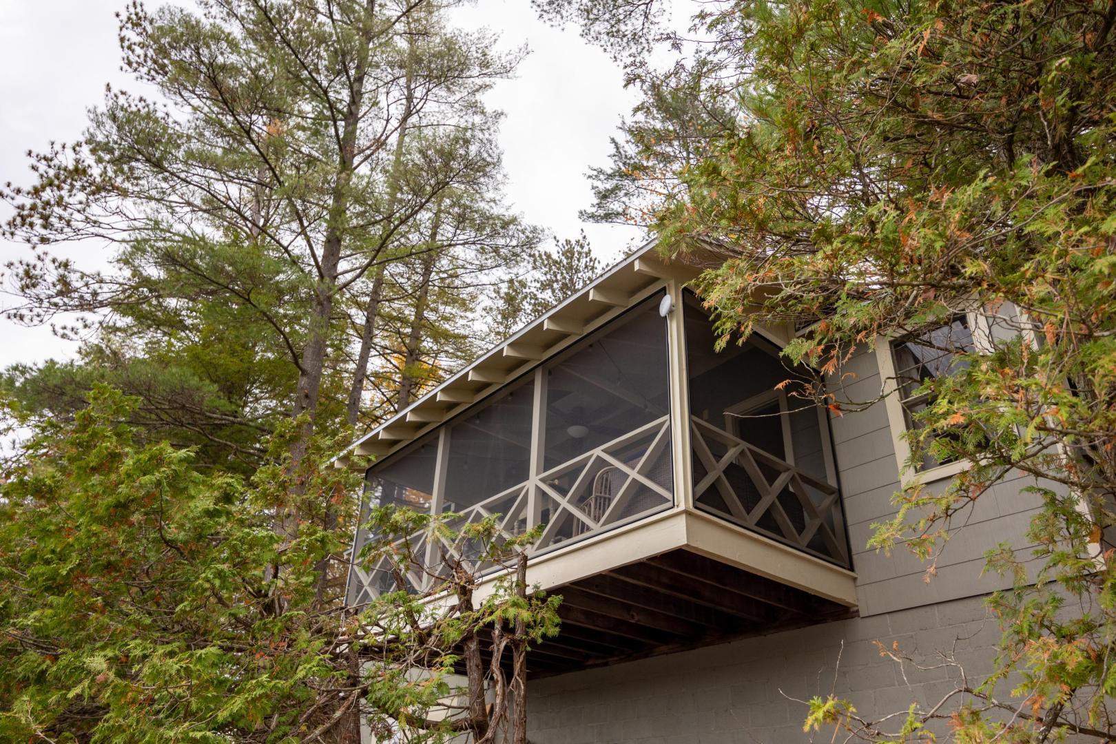 Ideal for a family getaway or group retreat, this six-acre private island rental property features a trio of accommodation options. Nestled within Brill Island’s pine, birch and maple trees is a six-bedroom, 4.5-bathroom main house with lakefront porch, cozy living room with fireplace, and open-plan dining room with chef’s kitchen. A charming two-bedroom, one-bathroom cottage has its own kitchen and fireplace and screened-in porch overhanging the calm waters. The main house and cottage have air conditioning and auxiliary heat, and there is wifi throughout the property. Two glamping tents with king-size beds share bath facilities in the Adirondack Barn where families can gather for evening entertainment, dinner seating, games and more —expanding the experience of immersing in nature without sacrificing comfort.