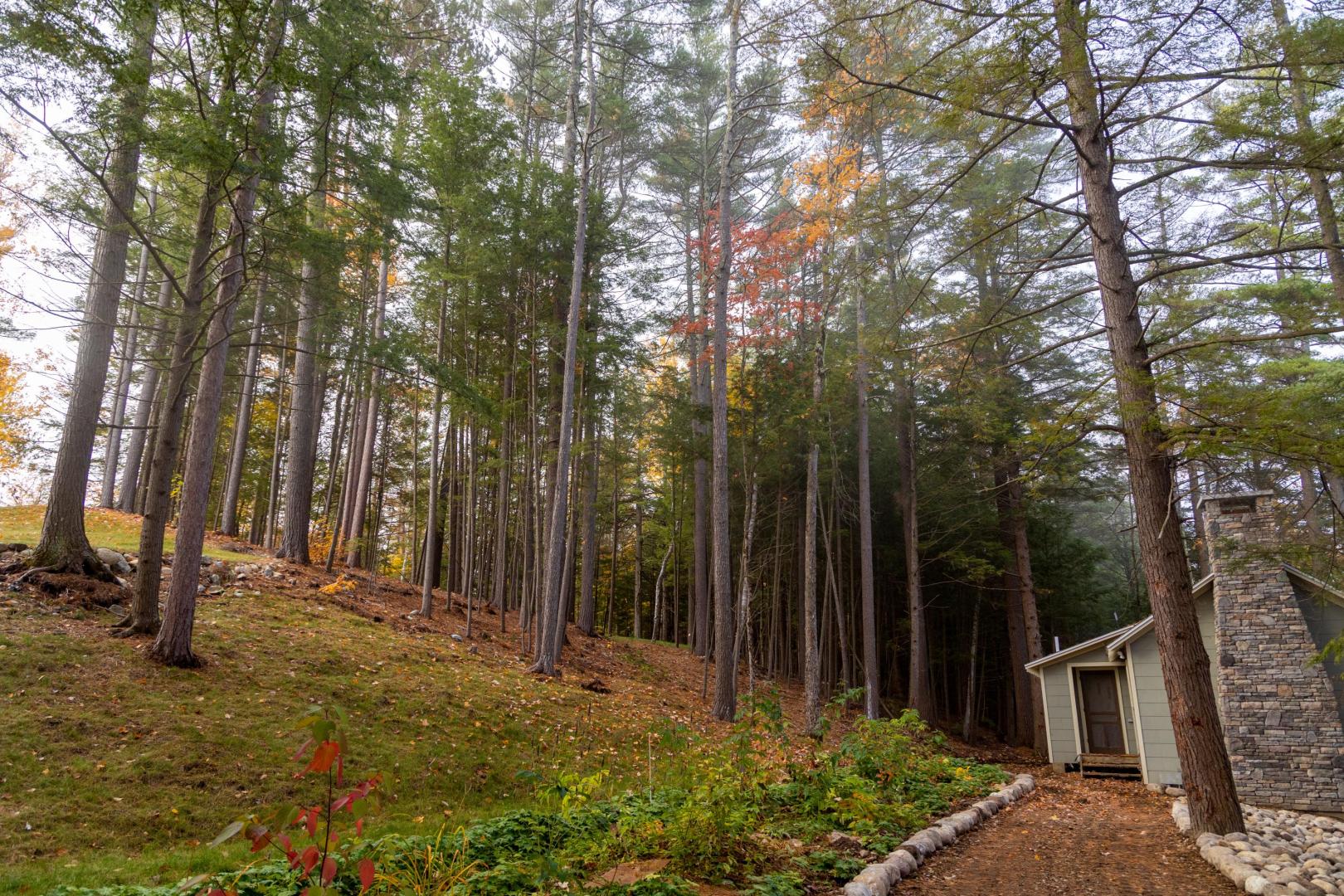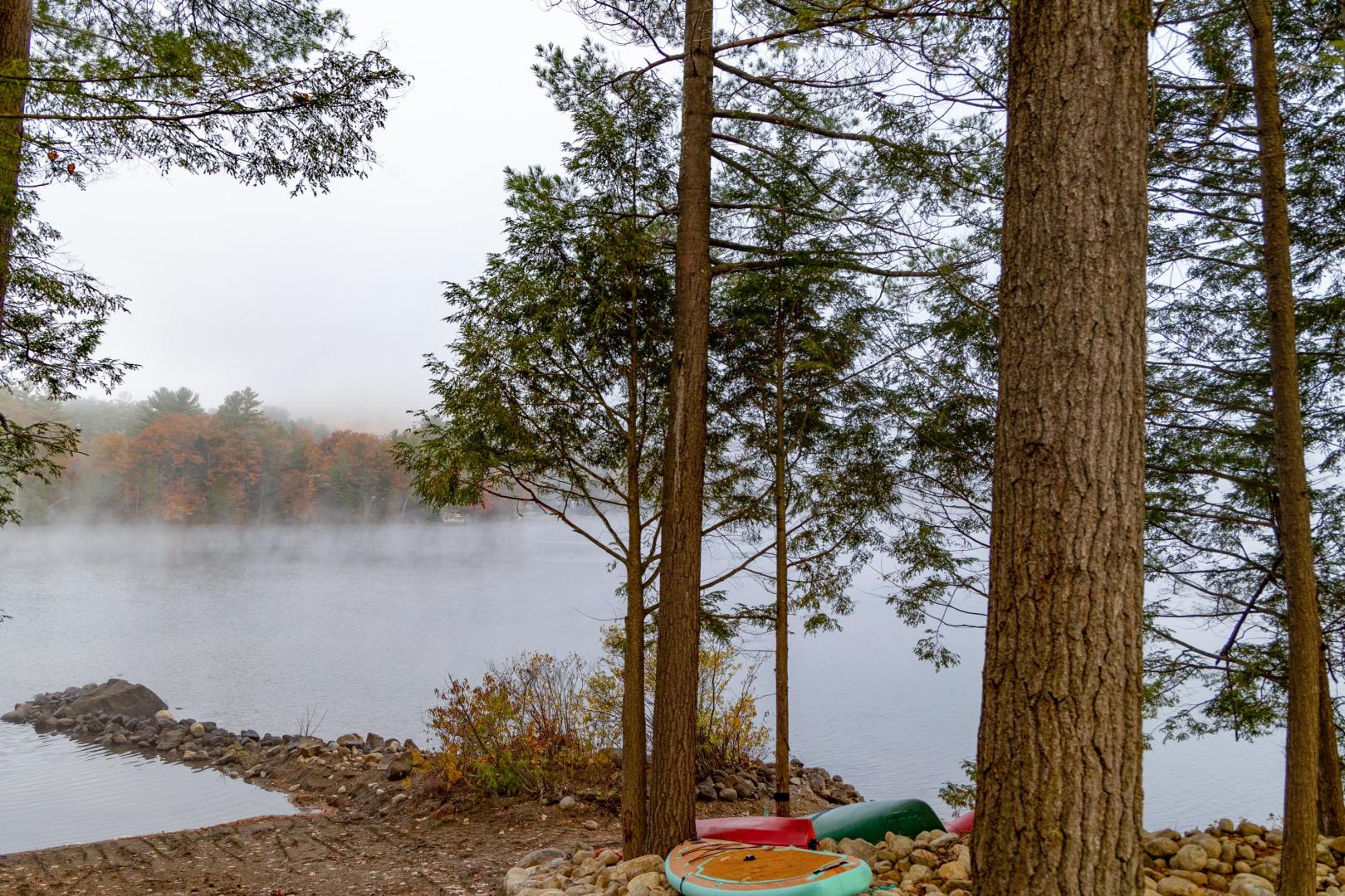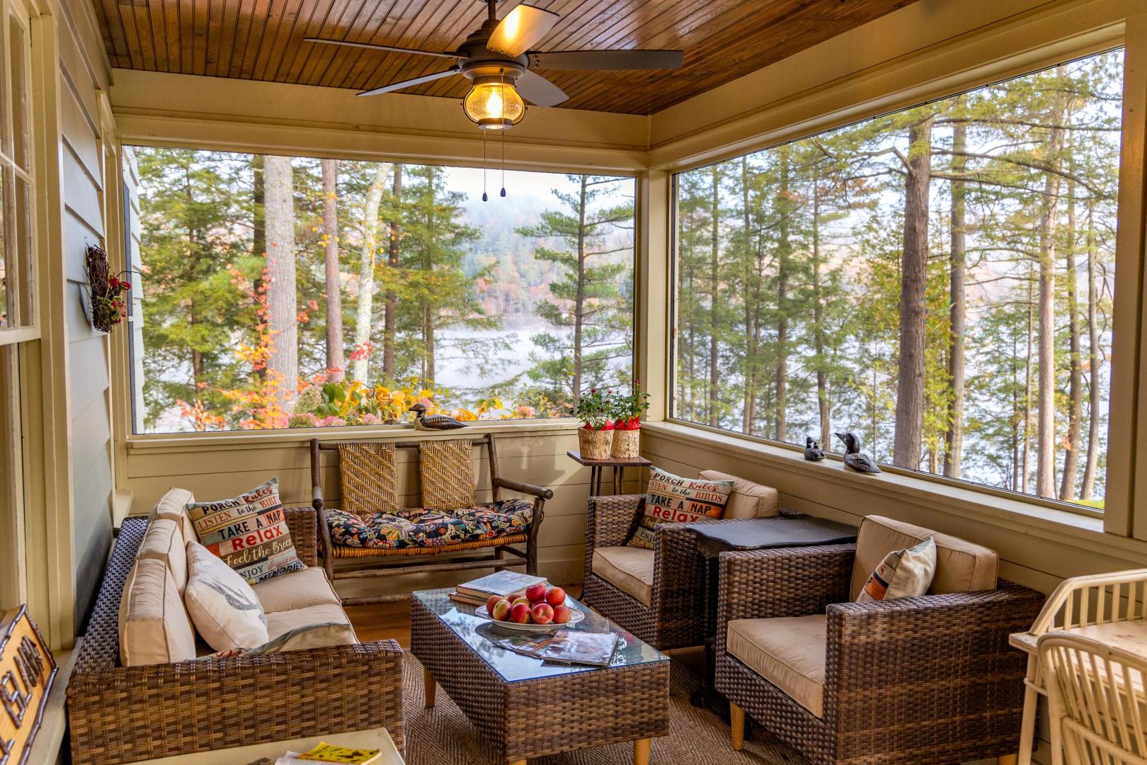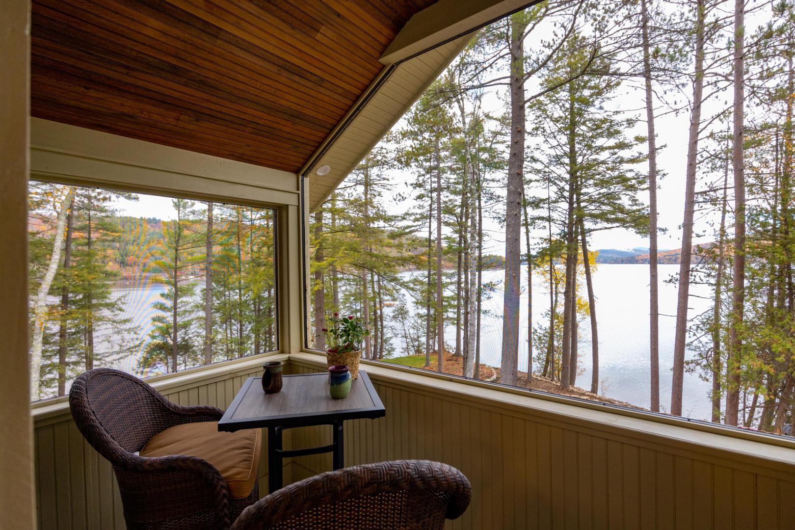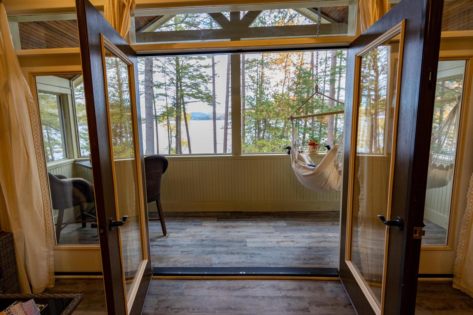 Beaches ring the island, providing easy entry points for swimmers, fishing for trout and salmon, or launching the kayaks and stand-up paddleboards that are included. A lakeside firepit looks to the north, walking trails weave through the island’s interior, and lawn games like bocci and cornhole are available. An on-site manager can assist with boat transport and tours, ensuring there is never a shortage of activities. It’s only a five-minute boat ride to the mainland car park in Pottersville, N.Y., the jumping off point to explore scenic Schroon Lake town 10 miles north, with its swimming beach, hiking and biking trails, and delicious dining options. Lake Placid, Saratoga, and the Albany airport are no more than 75 minutes away. Conveniently located midway between New York City and Montreal, Brill Island opens the Adirondacks while giving visitors the privacy to bask in its beauty.