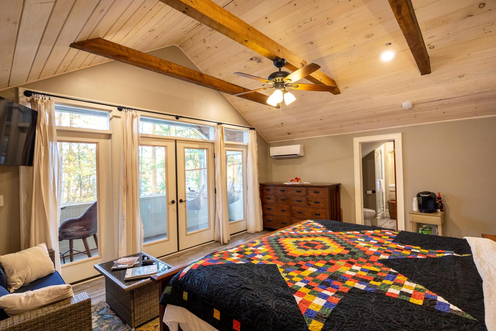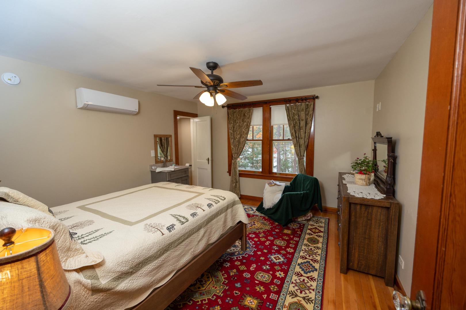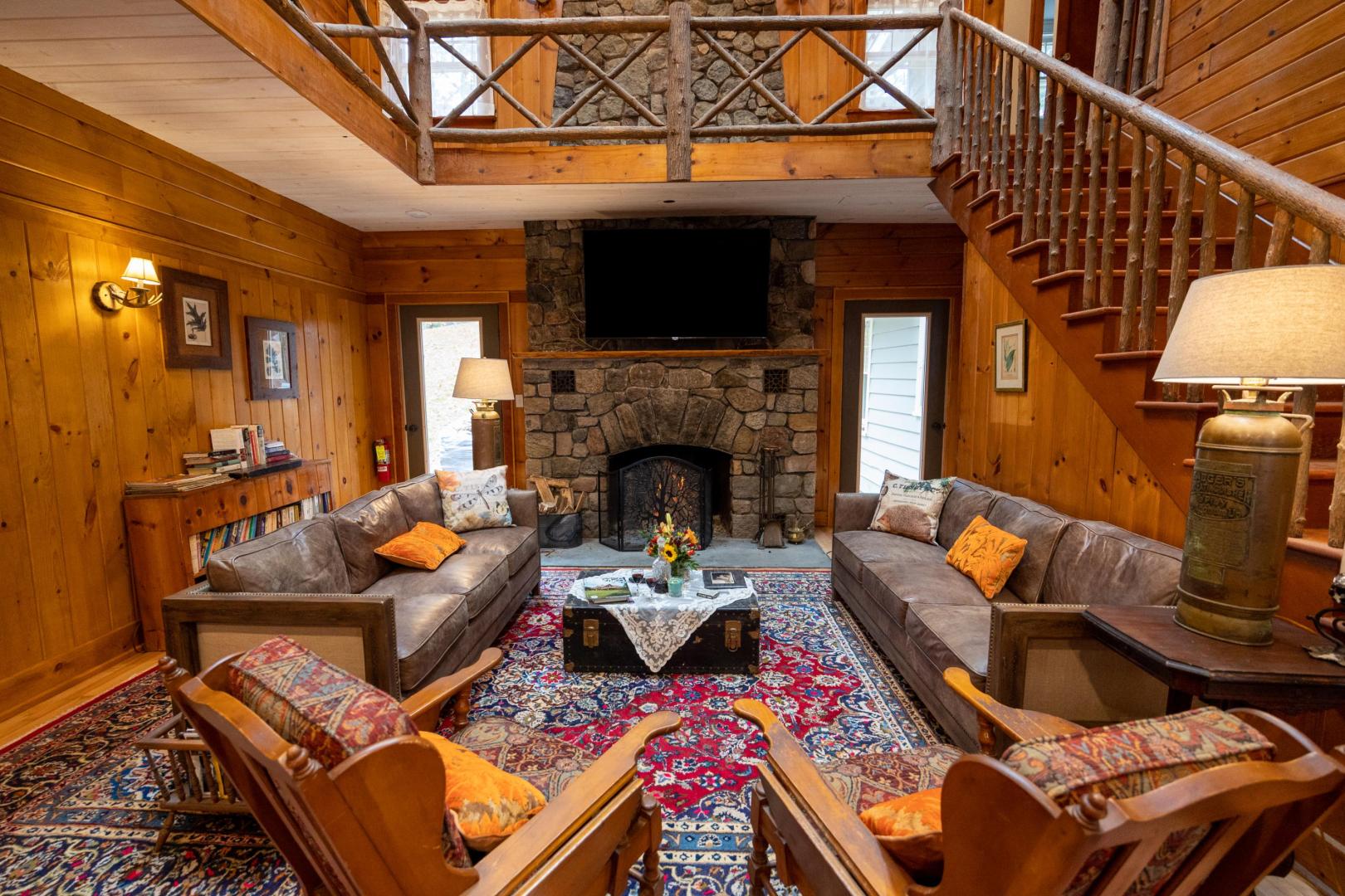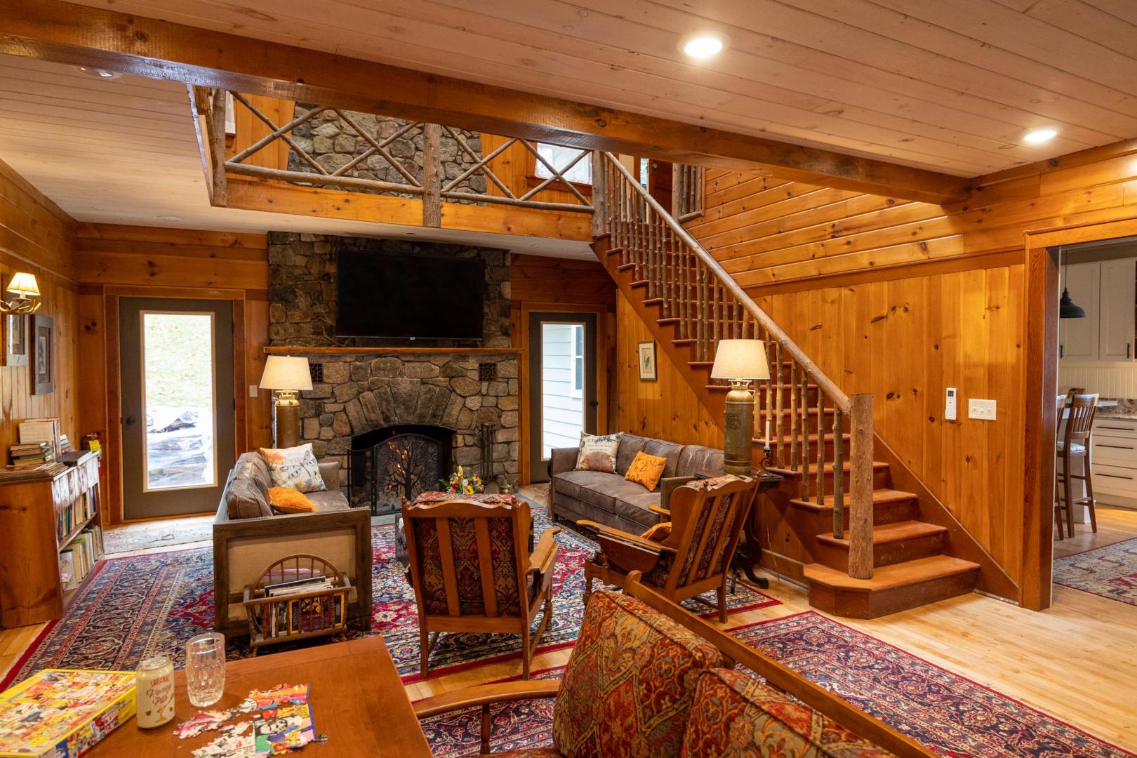 Beaches ring the island, providing easy entry points for swimmers, fishing for trout and salmon, or launching the kayaks and stand-up paddleboards that are included. A lakeside firepit looks to the north, walking trails weave through the island’s interior, and lawn games like bocci and cornhole are available. An on-site manager can assist with boat transport and tours, ensuring there is never a shortage of activities. It’s only a five-minute boat ride to the mainland car park in Pottersville, N.Y., the jumping off point to explore scenic Schroon Lake town 10 miles north, with its swimming beach, hiking and biking trails, and delicious dining options. Lake Placid, Saratoga, and the Albany airport are no more than 75 minutes away. Conveniently located midway between New York City and Montreal, Brill Island opens the Adirondacks while giving visitors the privacy to bask in its beauty.
