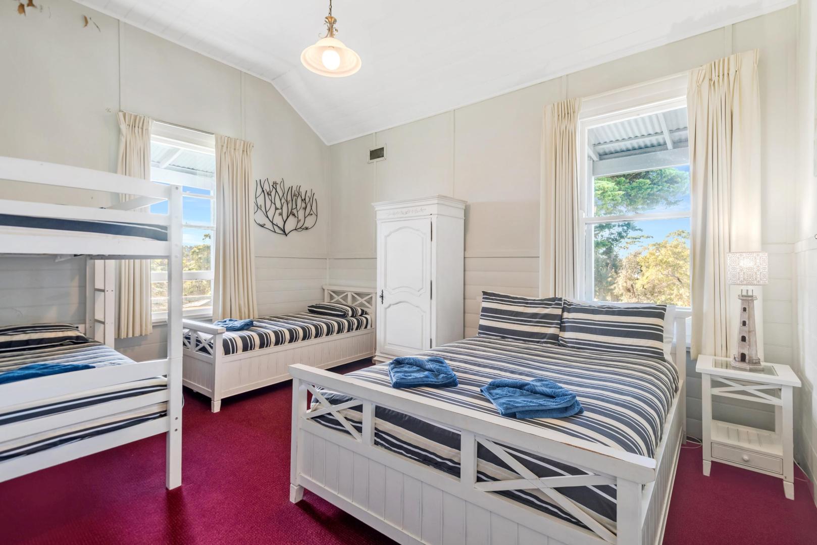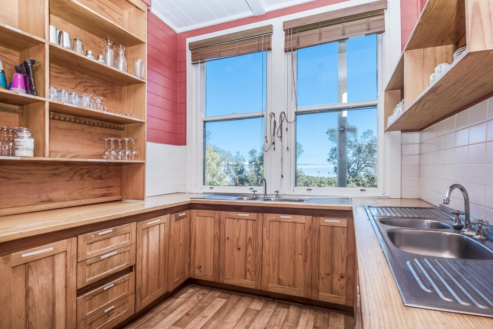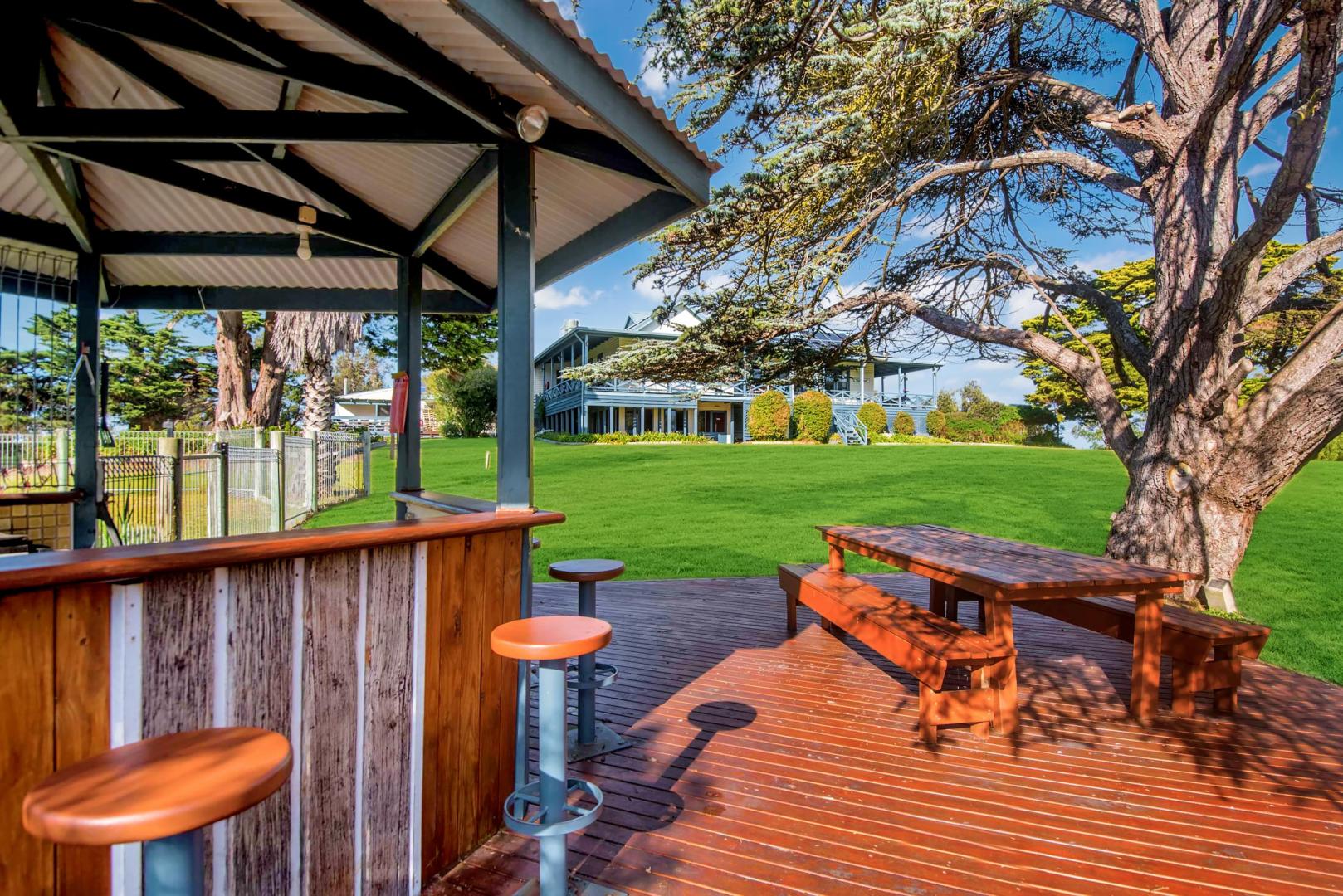 Rising up from within the manicured grounds, this classic century-old homestead embraces the beauty of a bygone era. Enriched with traditional charm, it boasts 11 bedrooms (two with private ensuites), male and female bathrooms, a grand dining hall to accommodate over 30 guests, wine cellar, refrigeration room, laundry and a kitchen fit to create a feast. Spanning 65 character-filled squares and trimmed with a wide verandah, it basks in stunning panoramas that stretch across the pristine greenery to the water’s edge.