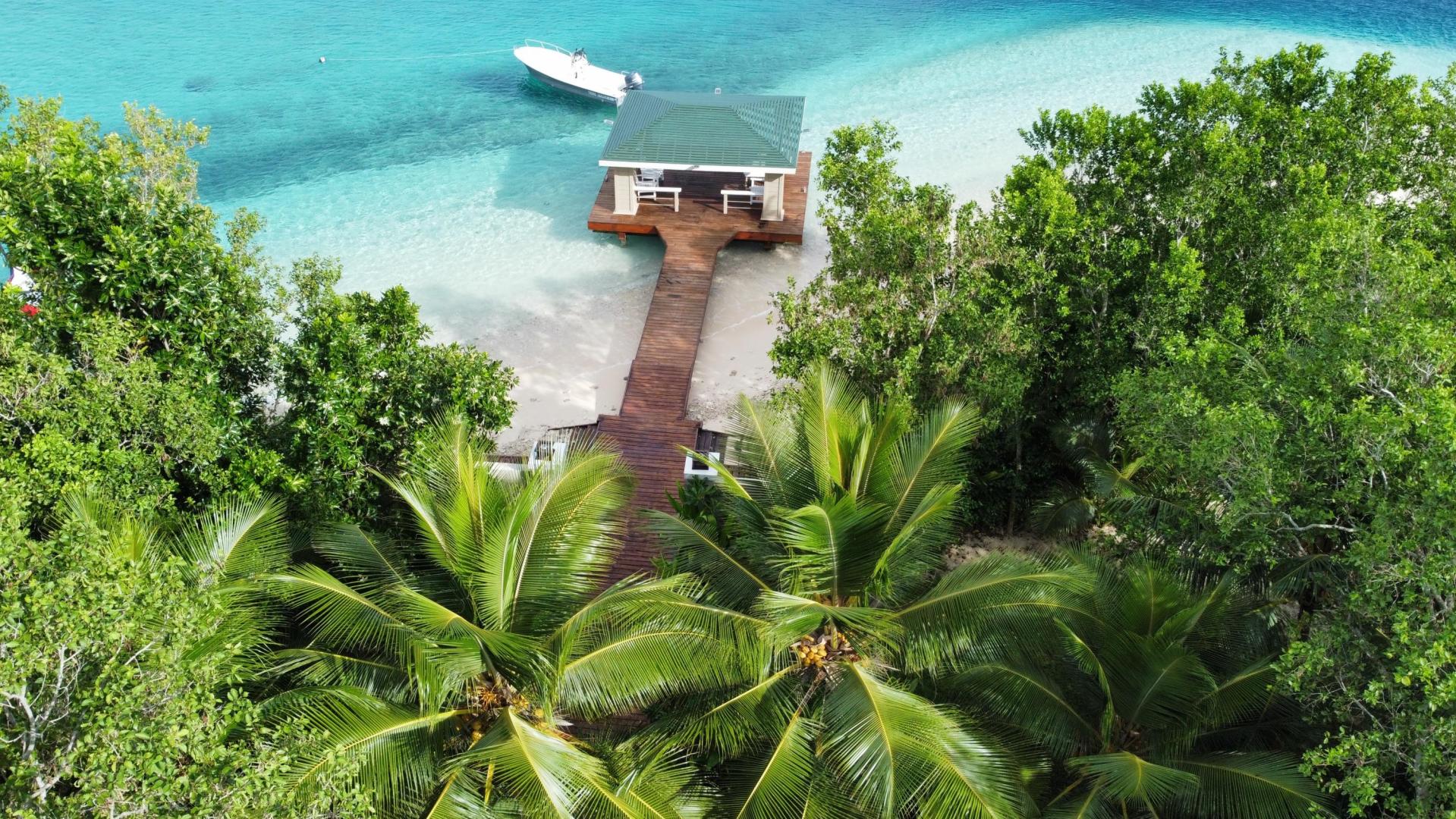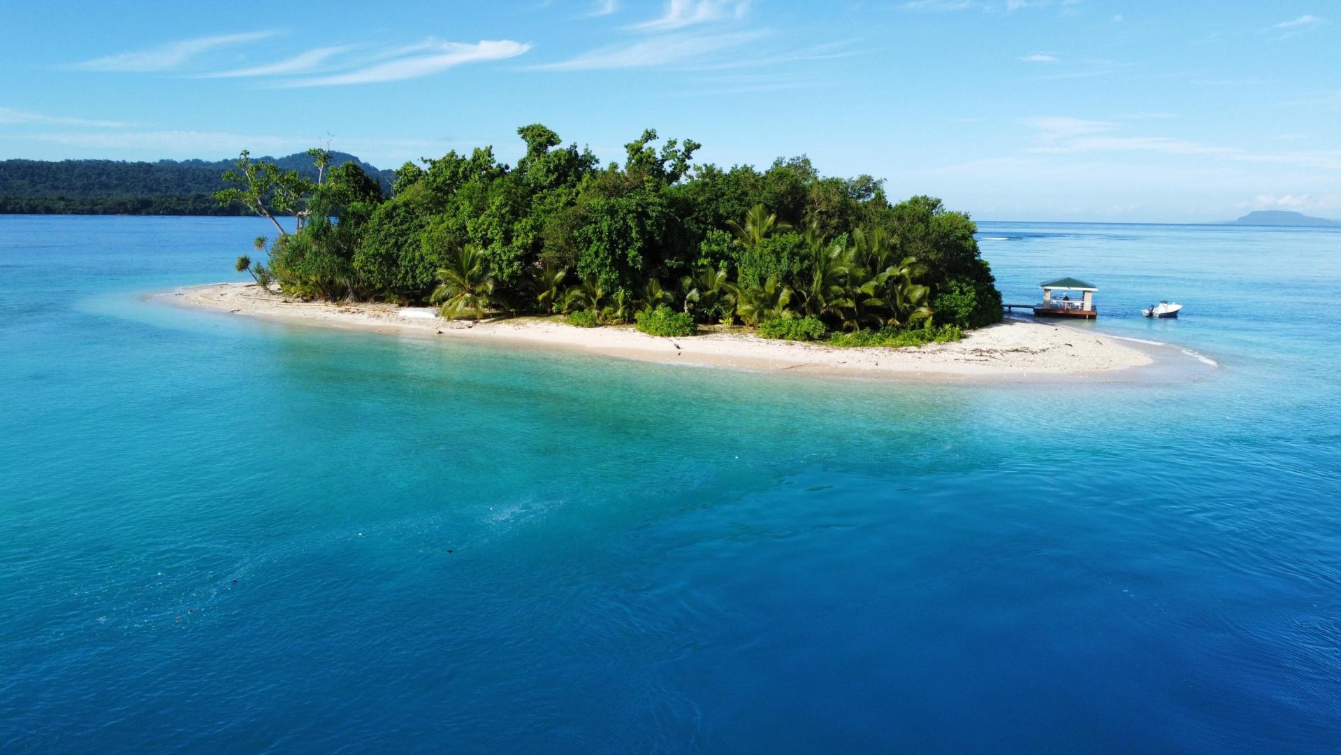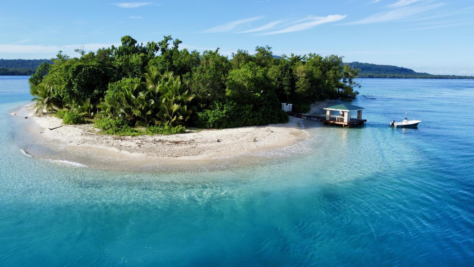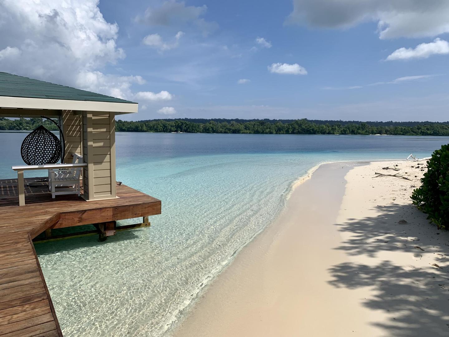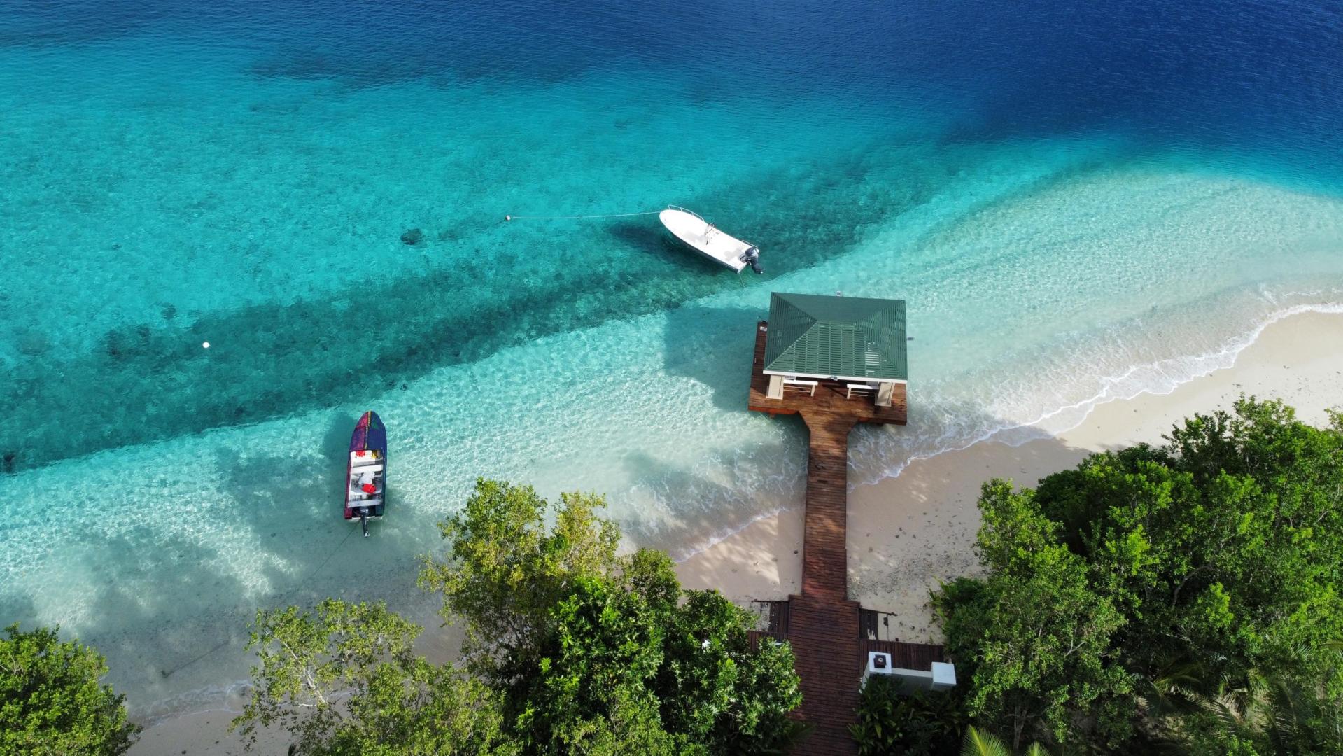 Surrounded by beautiful tropical waters yet quietly sitting in a broad passage between two large islands thus sheltered from deep ocean swells. Your own private sugary white sand beach nestles along the northern fringe adjacent to the quintessential private jetty where your boat is tied alongside.