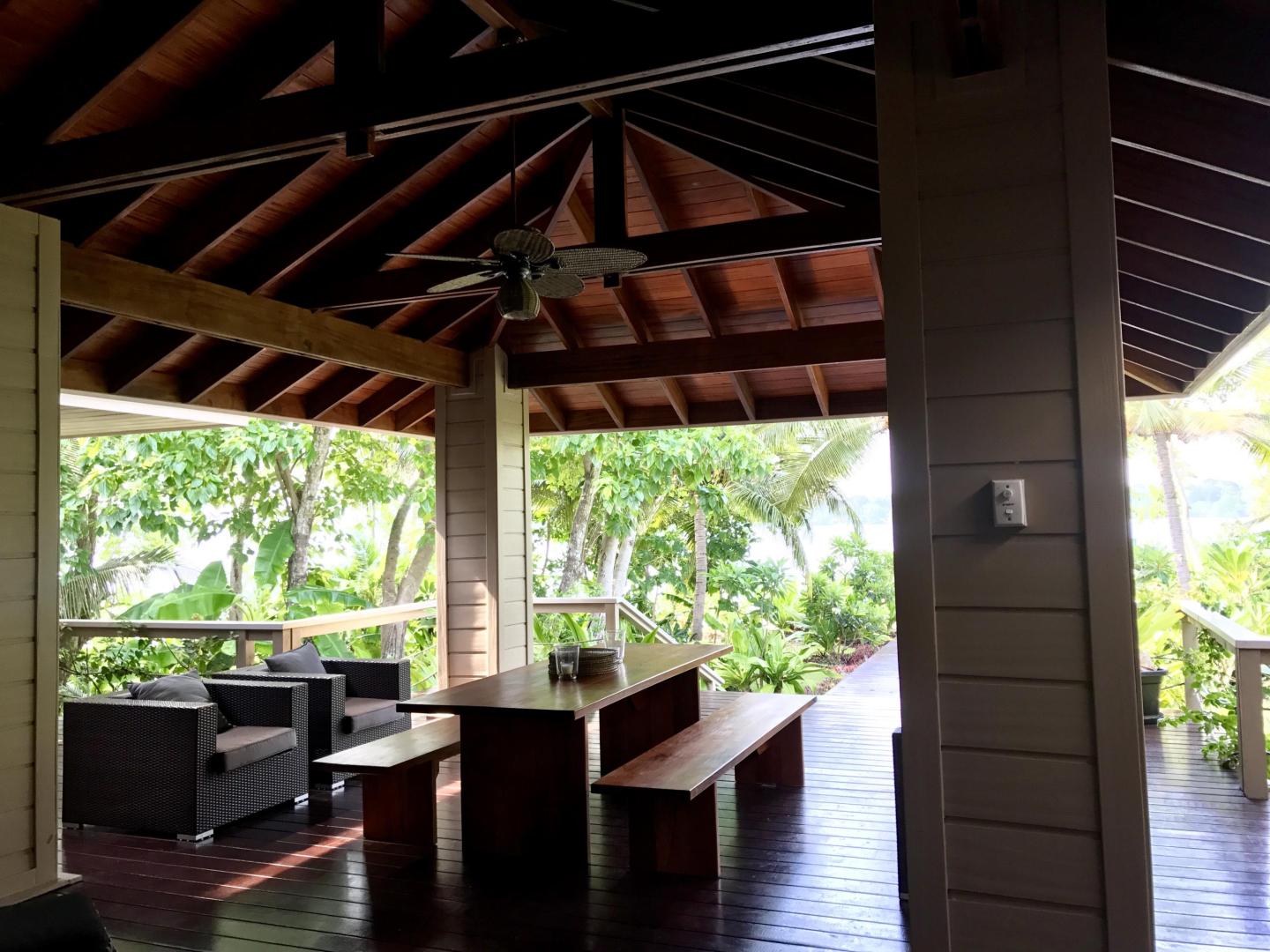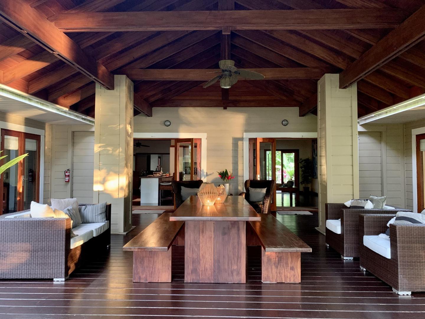 The home was lovingly designed using warm timber to maximise the natural beauty of the island and the environment, nestled as it is amongst lush tropical trees and shrubs interspersed with bountiful tropical fruit trees.