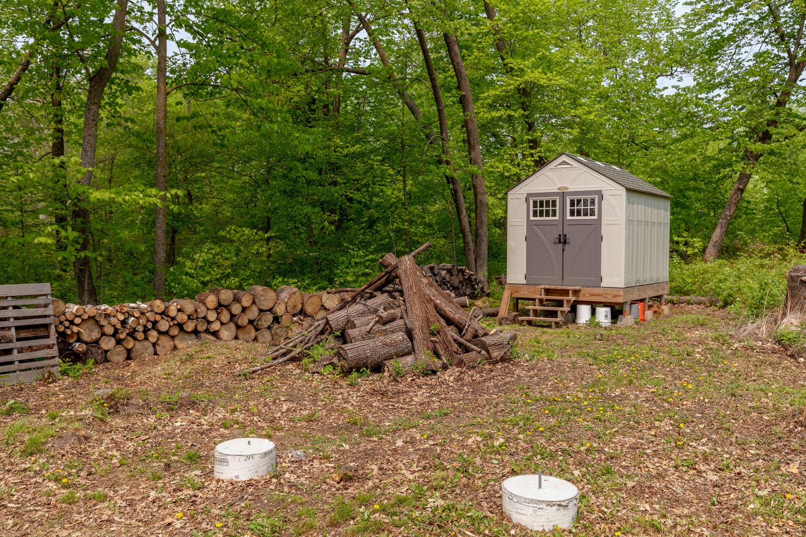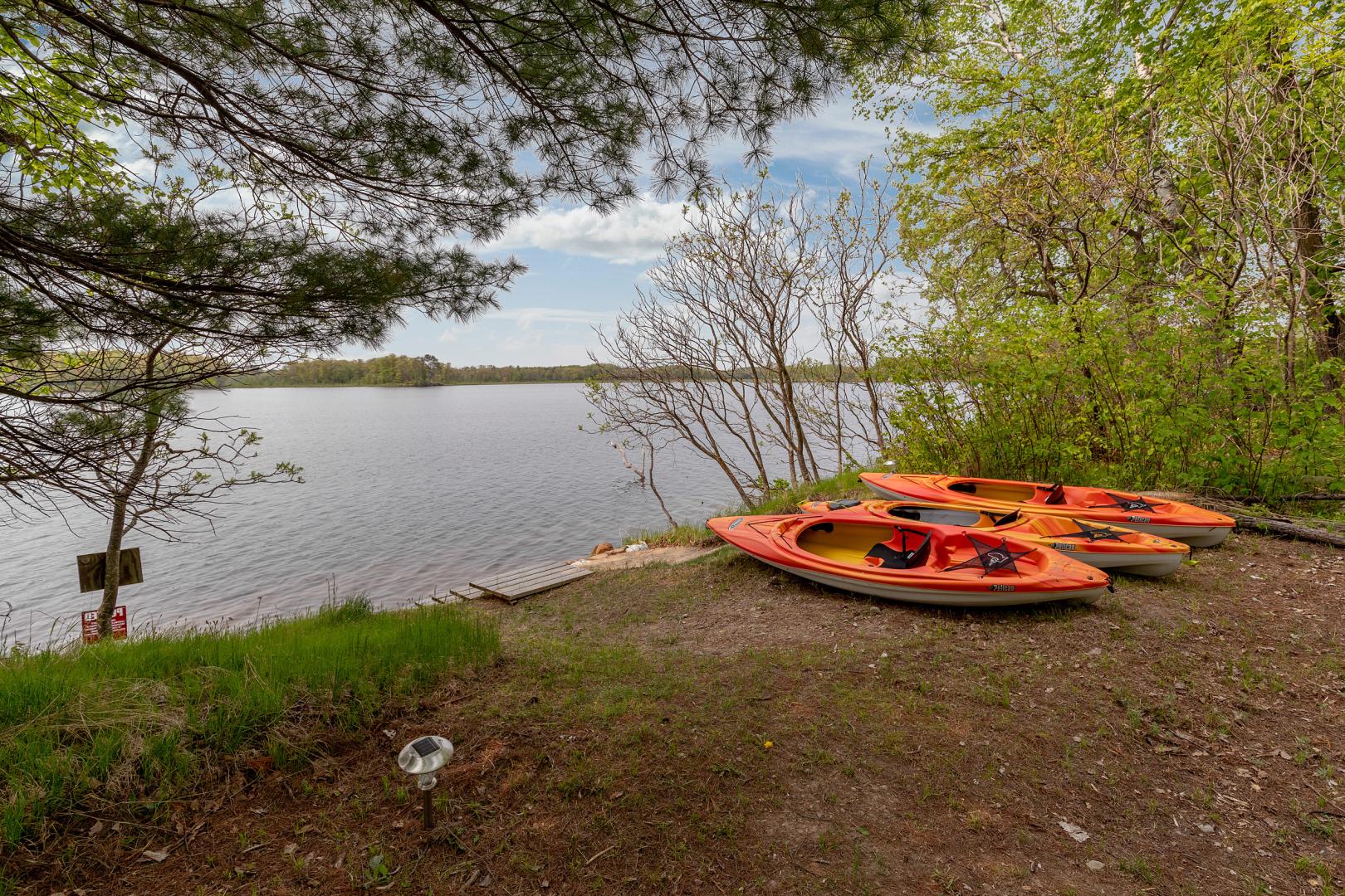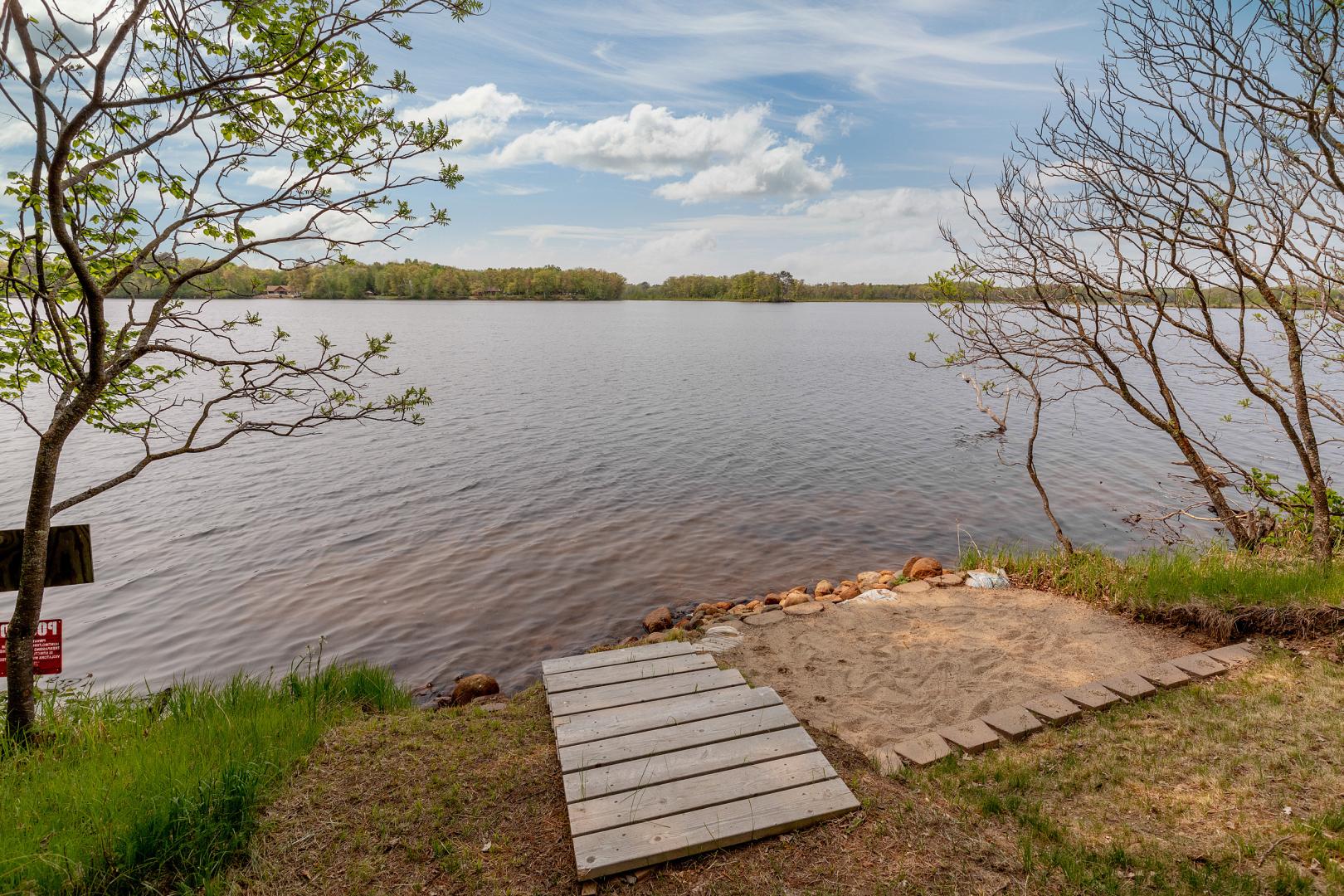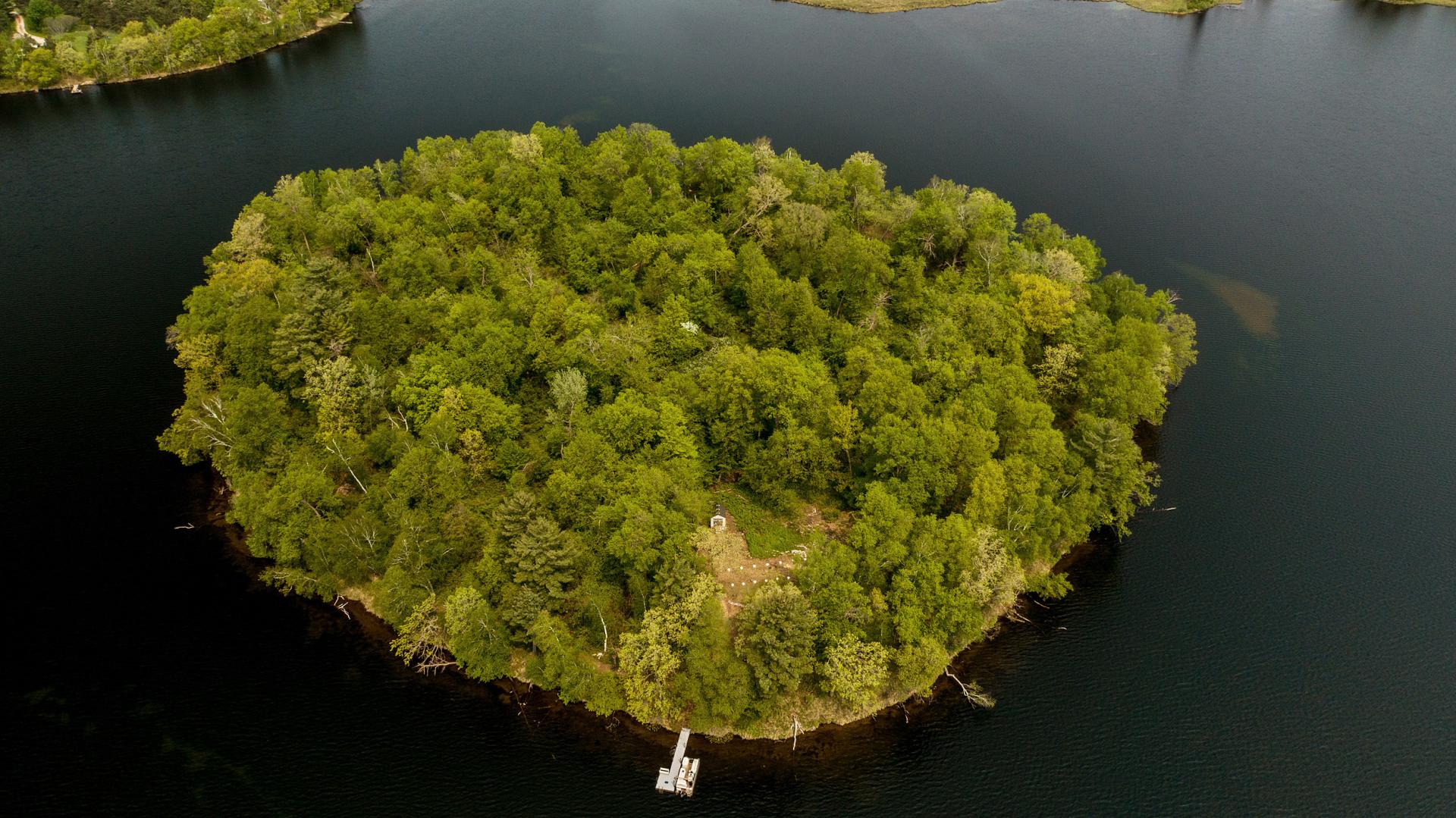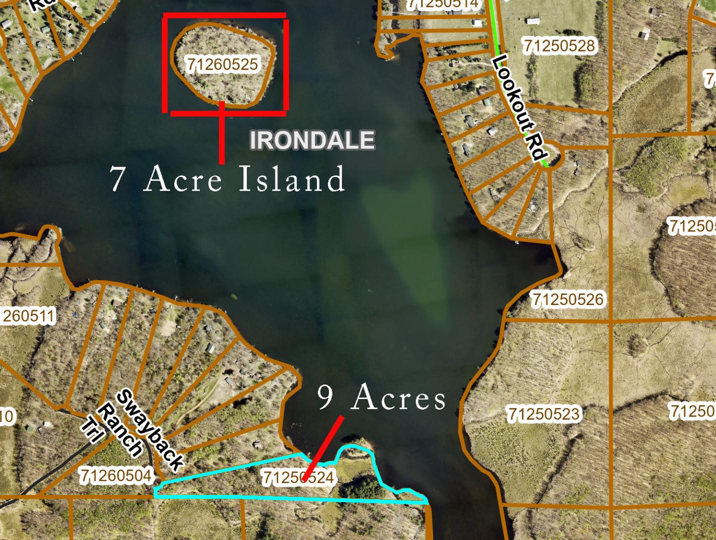 Private Island (7.71 acres) features clearing for camping or building (South facing), sandy beach area, walking paths, multiple access points, storage shed, fire pit/Approximately 2,000 ft of sandy and rocky lakeshore perfect for swimming & water activities. Clean, clear, extremely private spring fed lake with no public access/excellent fishing.