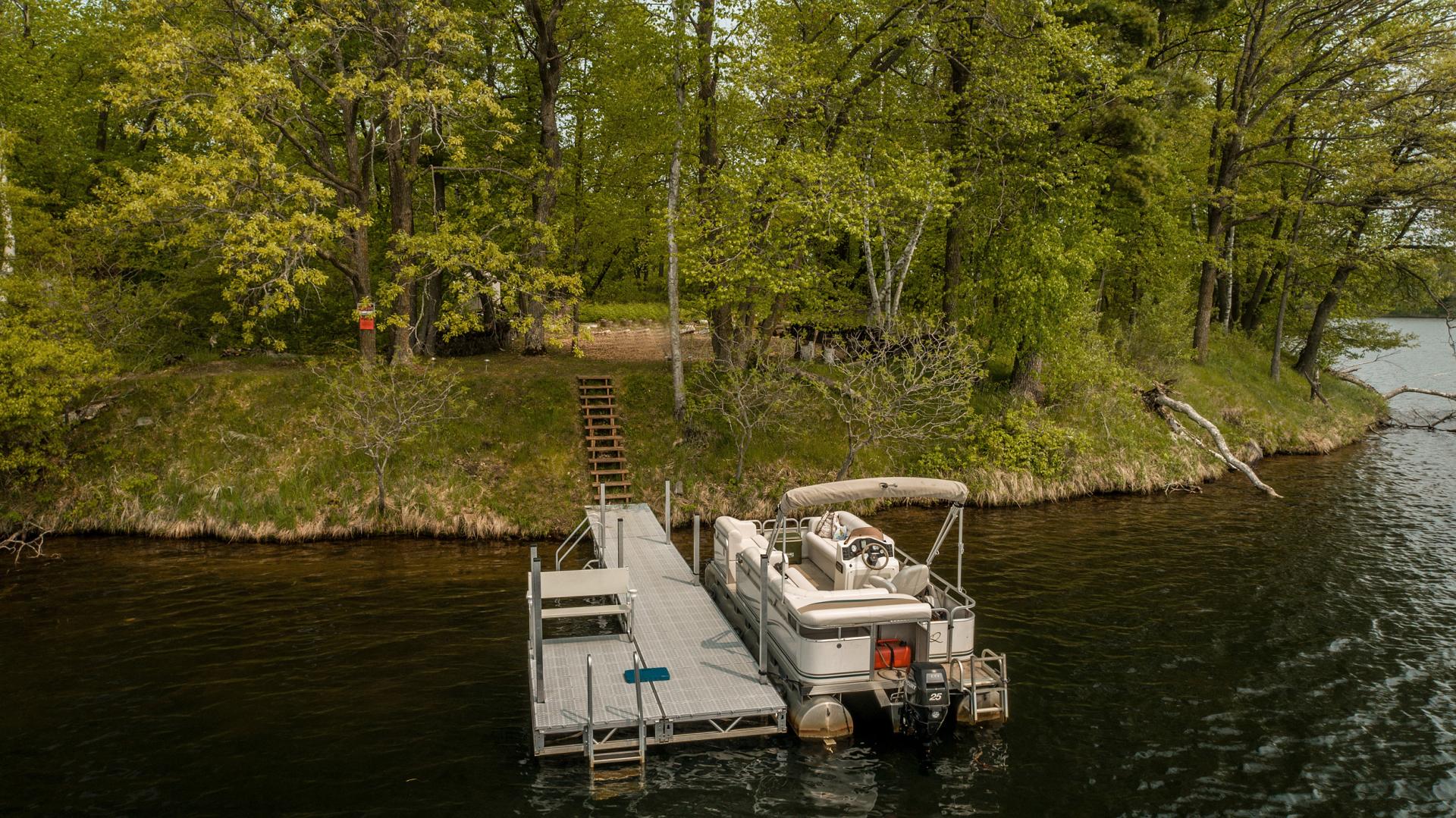 Mainland property (9.84 acres) features new private driveway, gate, private boat launch and large clearing in protected bay/Abundant wildlife/Large area of native Minnesota wildflowers/Approximately 1,500 ft of lakeshore.