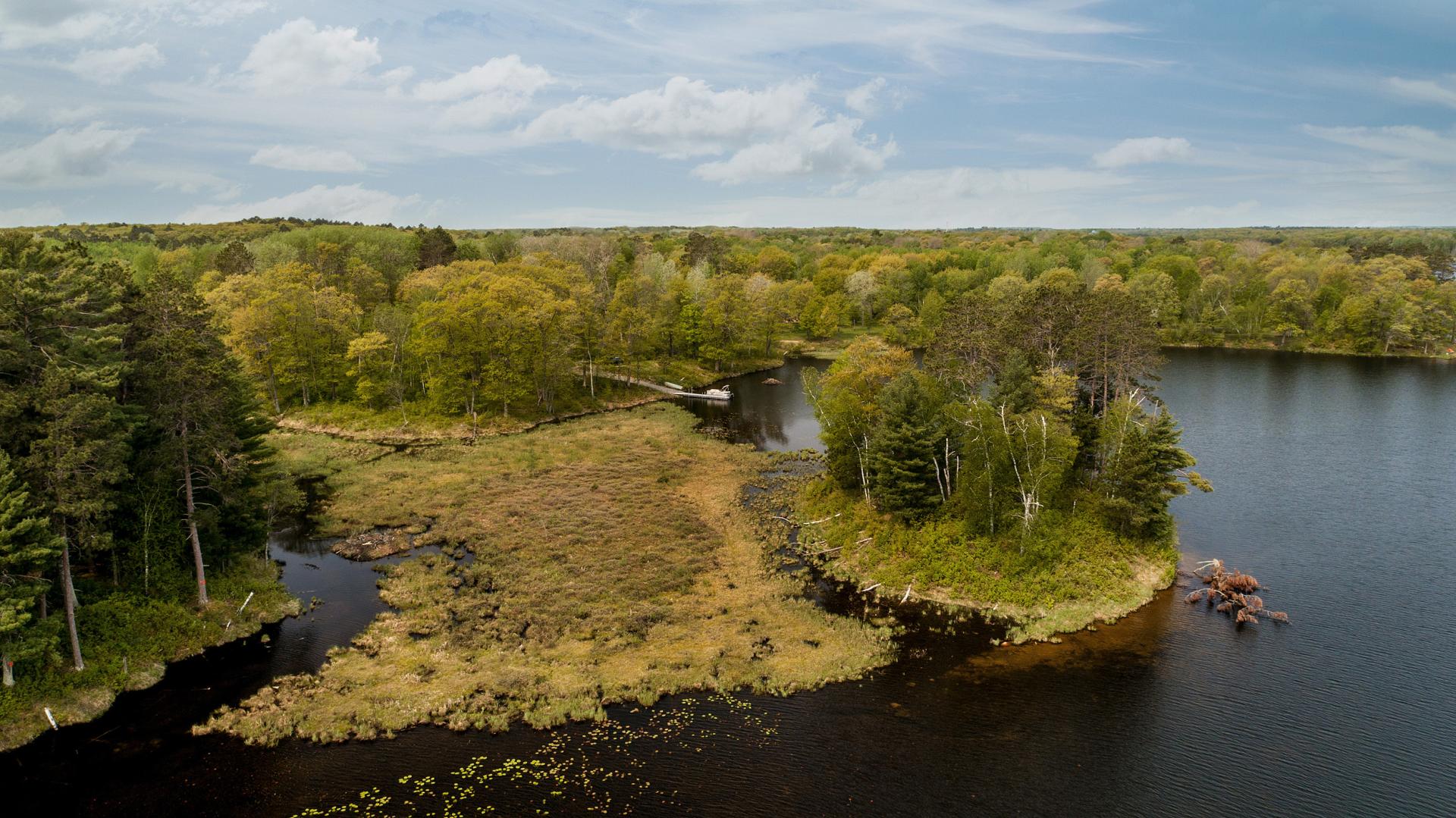 One of a kind property, 17.55 extremely private acres bordering 100's of acres of state, federal and township land. Includes mainland property, peninsula & 7+ acre island (approx 3,500 ft of