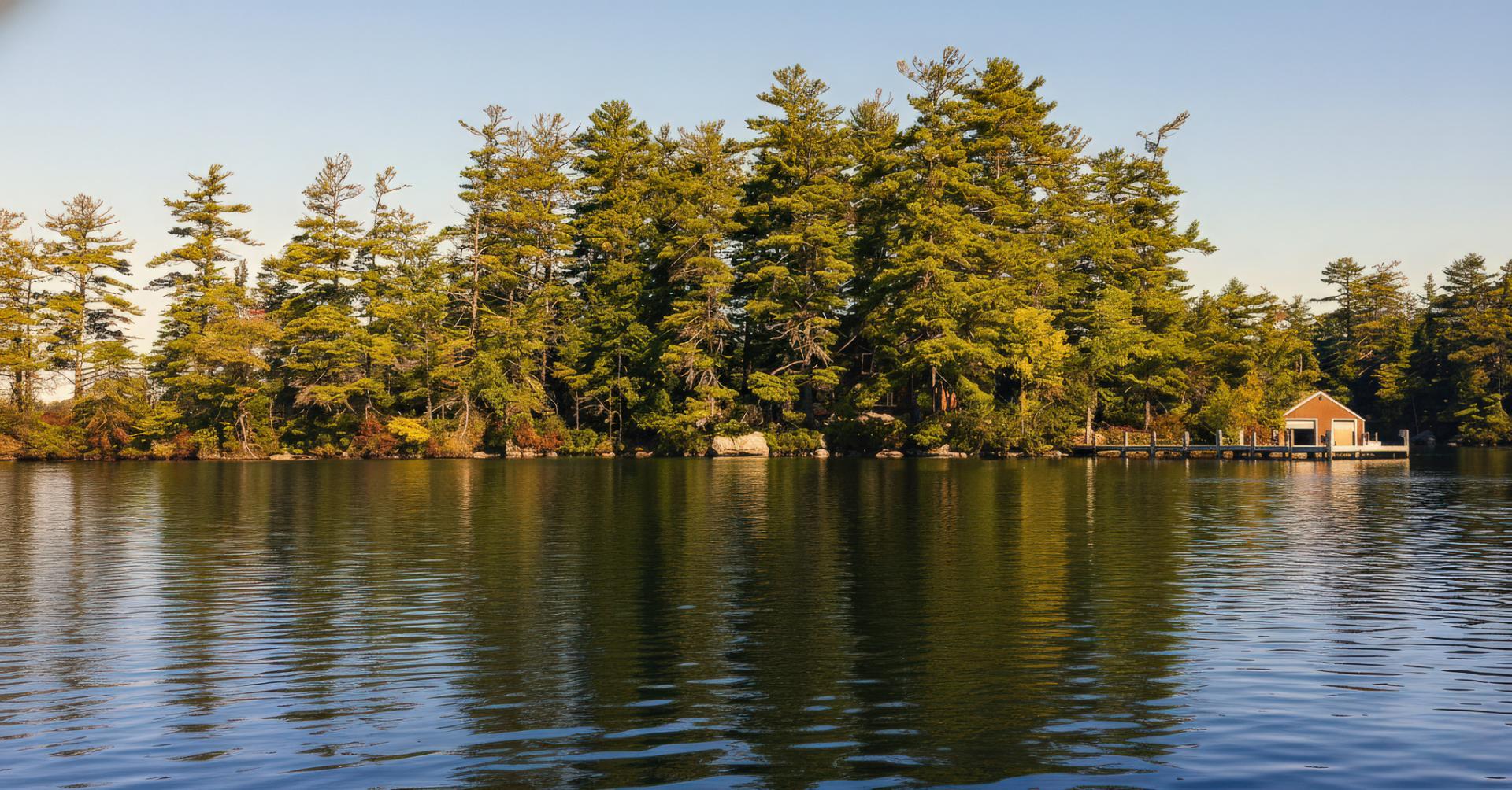 #1 Rock Island is situated in the heart of Lake Winnipesaukee, offering 1,200 feet of shoreline, natural sand beaches, and crystal-clear waters perfect for swimming, fishing, and boating. The island's terrain features tall, healthy trees, including oak, maple, and pine, and over an acre of blueberry bushes.
